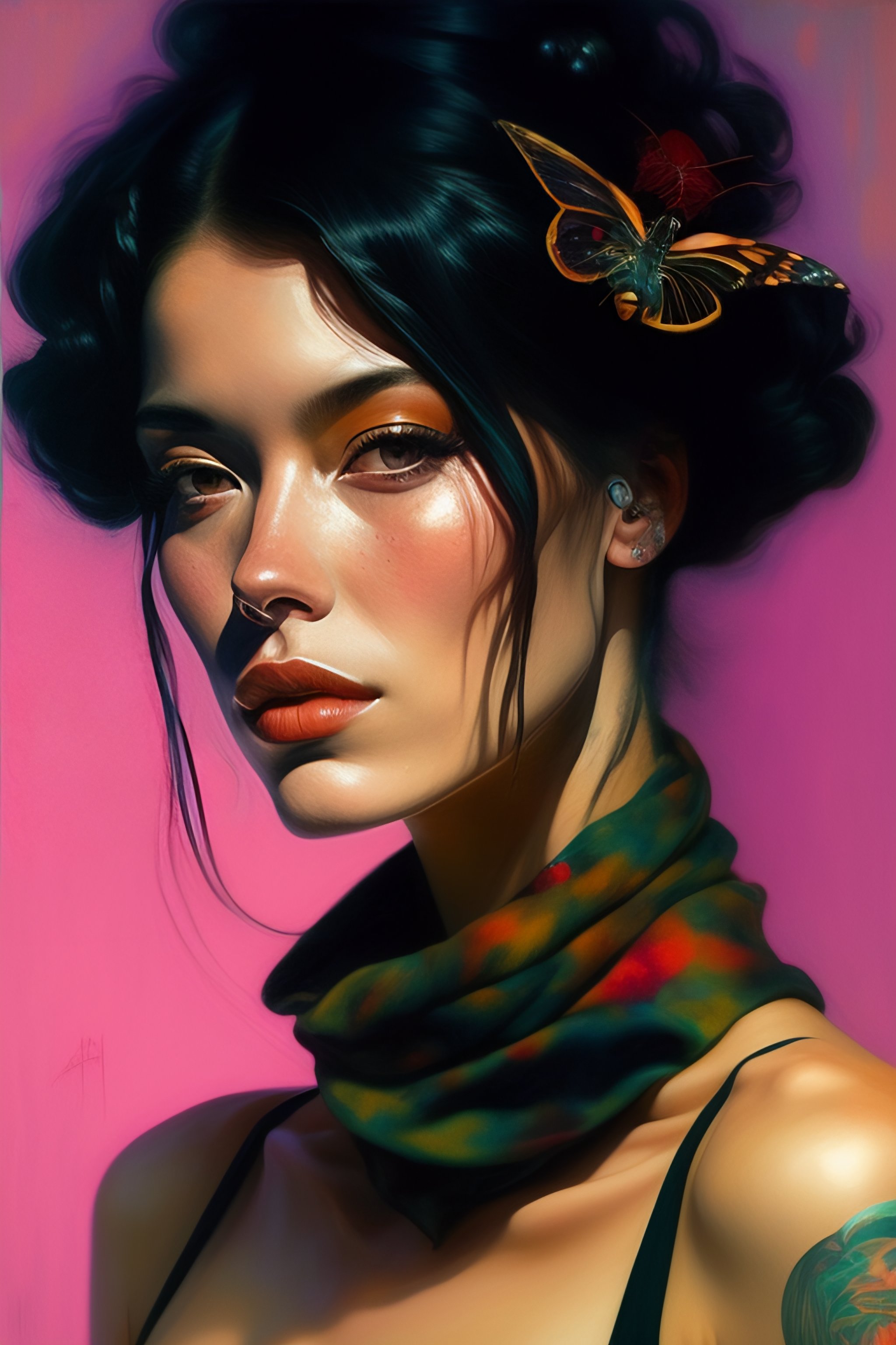 There is ugliness in beauty, but there is also beauty in ugliness. in the style of adrian ghenie, esao andrews, jenny saville, edward hopper, surrealism, dark art by james jean, cap tattoo punk scarf insects