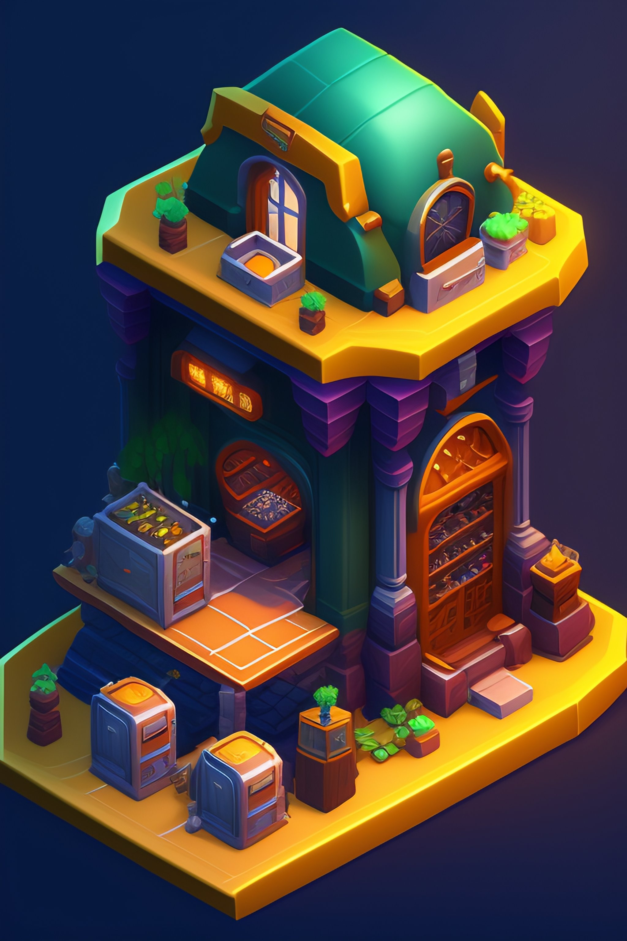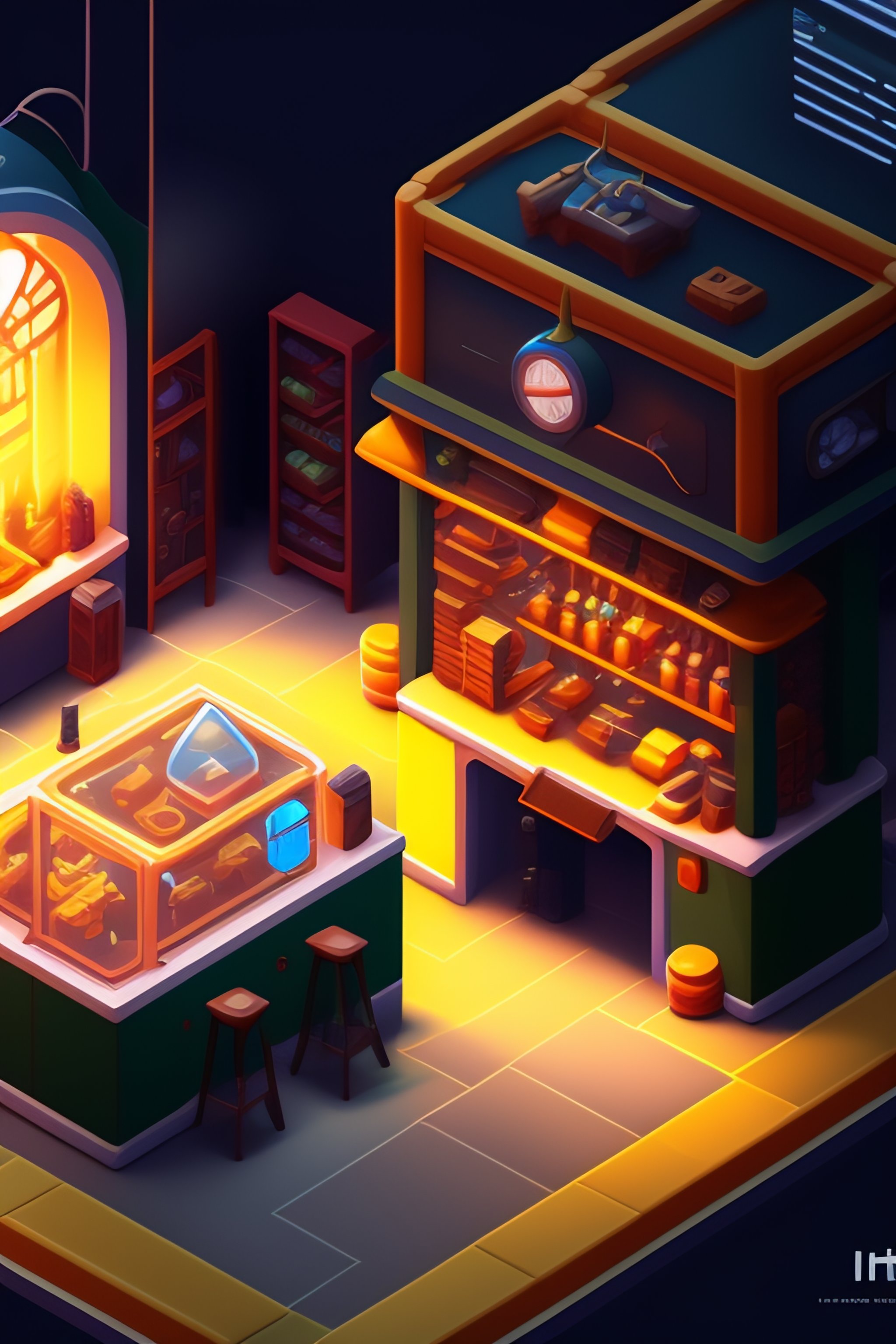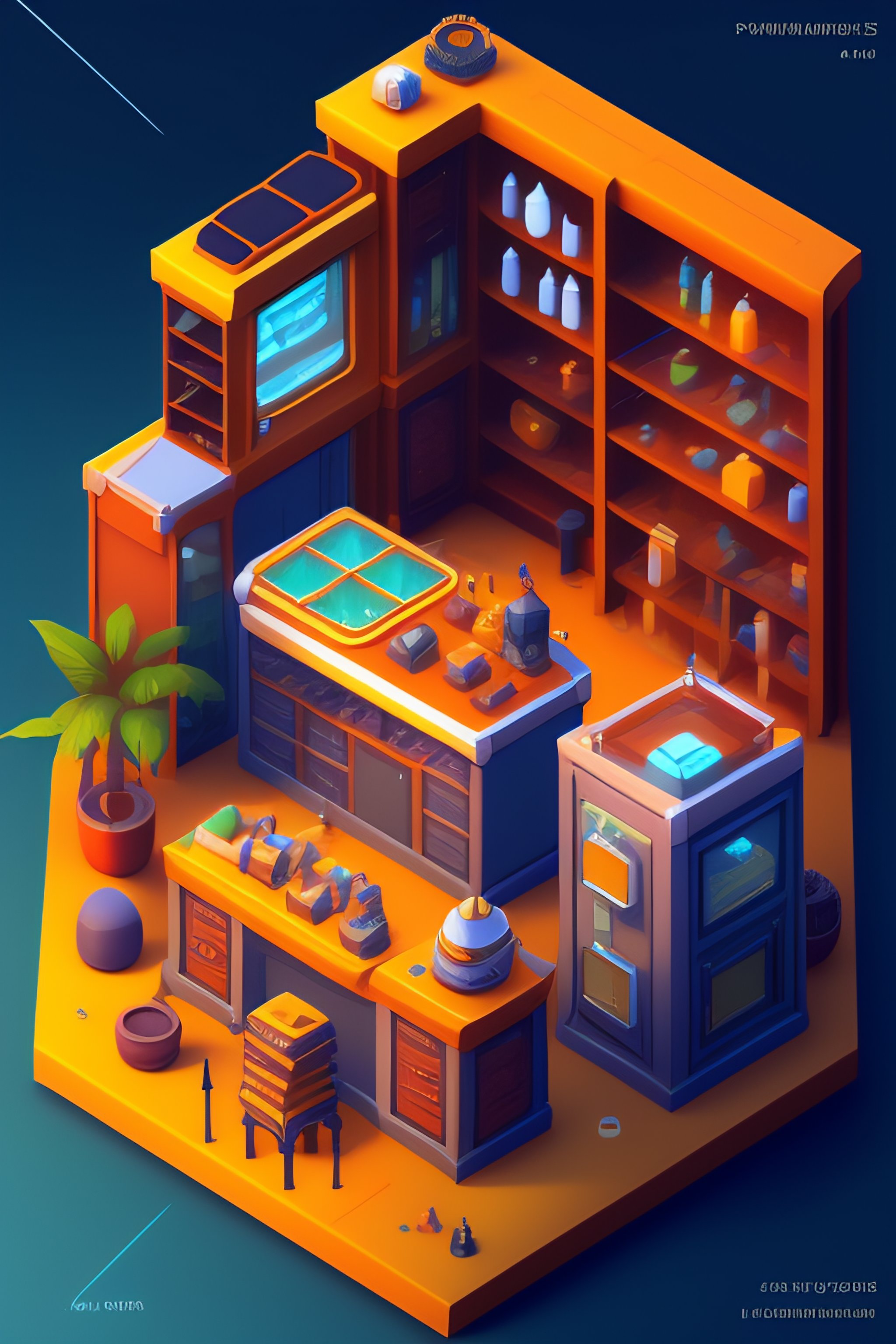 Isometric laboratory, concept art, by senior environment artist, featured on polycount, romanesque, 2d game art, isometric, artstation