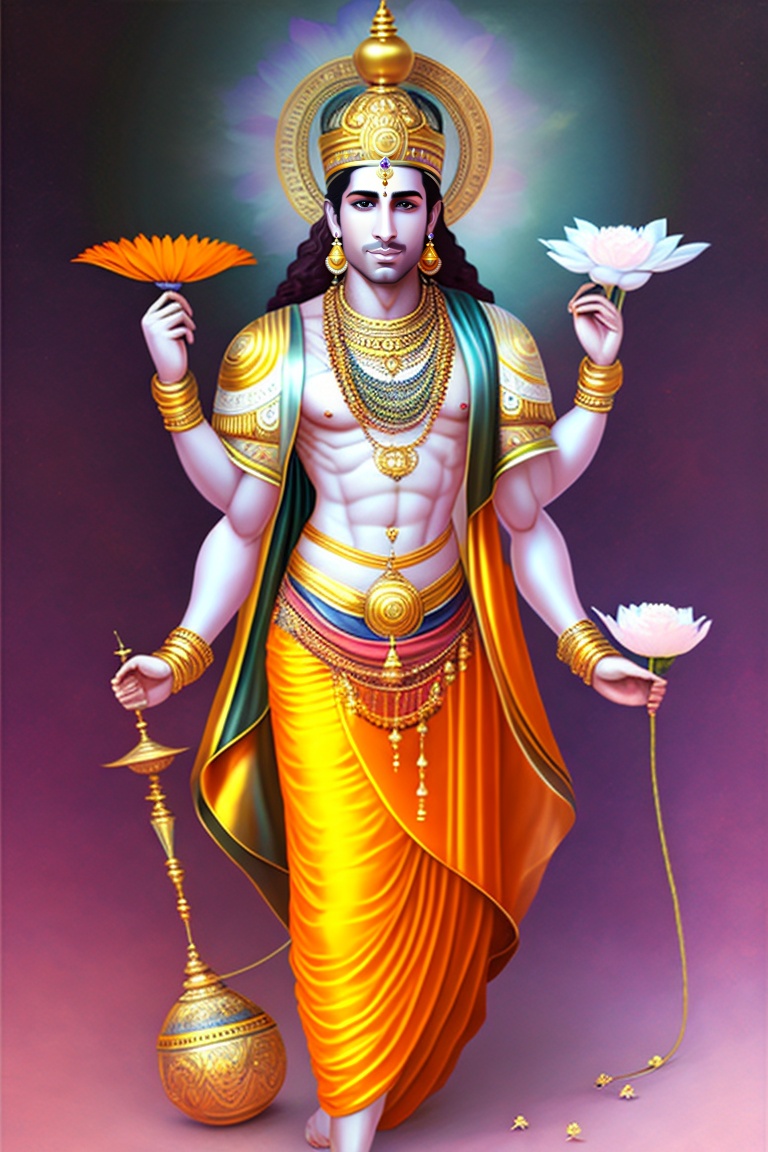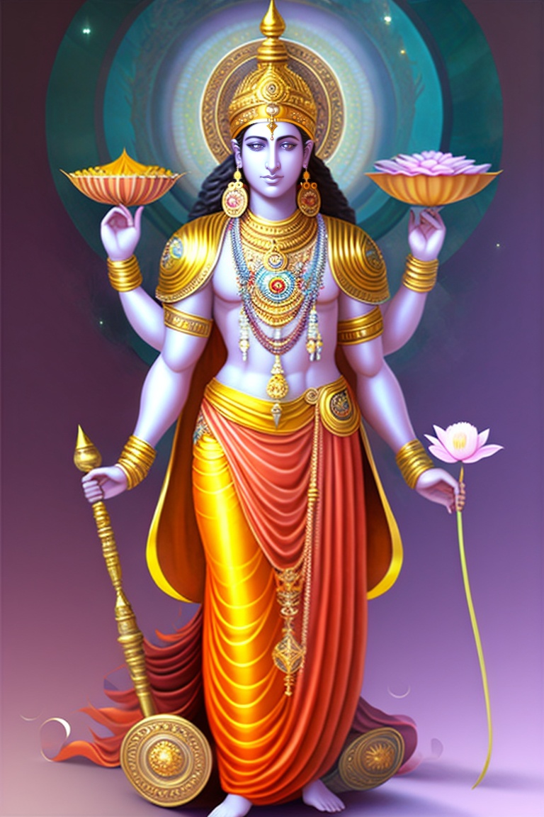 Photorealistic of a beautiful god vishnu, male, ethereal, majestic, full body, extreme detailed, hyperdetailed full body, luminism, complex, detailed lotus white flowers, chakra on finger, crescent moon on top of head, cobra wrapped around neck and octane rendered, intricately detailed, decorative clothing, cinematic hyper realistic cover photo awesome full colour, hand drawn. 12k, intricate. cinematic, mix of bold dark lines and loose lines, bold lines, on paper, full body with velvet dress, full body.