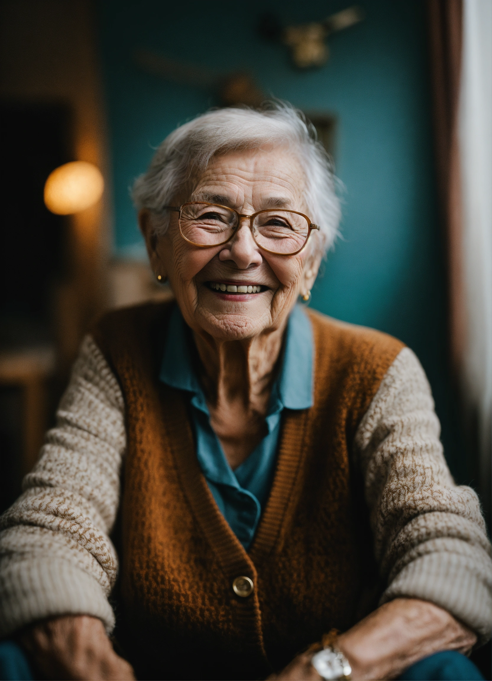 Elderly person small strait looks smile