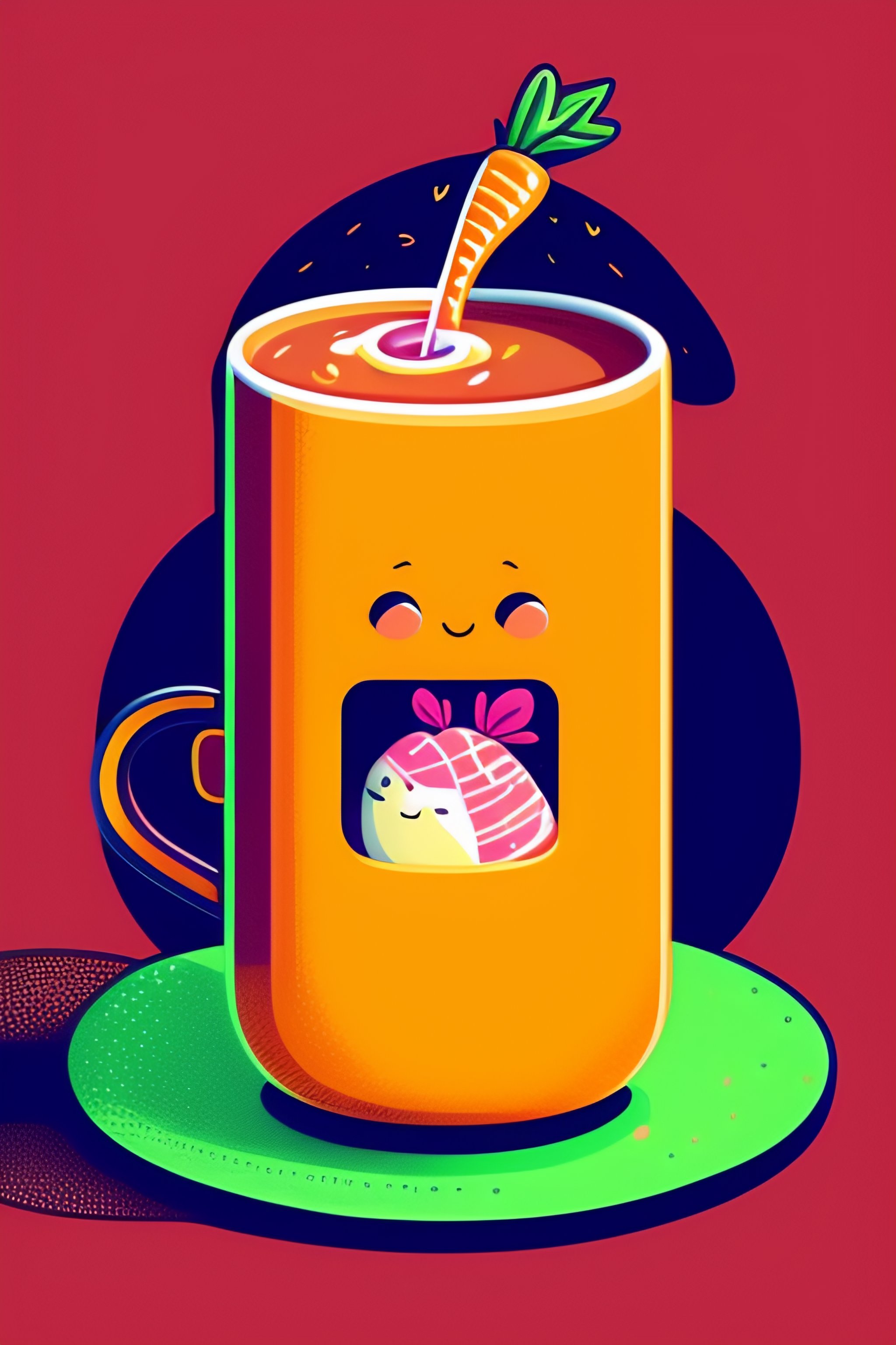 High quality illustration, closeup of a kawaii carrot++ character drinking coffee from a mug matt furie
