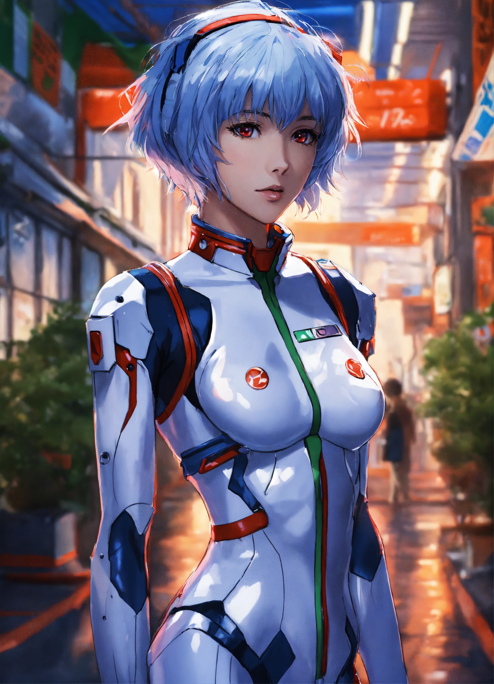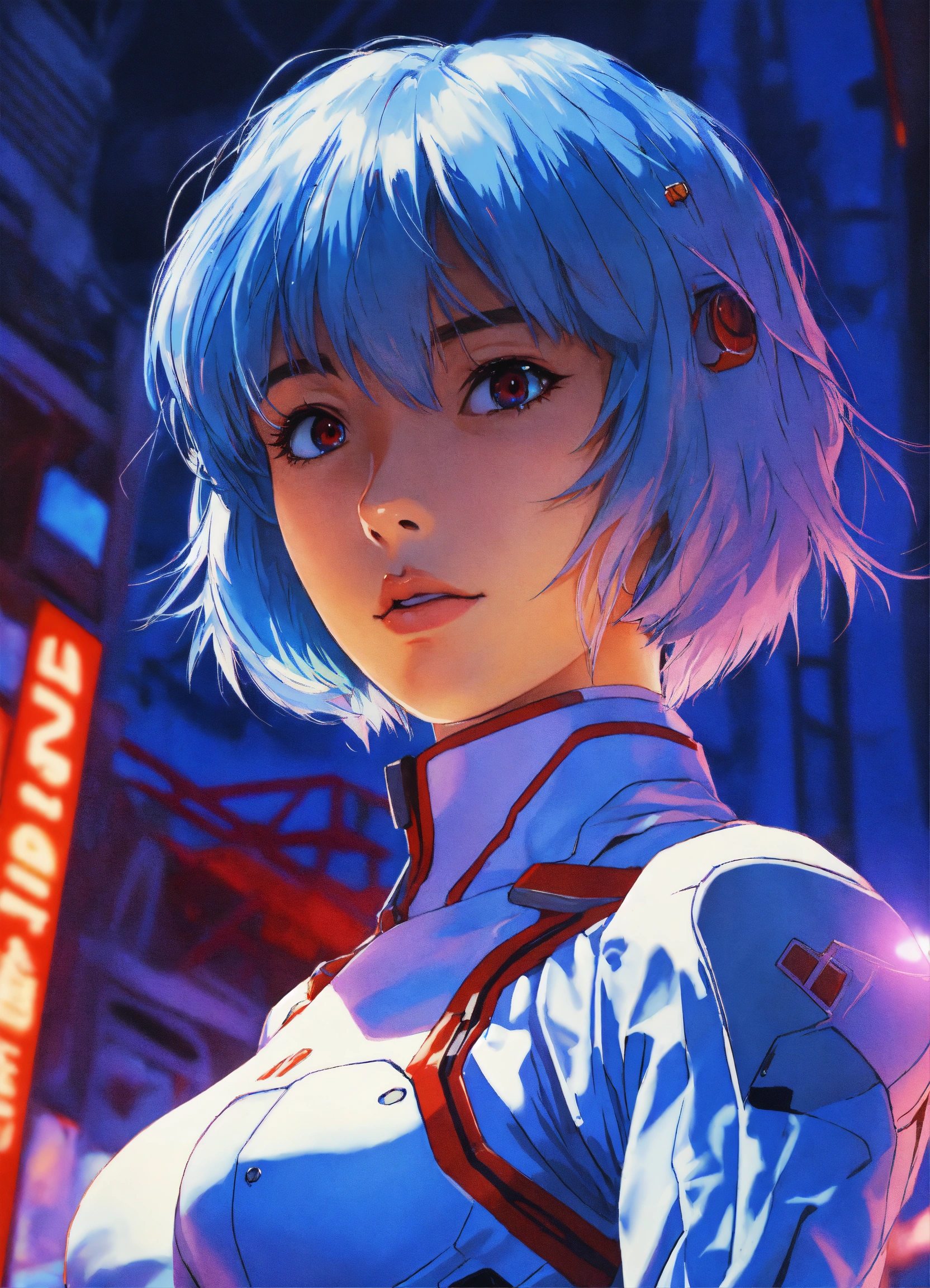 Stunning anime wallpaper illustration of rei ayanami from neon genesis evangelion, detailed scene, stunning details, trending on artstation, ray-traced environment, vintage 90's anime, ray-tracing
