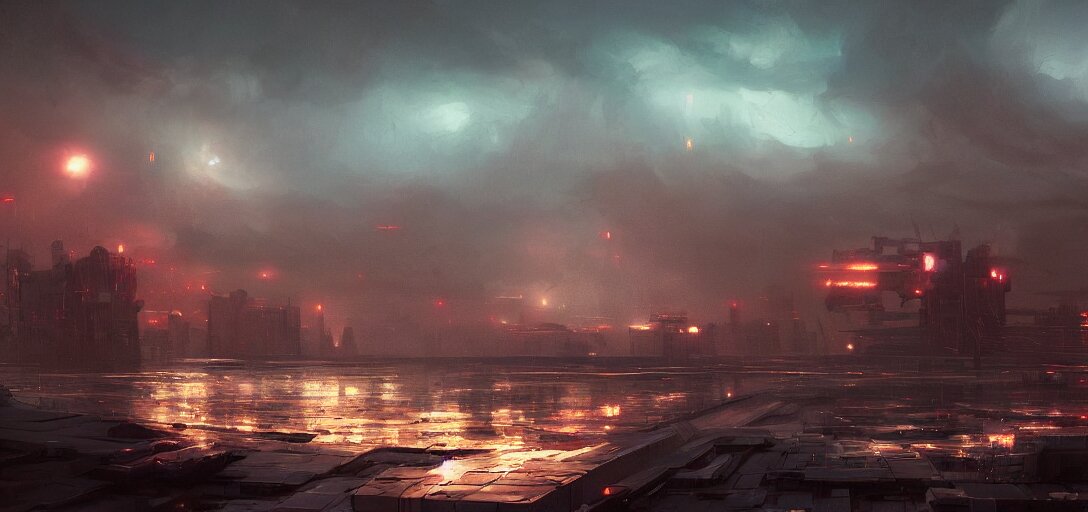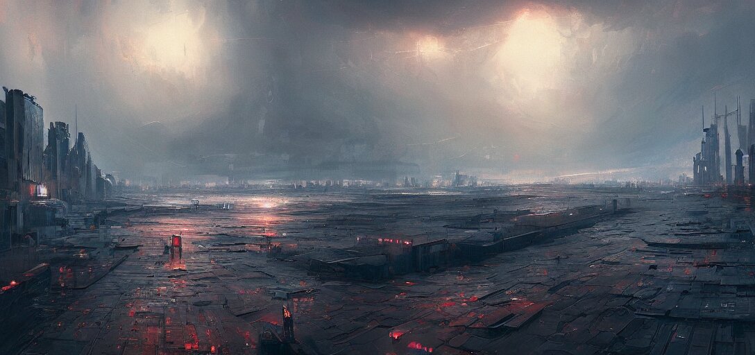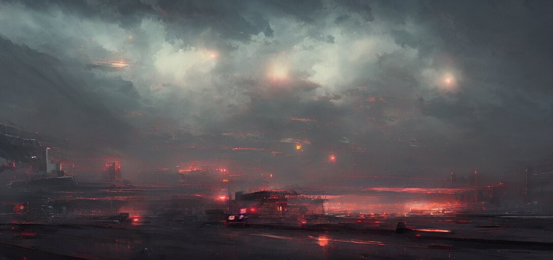 The sky above the port was the color of television tuned to a dead channel, neuromancer, painted by greg rutkowski, painted by igor kieryluk, high detail, dramatic light, digital art, trending on artstation