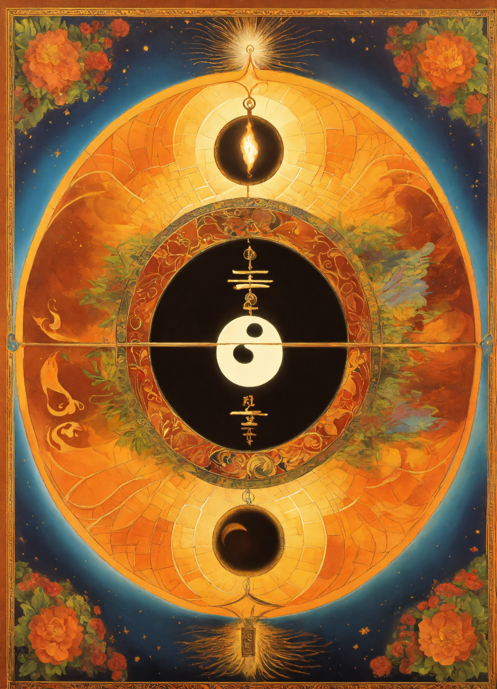 Spiritual death and rebirth with the divine union of feminine and masculine energies, ying and yang, freedom