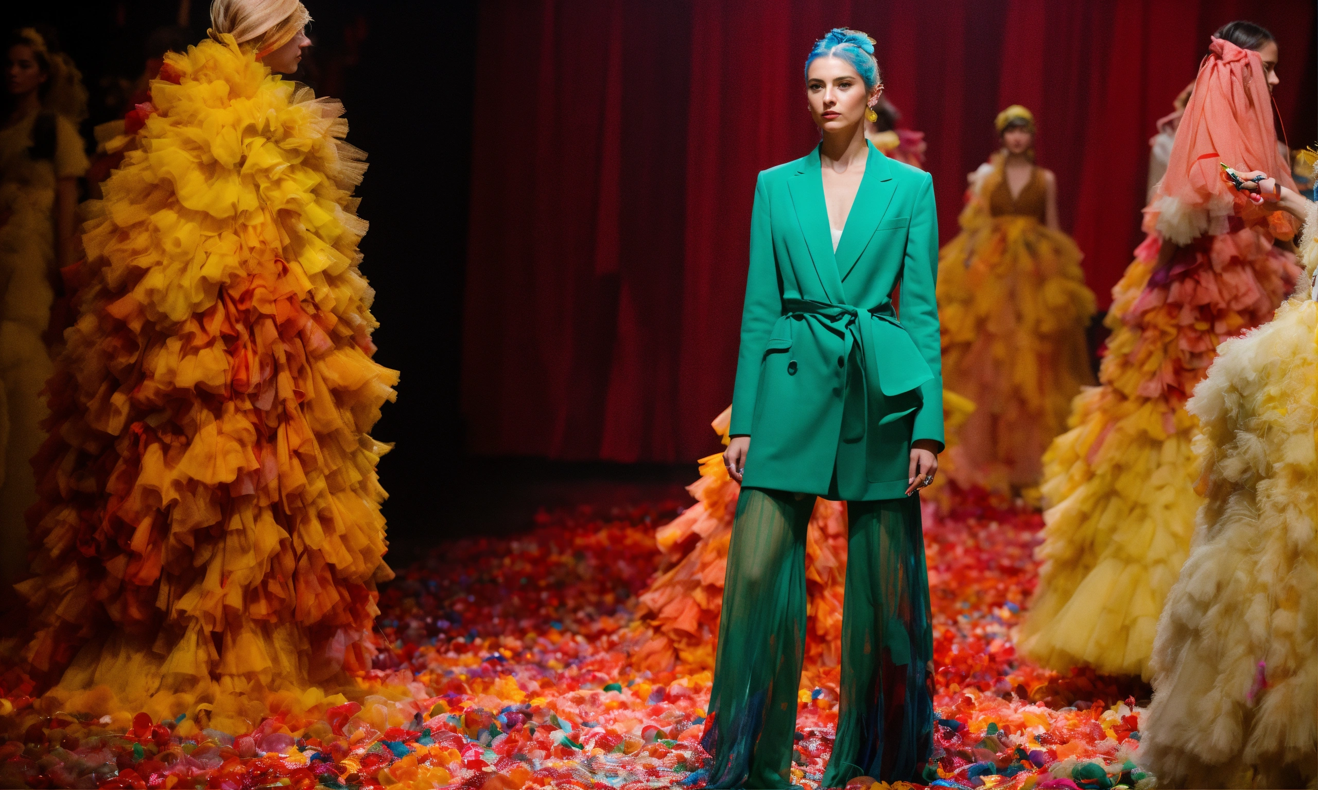 The colors you will see in the show could not have been achieved by conventional means. they were created through close collaboration with chemical laboratory staff. karina koynash decided not to limit herself to what already exists and instead create something unique, embodying her inspiration and fashion vision.