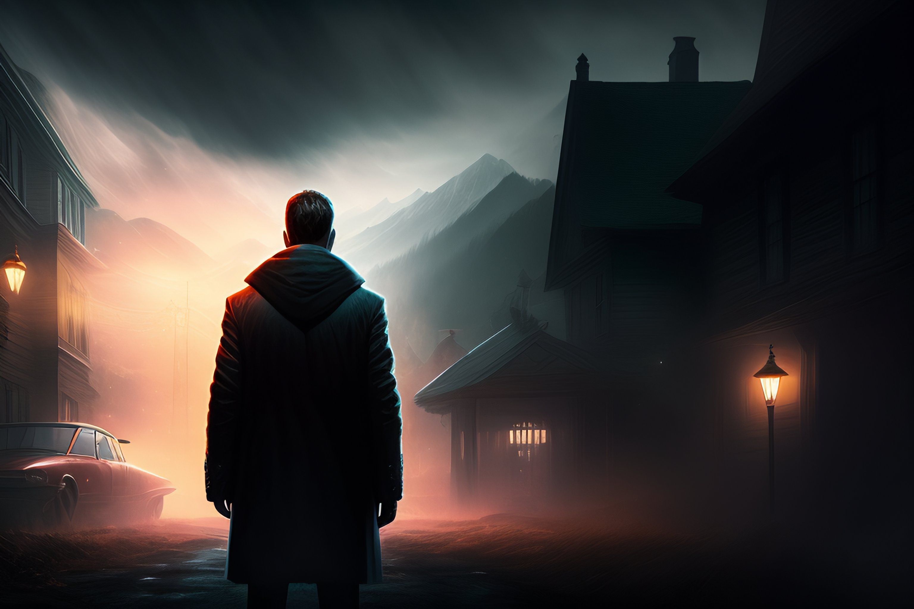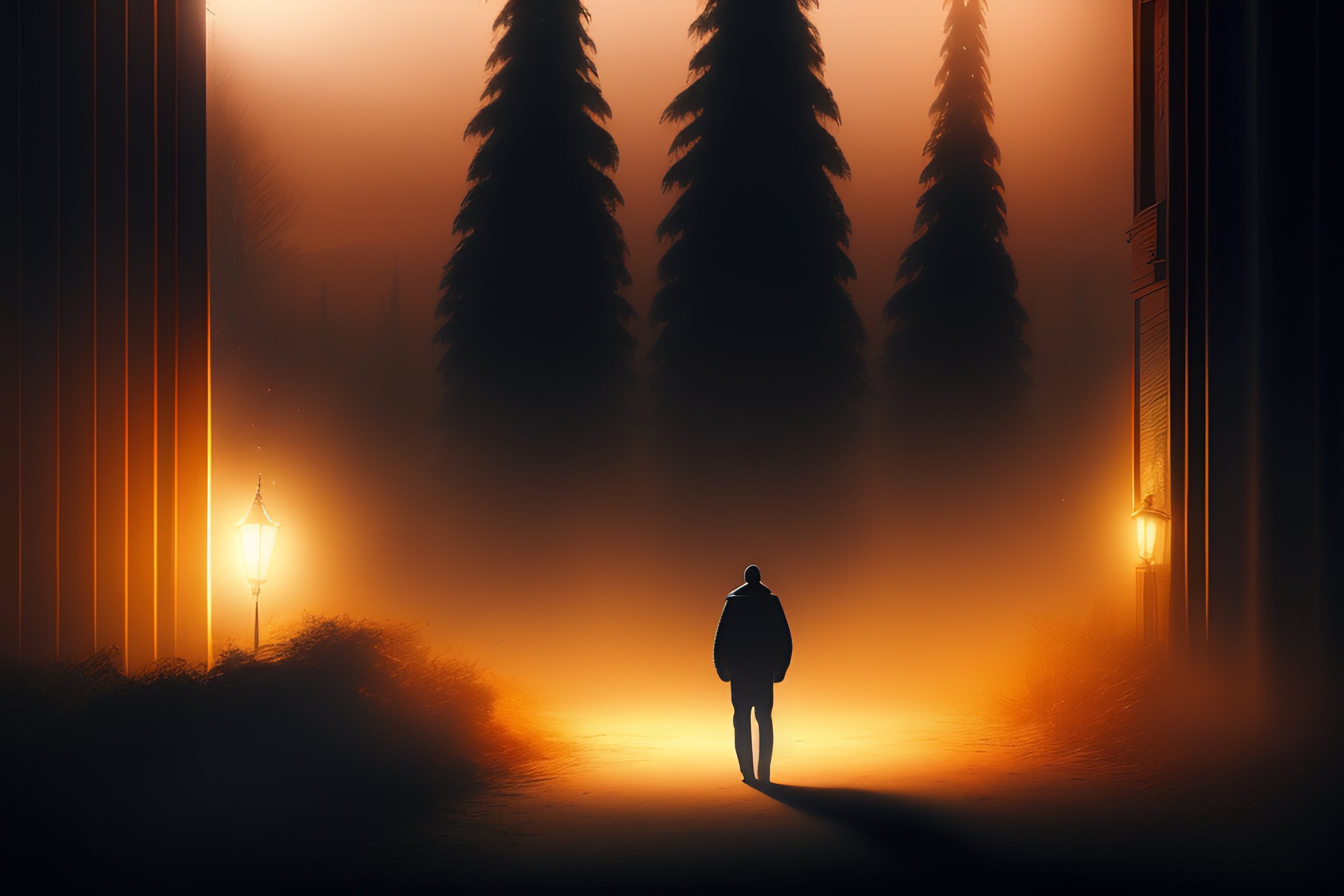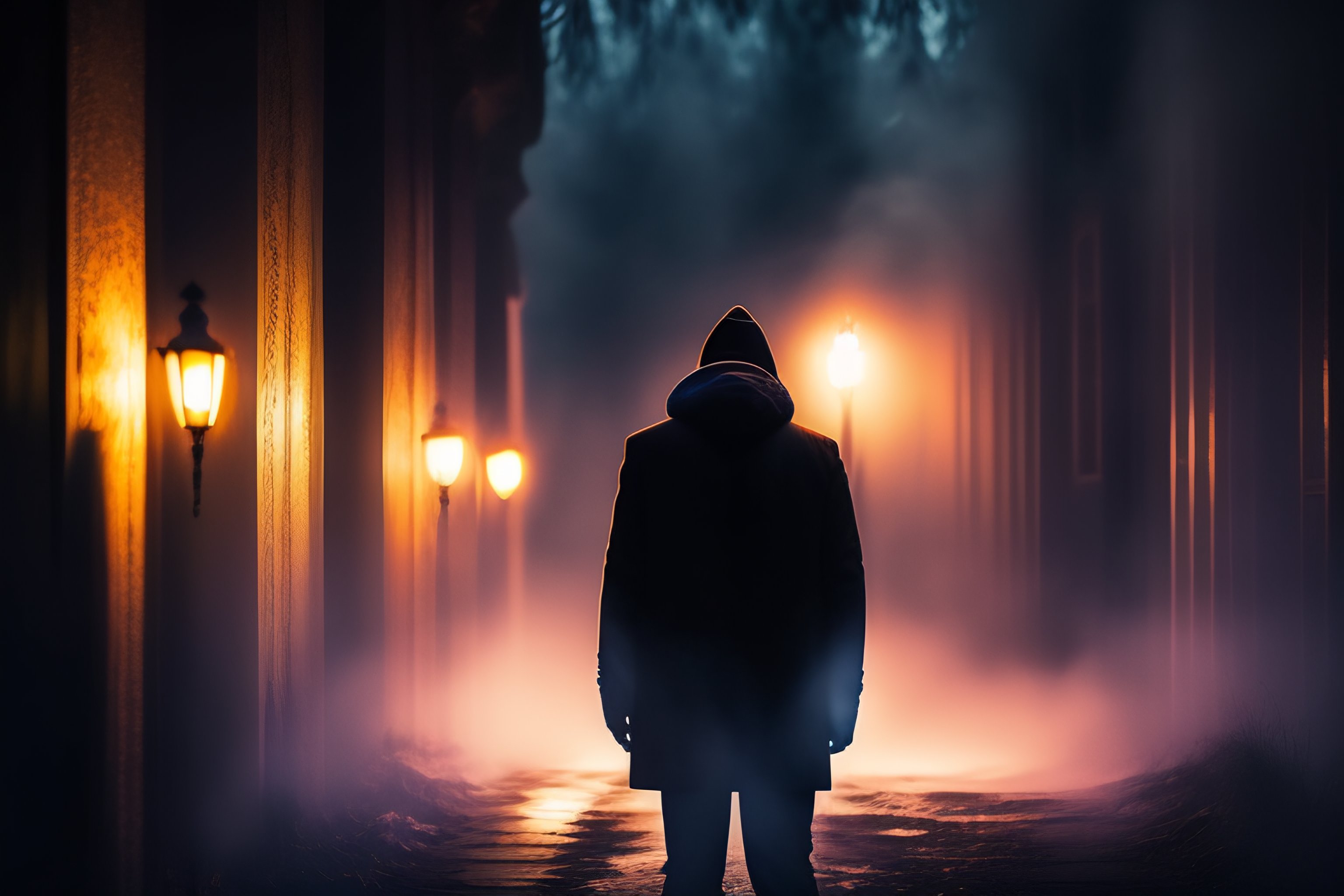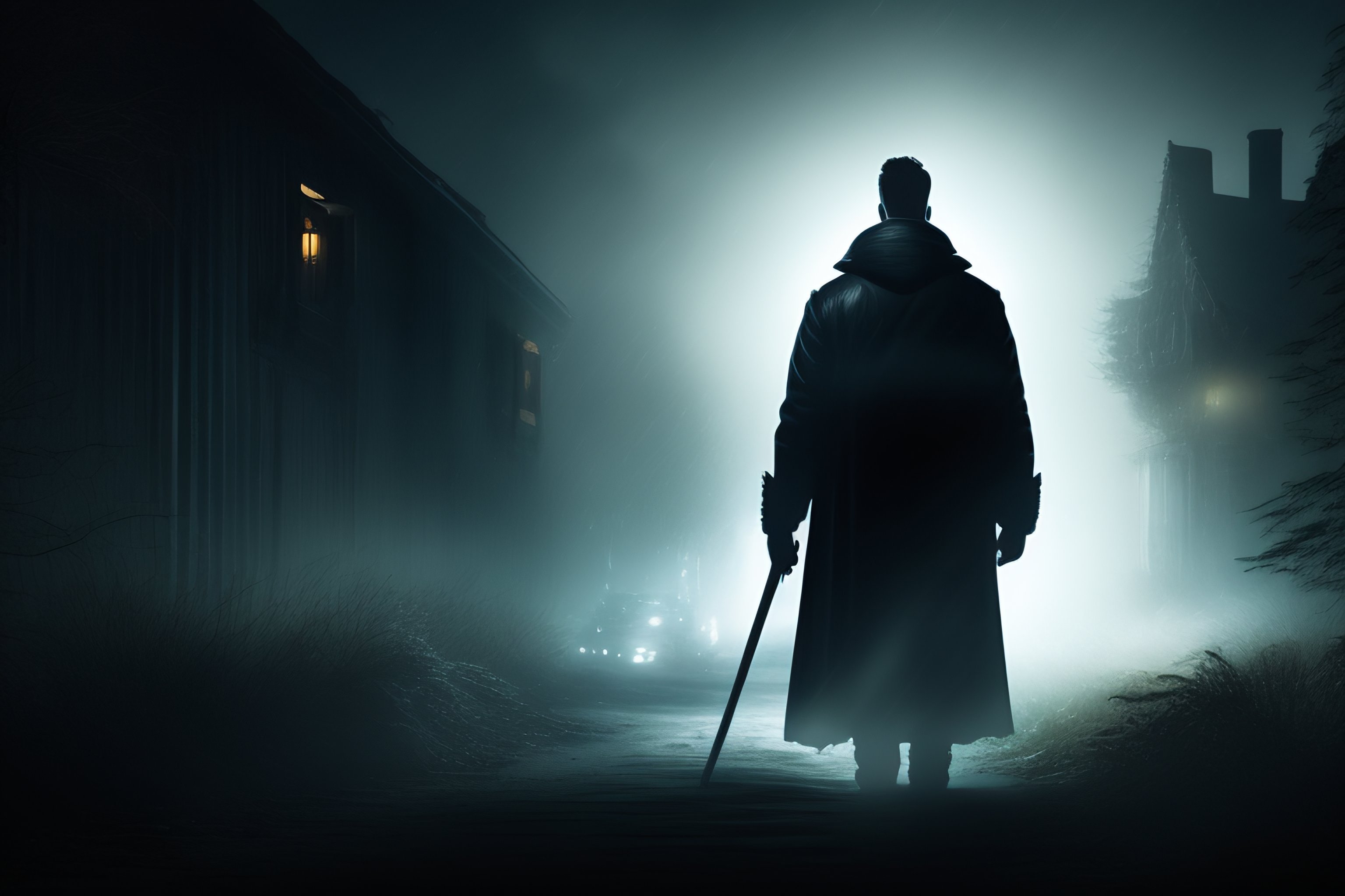 Man alone in the dark with ghosts