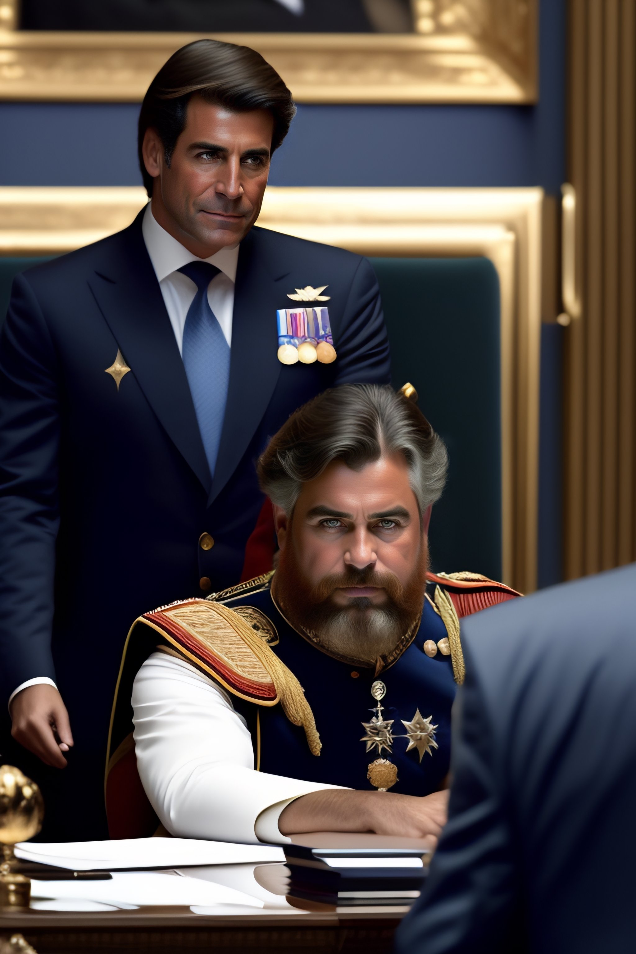 Hombre rey de la comunicación sentado en un trono con un cetro de ojo