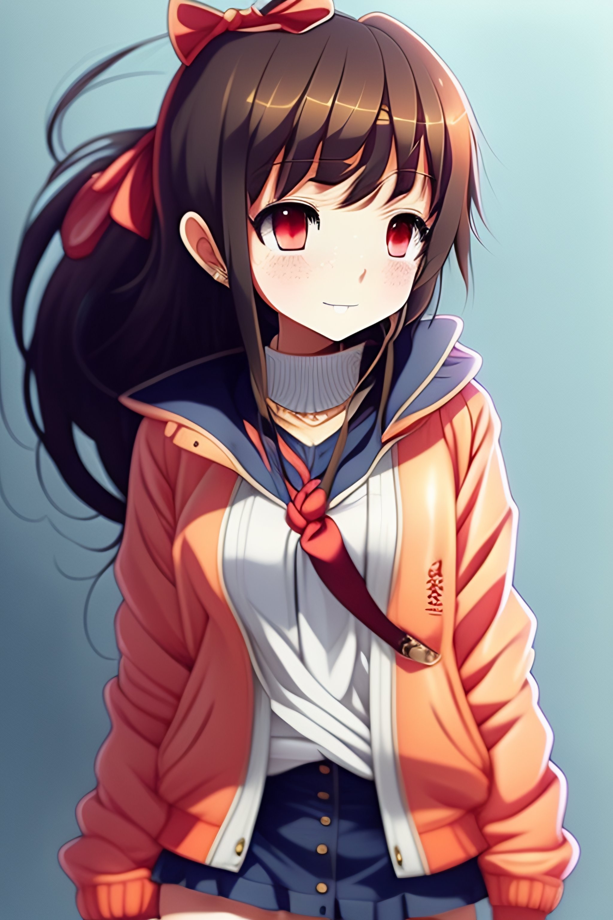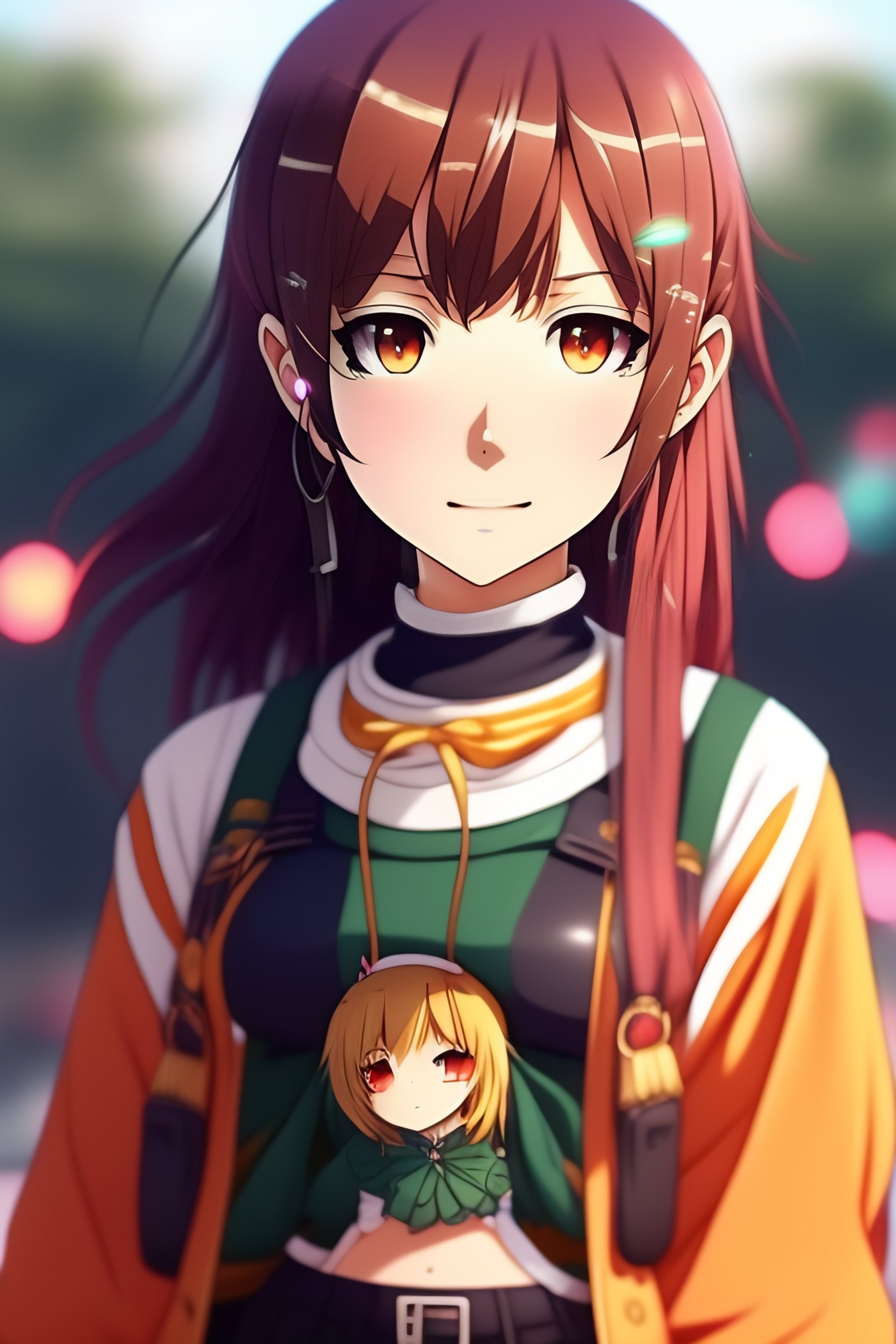 Anime drawing of a small anime girl in many clothes