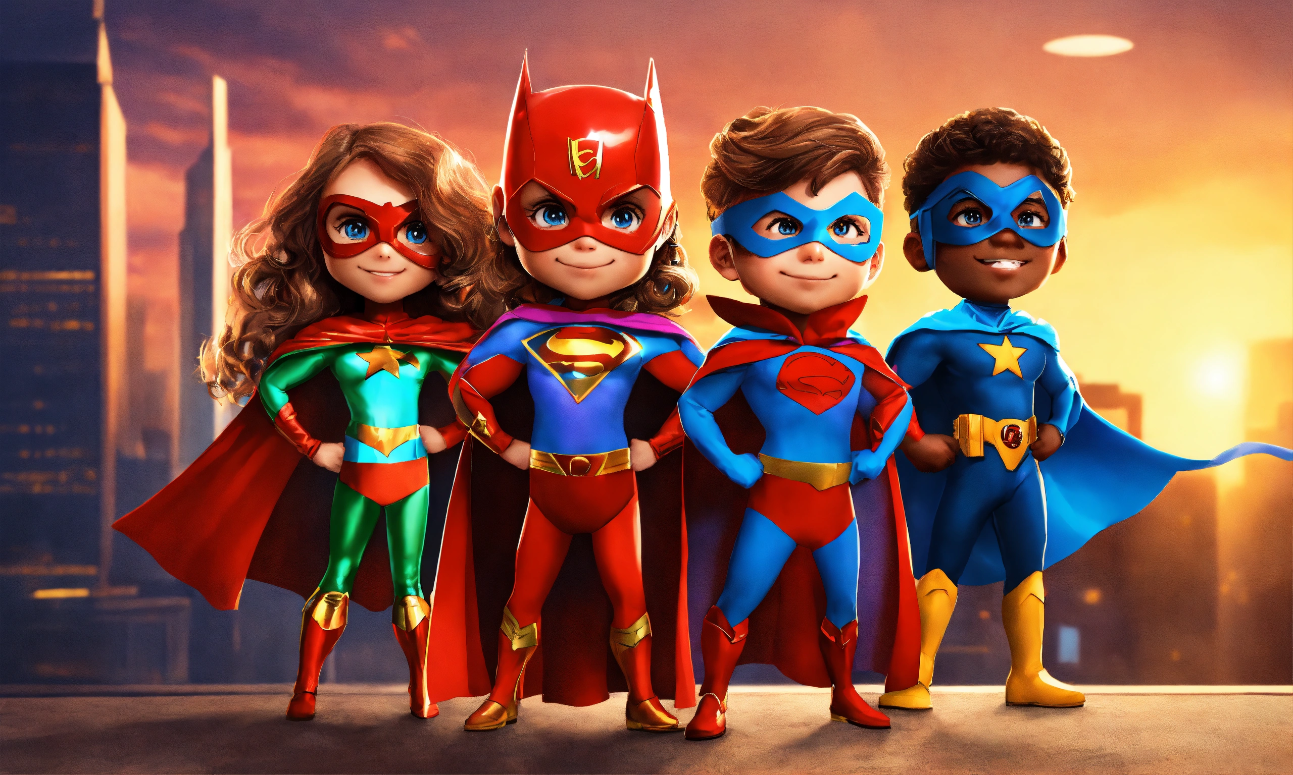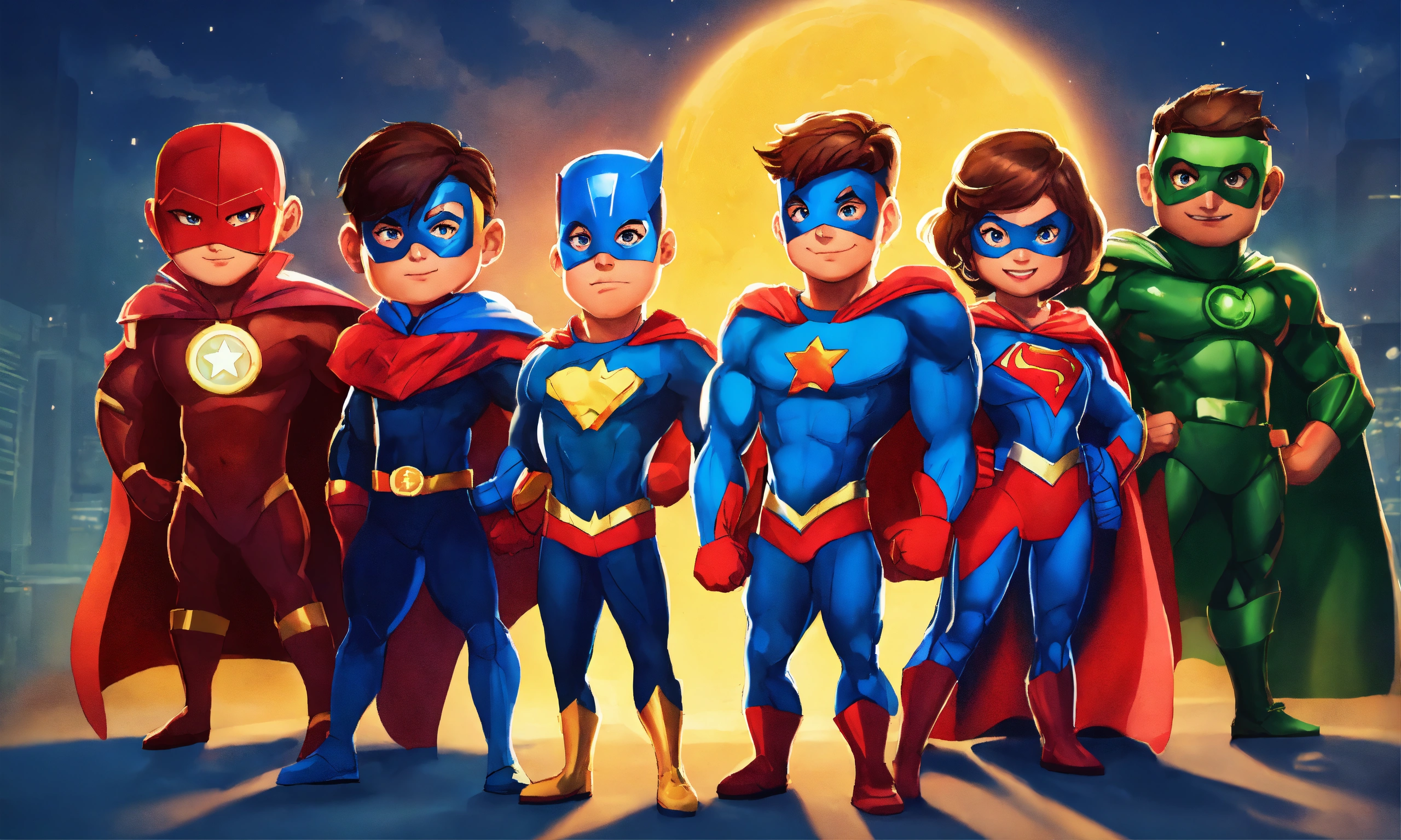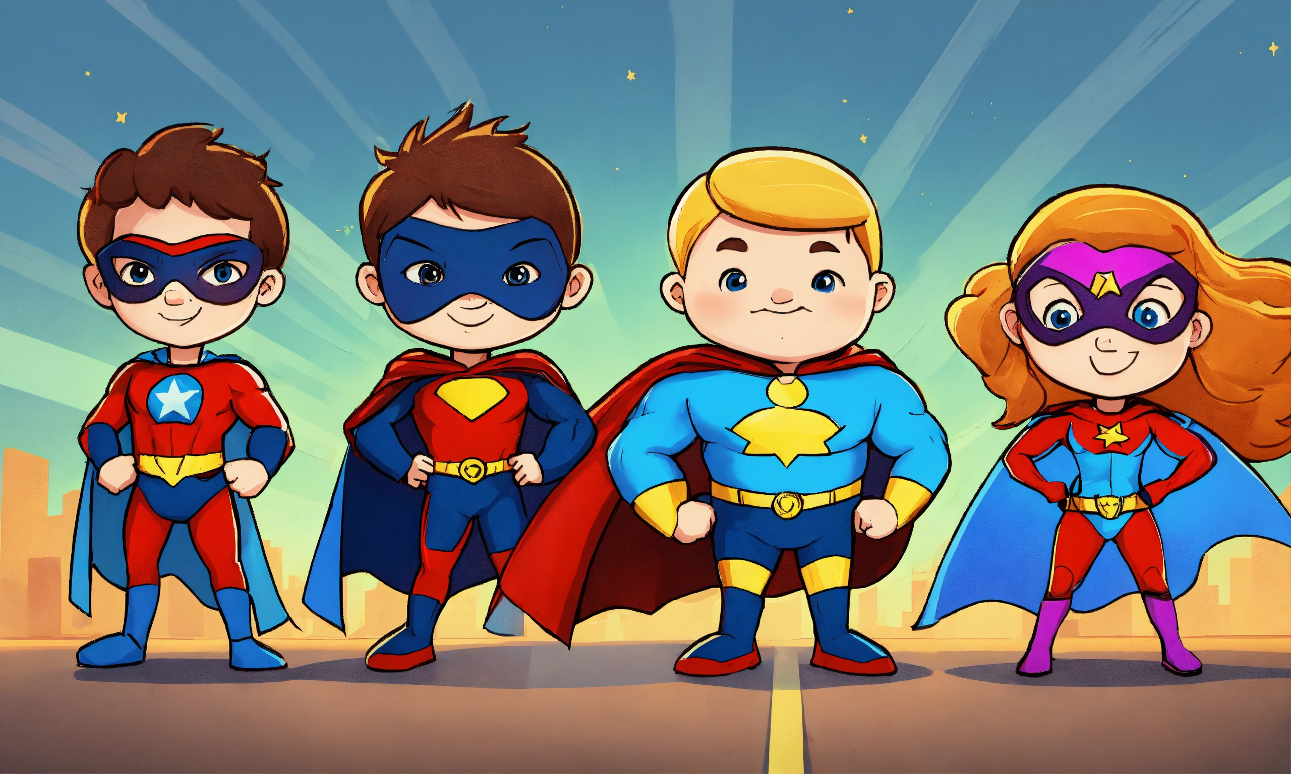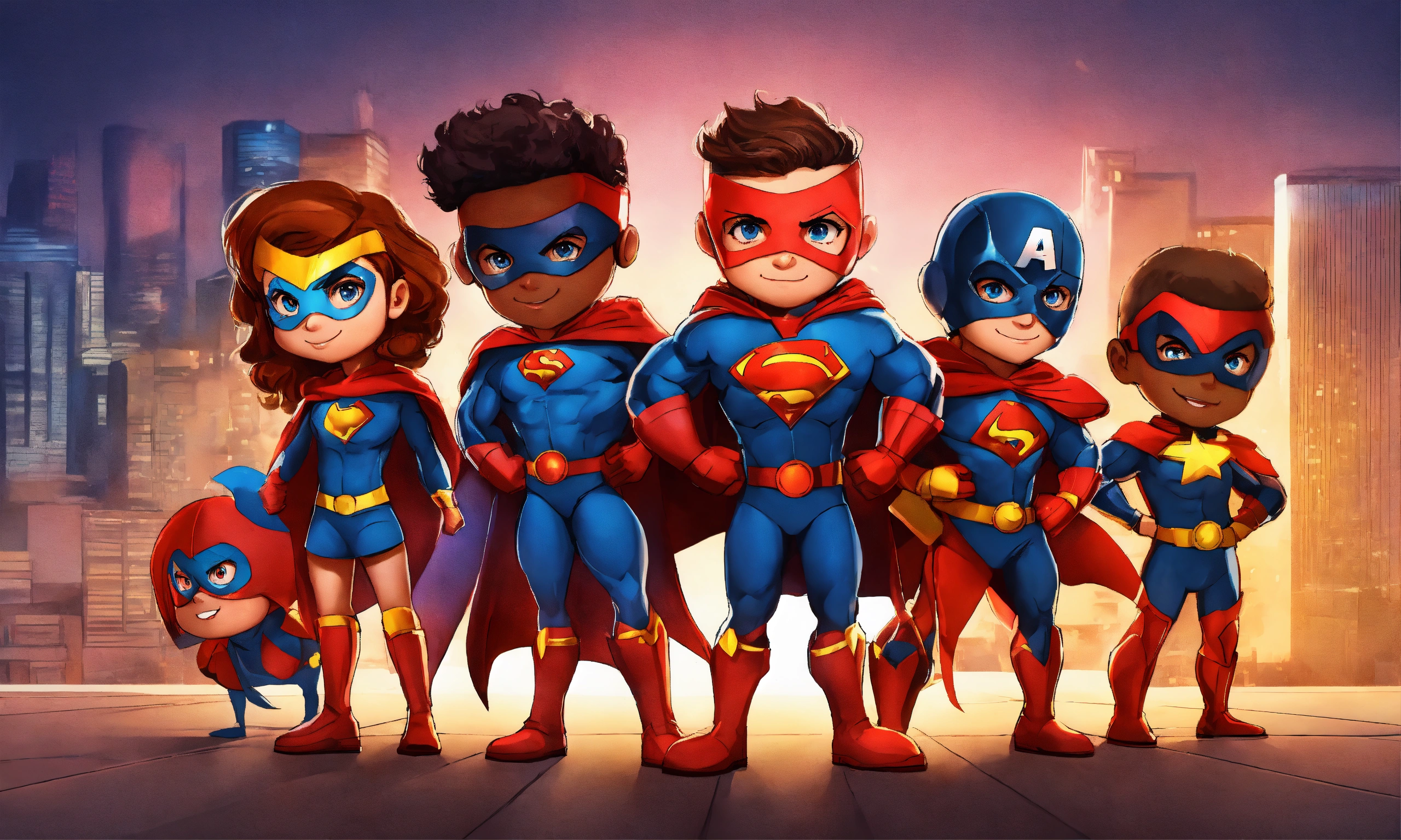 Cartoon team of kids superhero