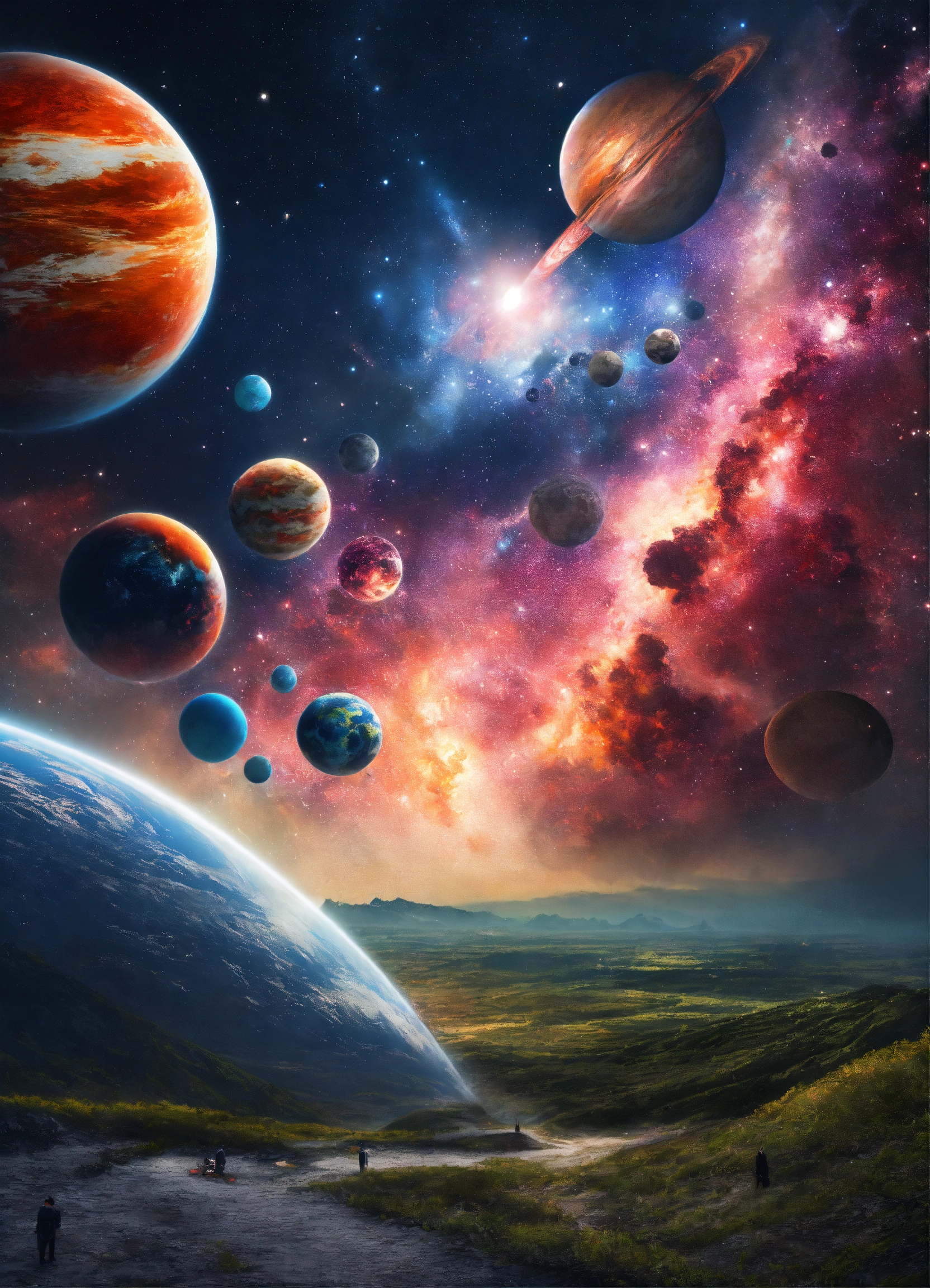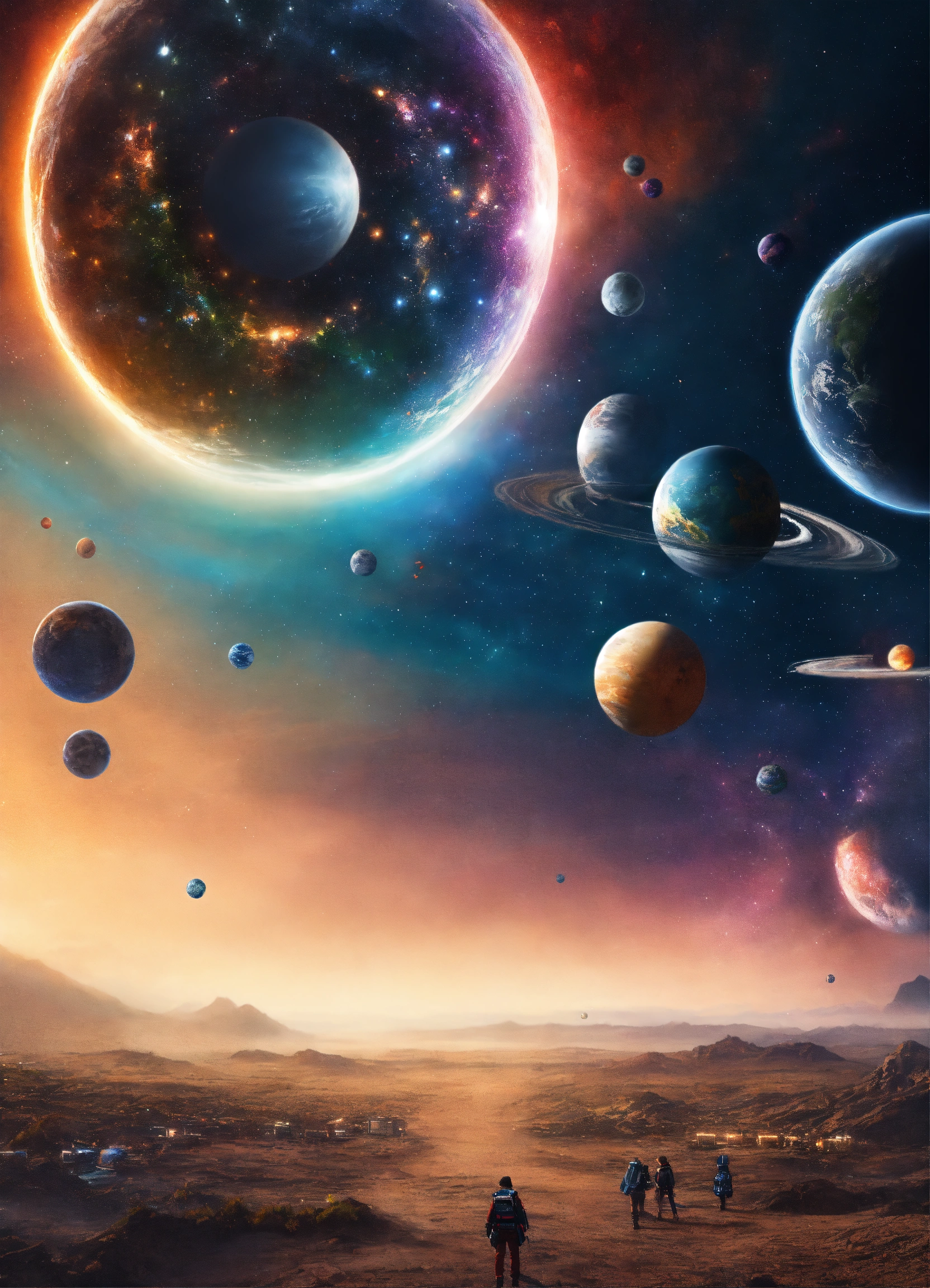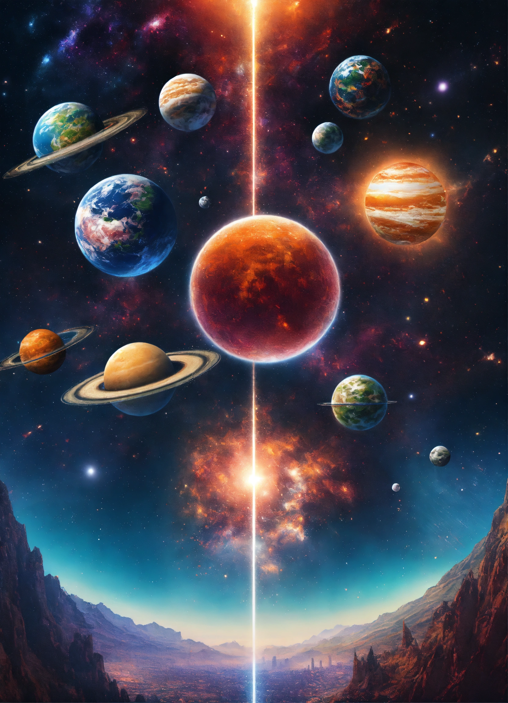Multiple different universes lined up next to each other