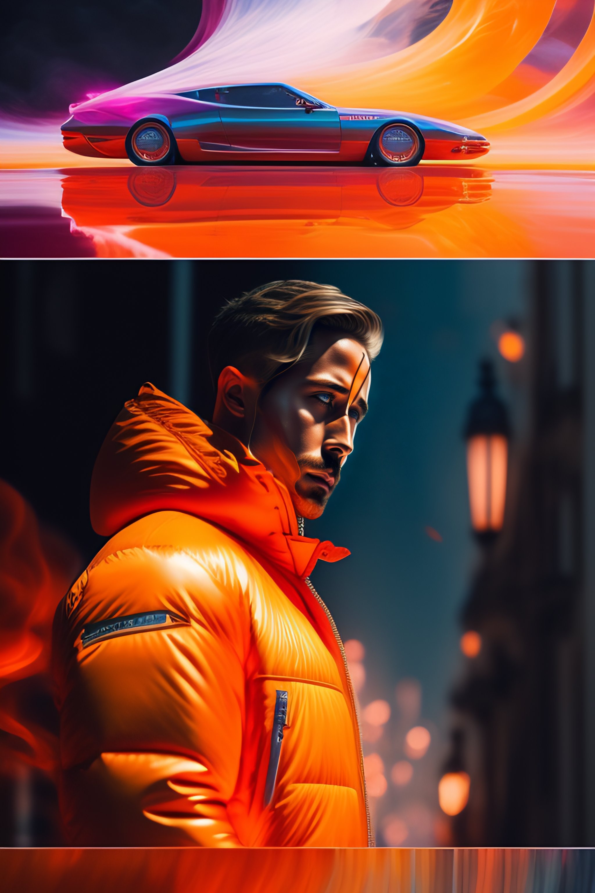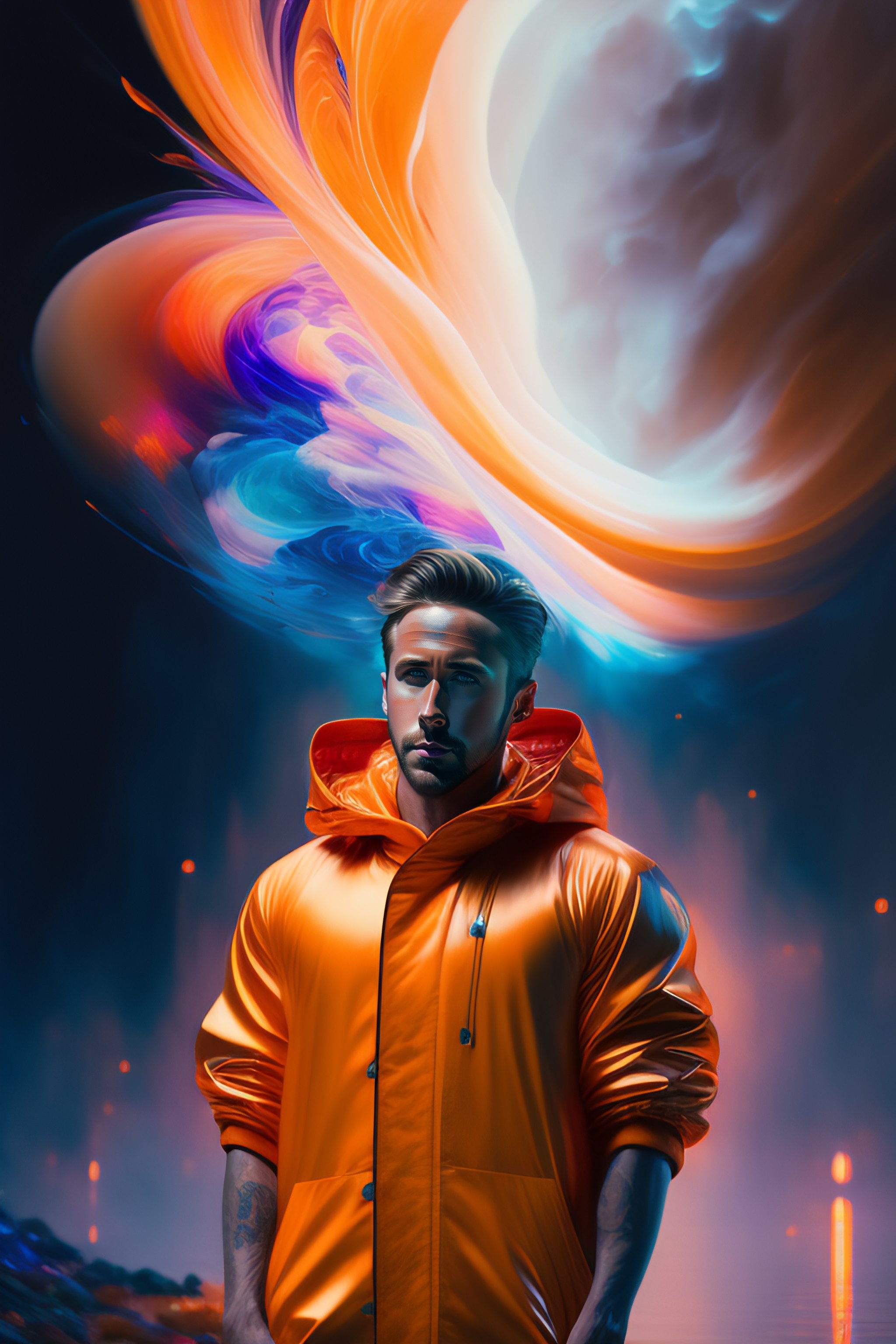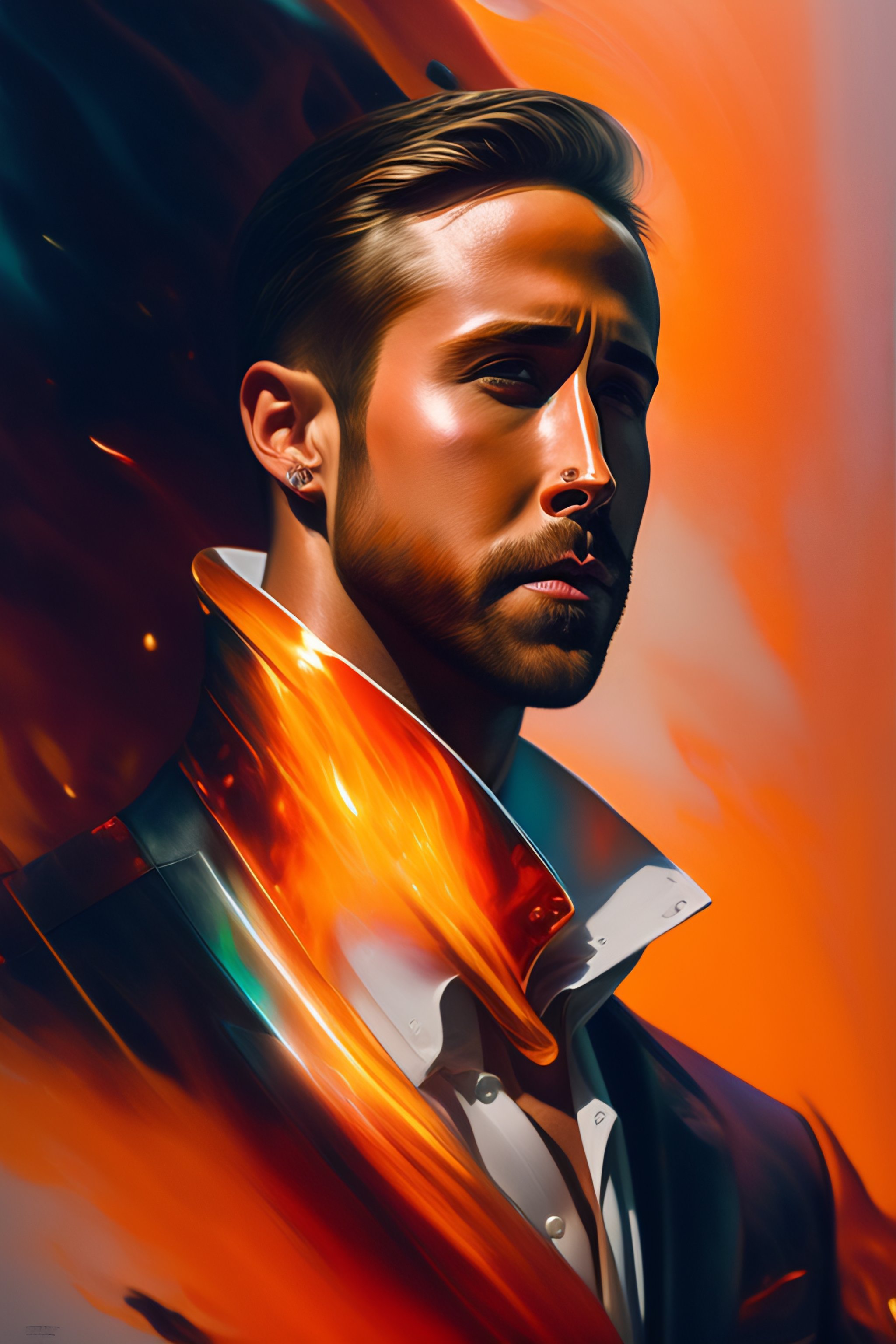 Ryan gosling, orange spike aura in motion, damaged japanese clothes, floating pieces, painted by art by tsuyoshi nagano, greg rutkowski, artgerm, alphonse mucha, spike painting