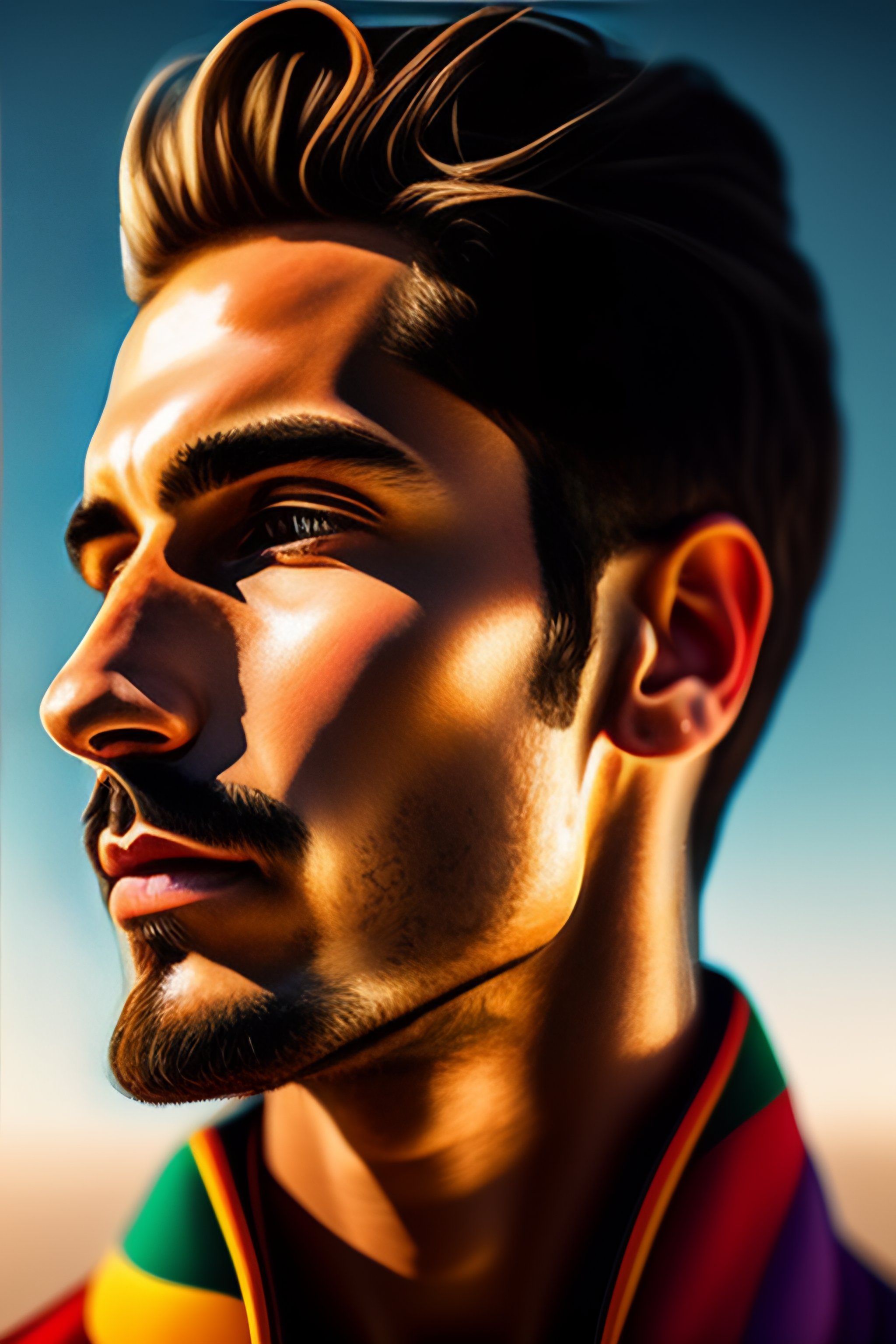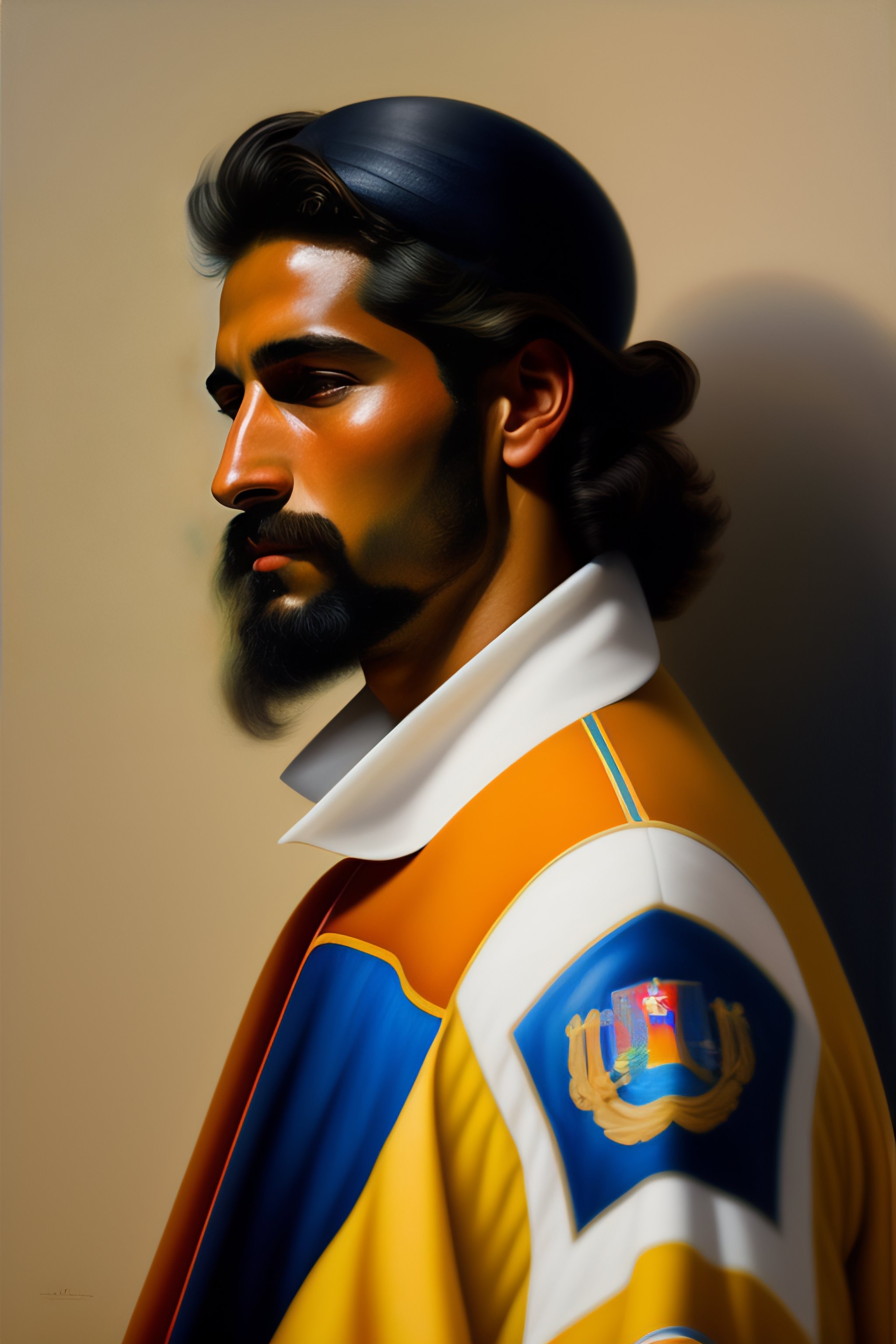 Detailed portrait of a spanish painted in the colors of his country