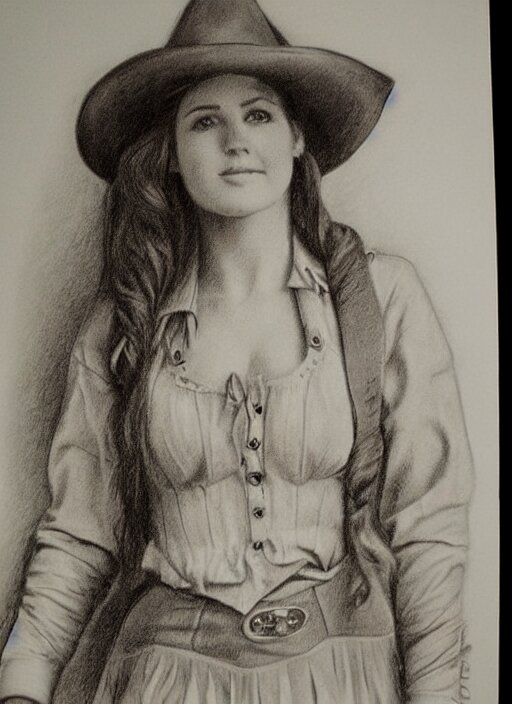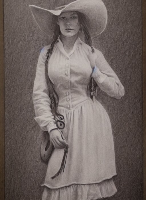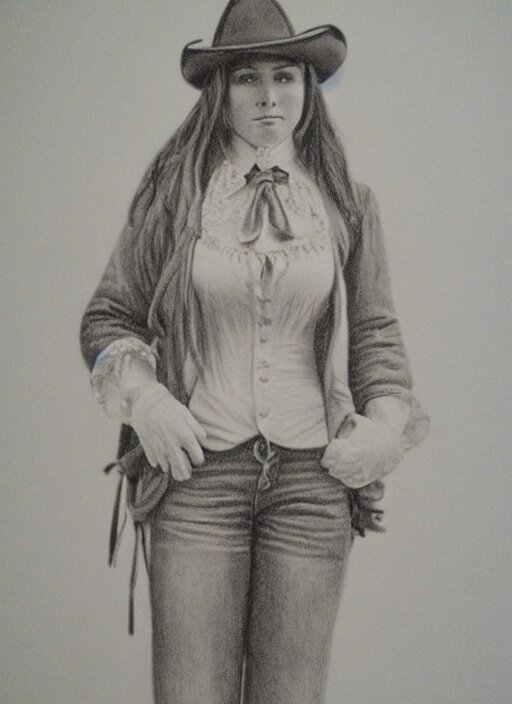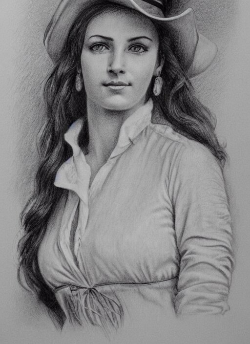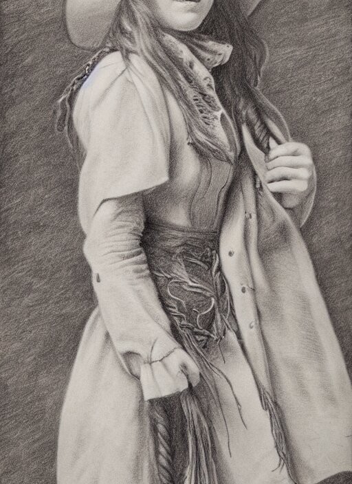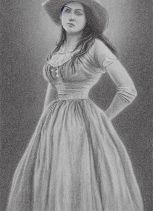 1 8 0 0 s style full body detailed pencil drawing of a cowgirl beautiful face