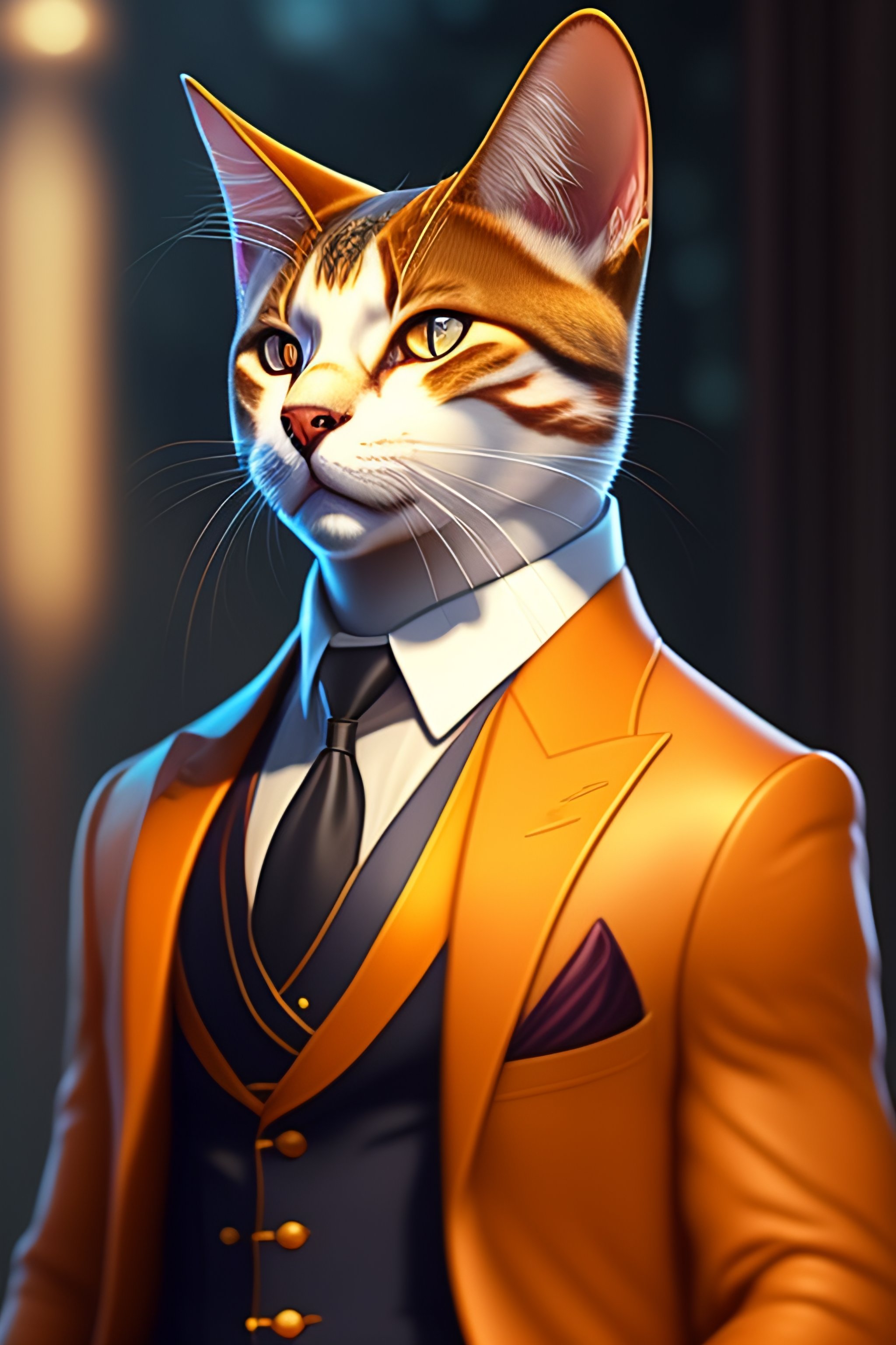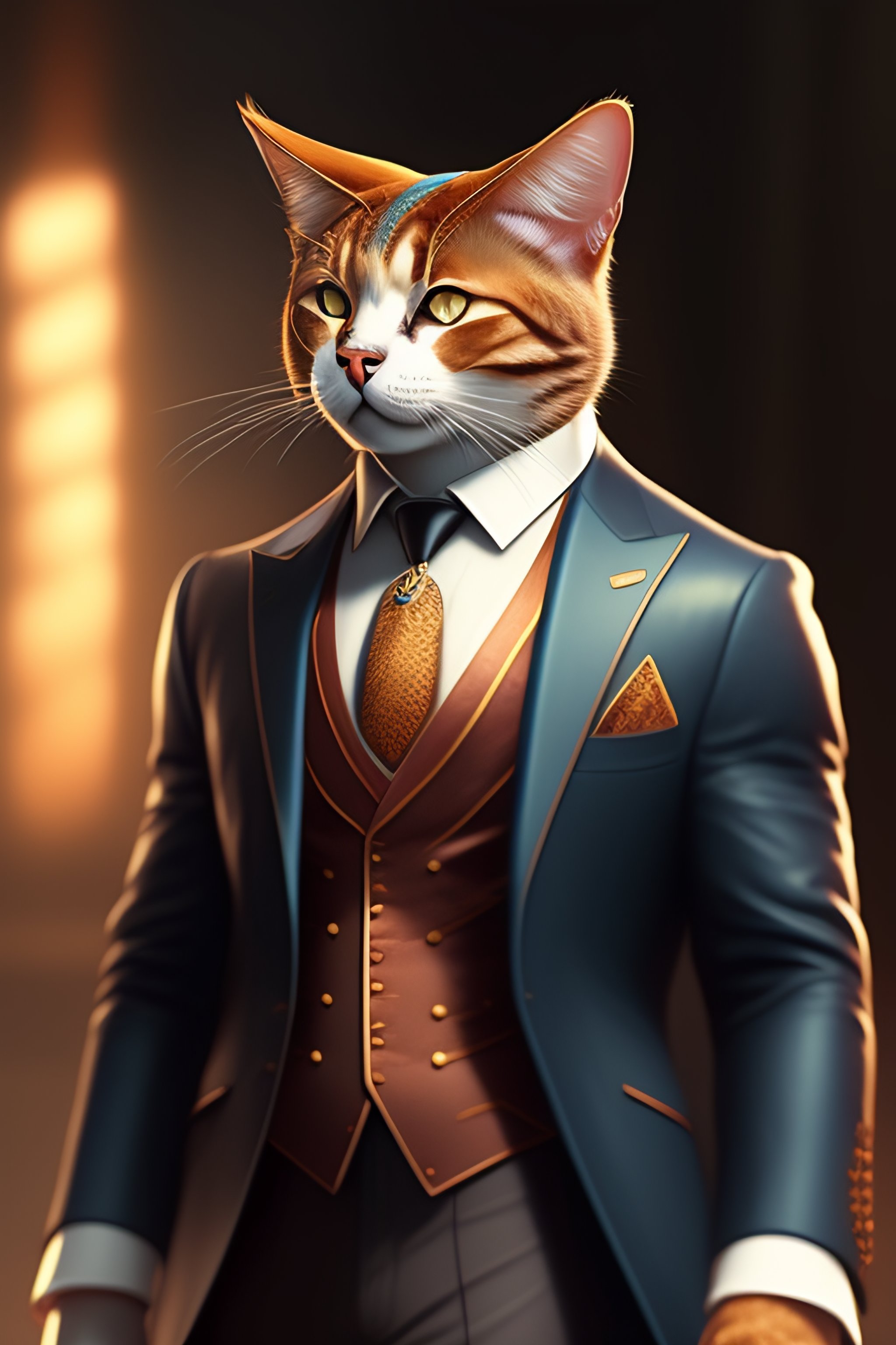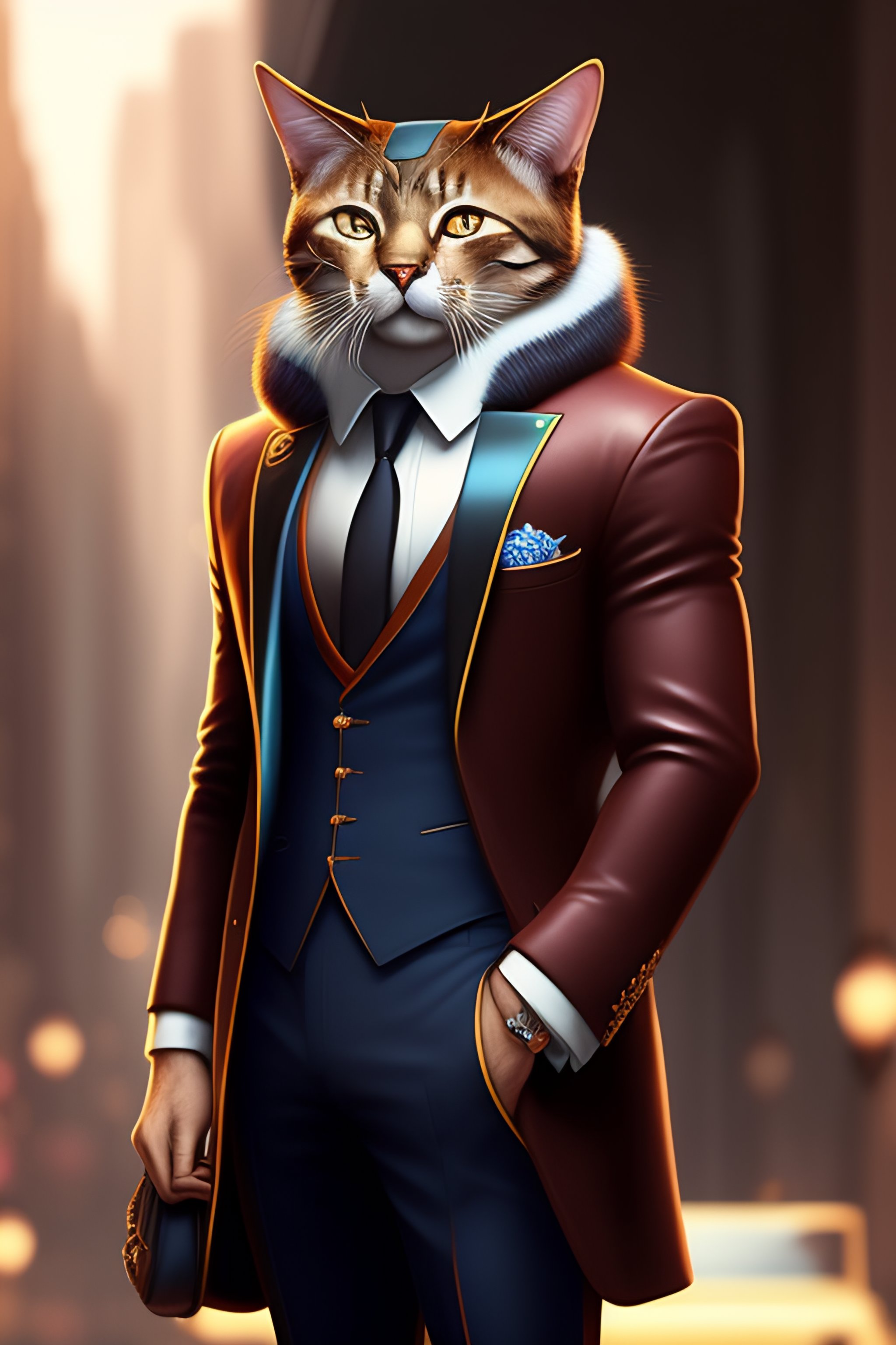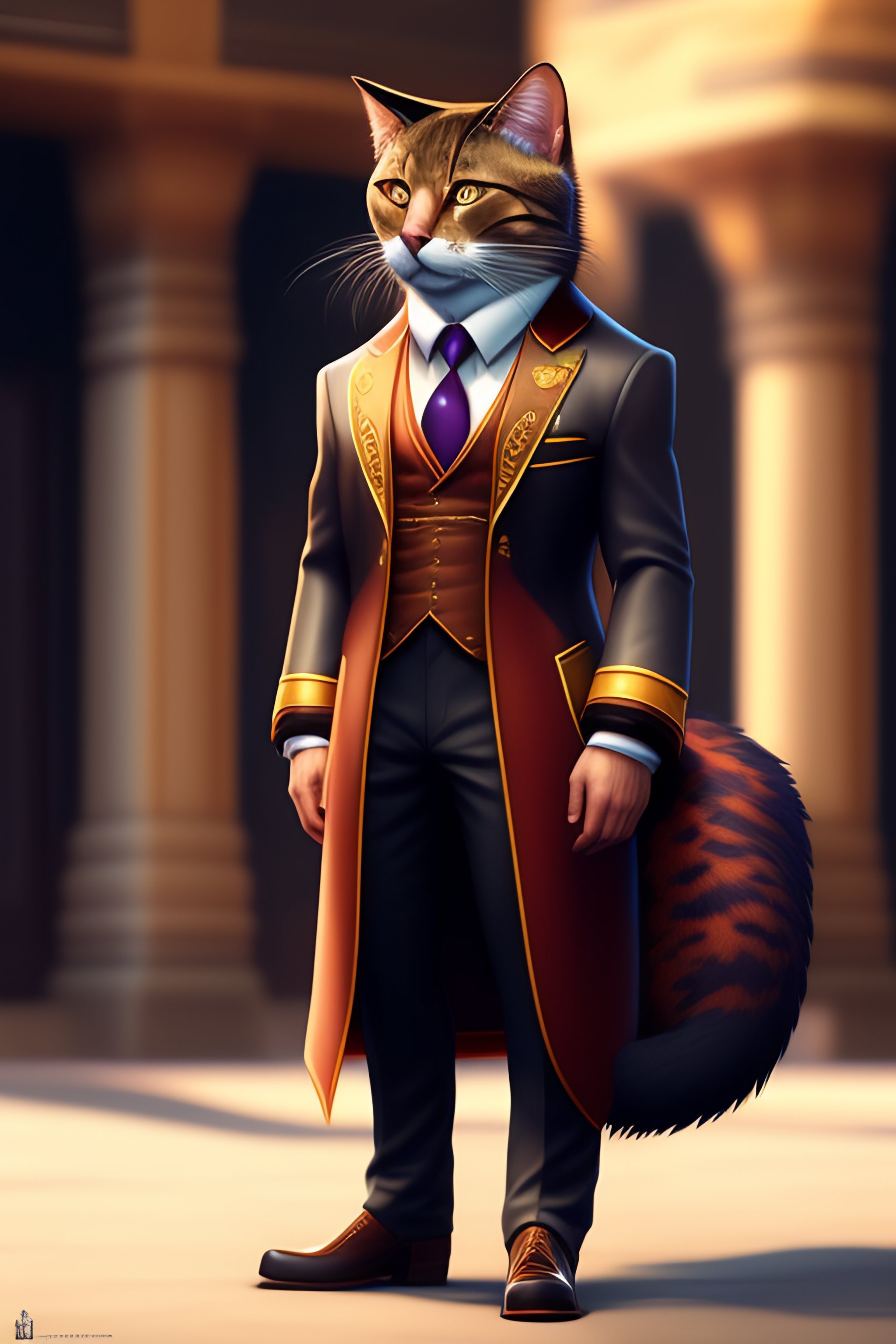 Anthro furry cat, three piece suit, checking watch, character concept design, painting, detailed, vivid, trending on artstation