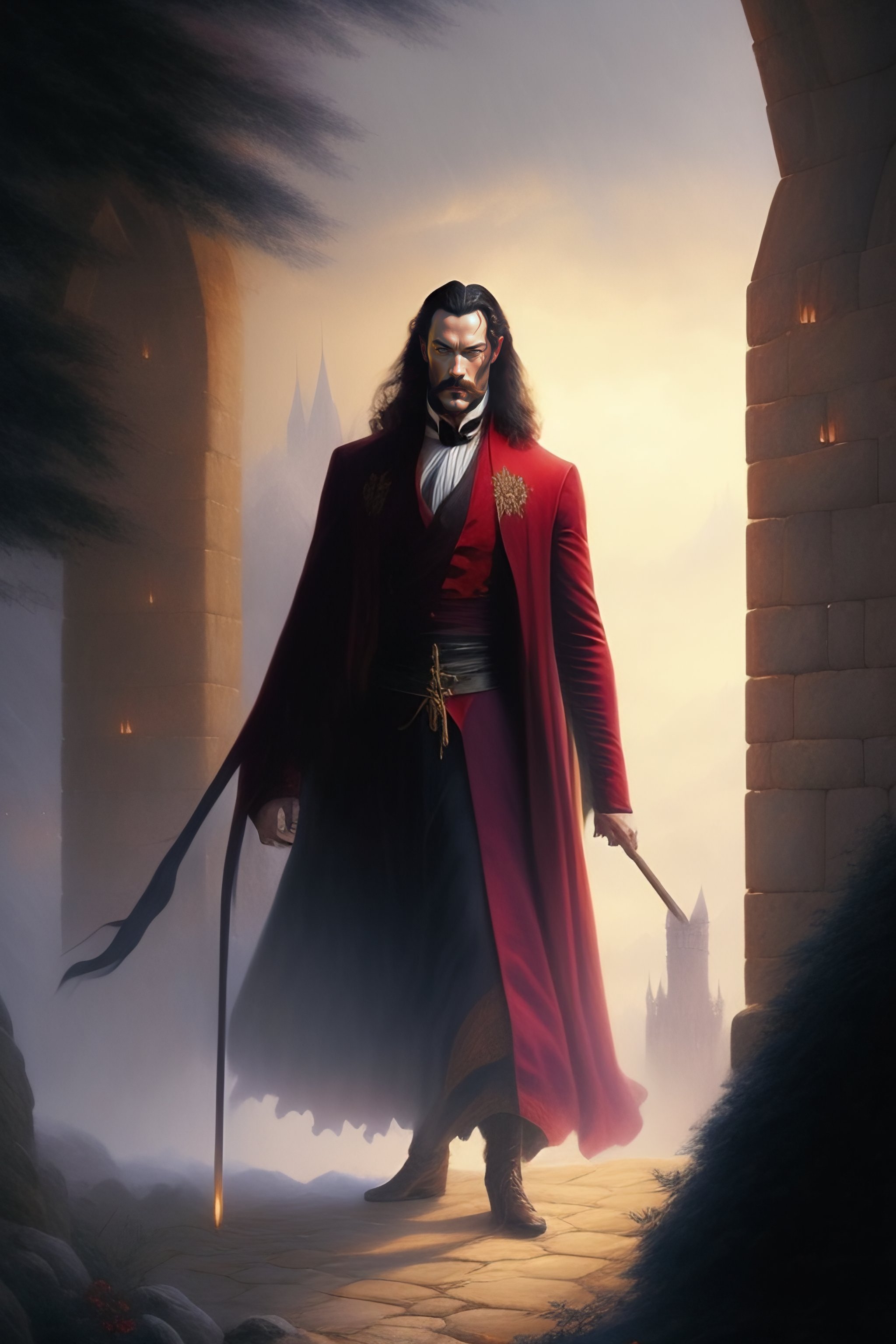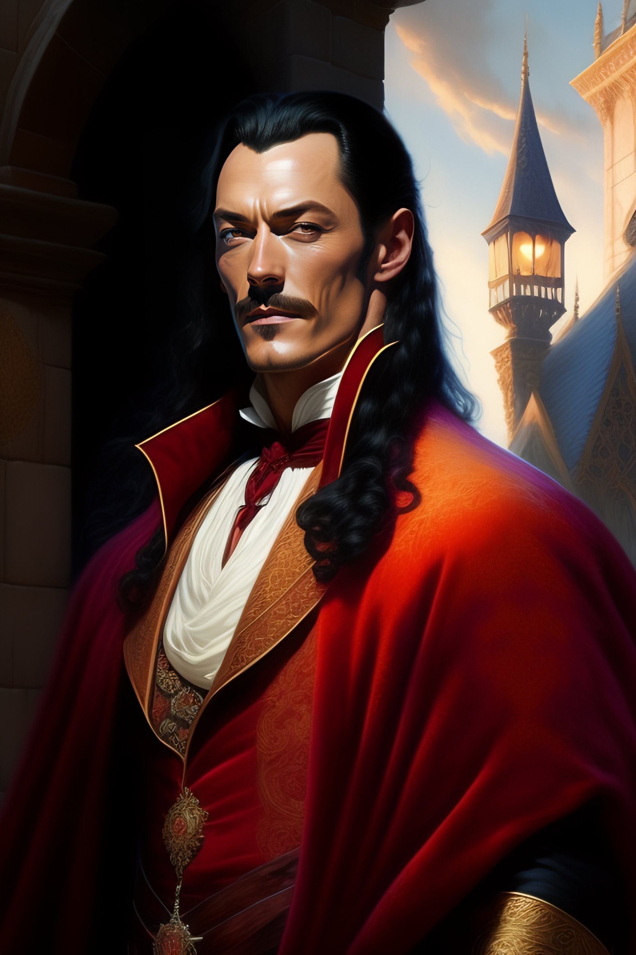 Luke evans as dracula in medieval style! fantasy background, focus, concept art, art by ferdinand knab greg rutkowski artgerm loish rhads, highly detailed, realistic, book in arms