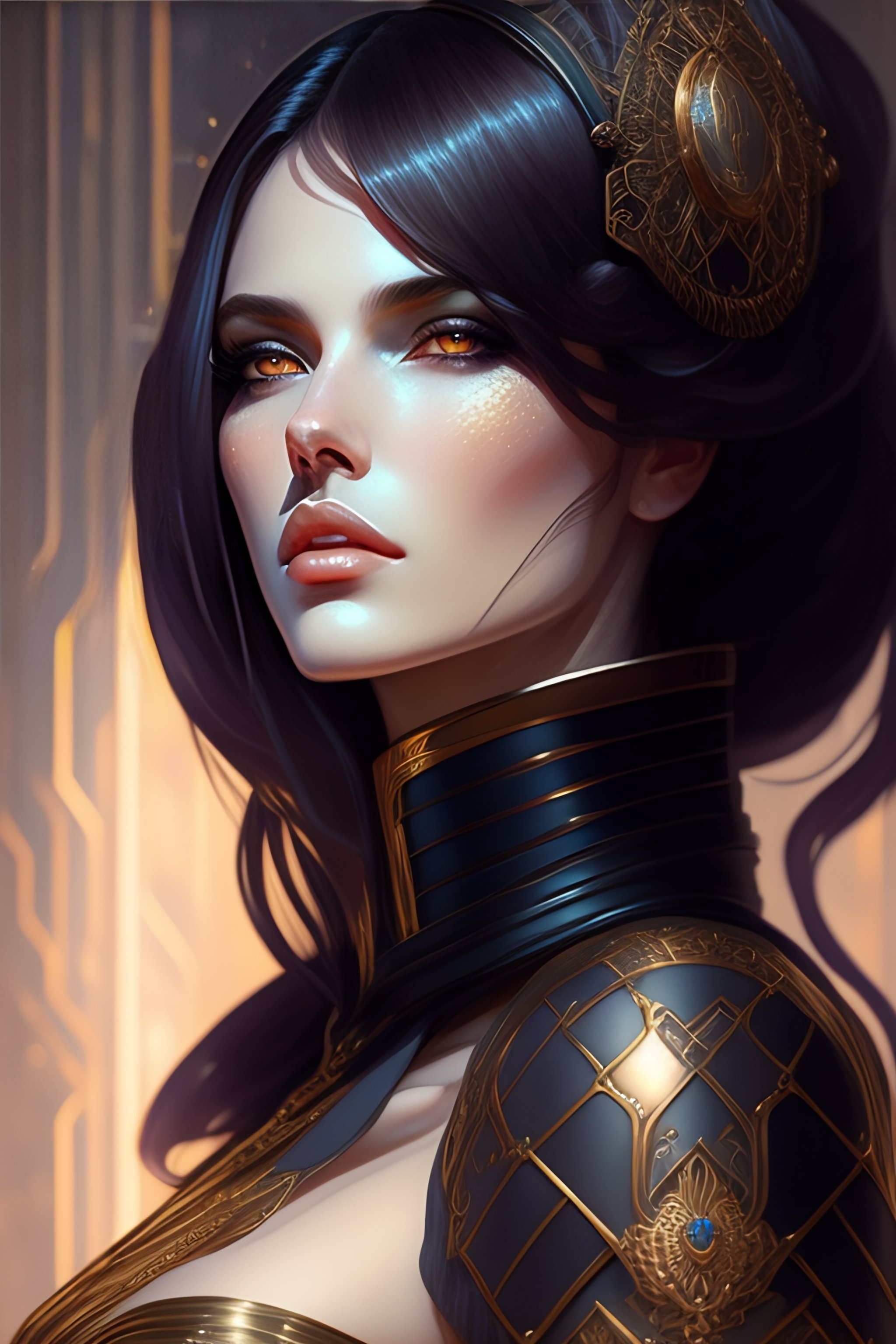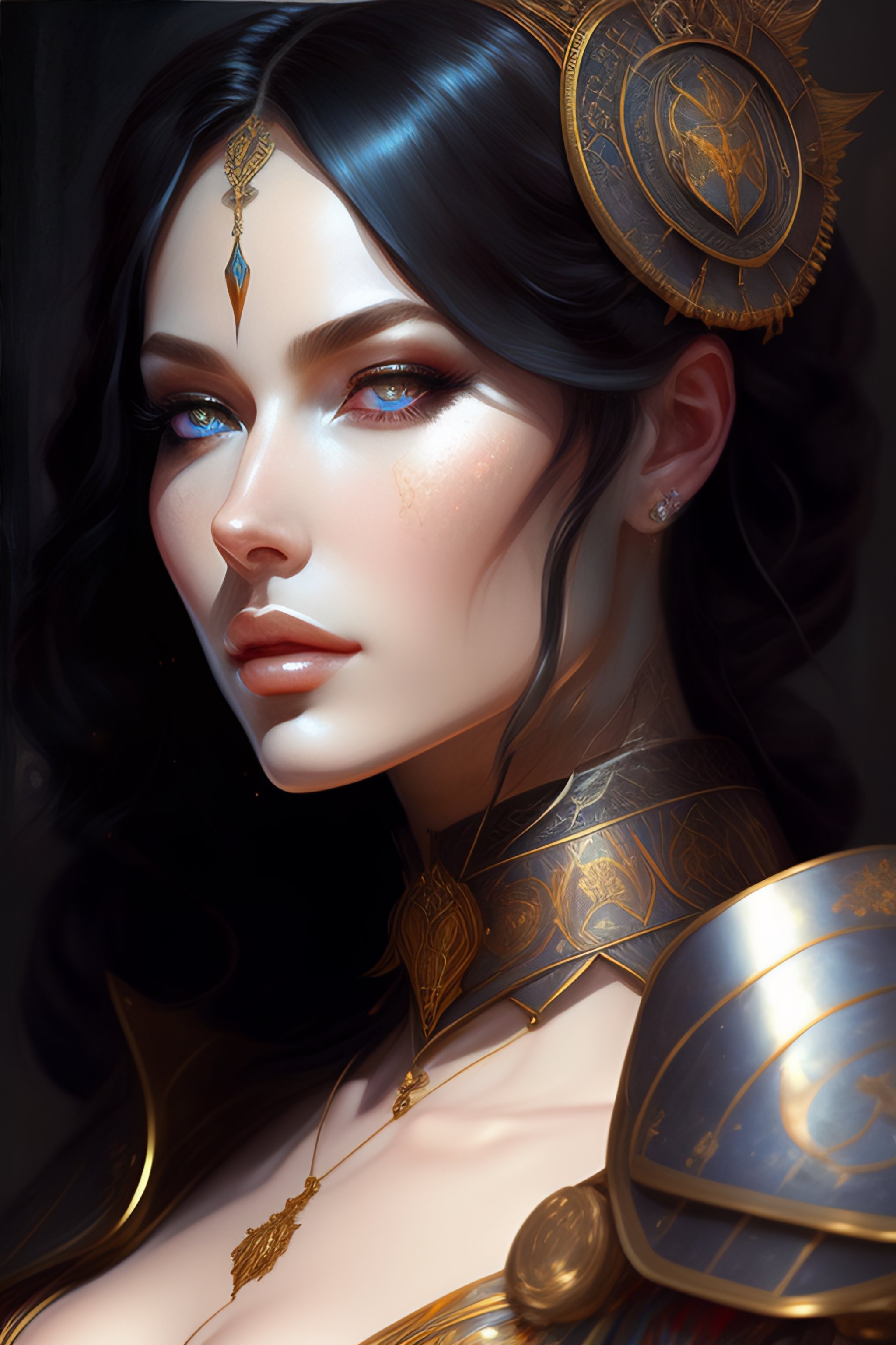 Portrait of beautiful pale gothic maiden, warhammer 40000, cyberpunk, intricate, elegant, highly detailed, digital painting, artstation, concept art, smooth, sharp focus, illustration, art by artgerm and greg rutkowski and alphonse mucha and gustav klimt and ilya kuvshinov