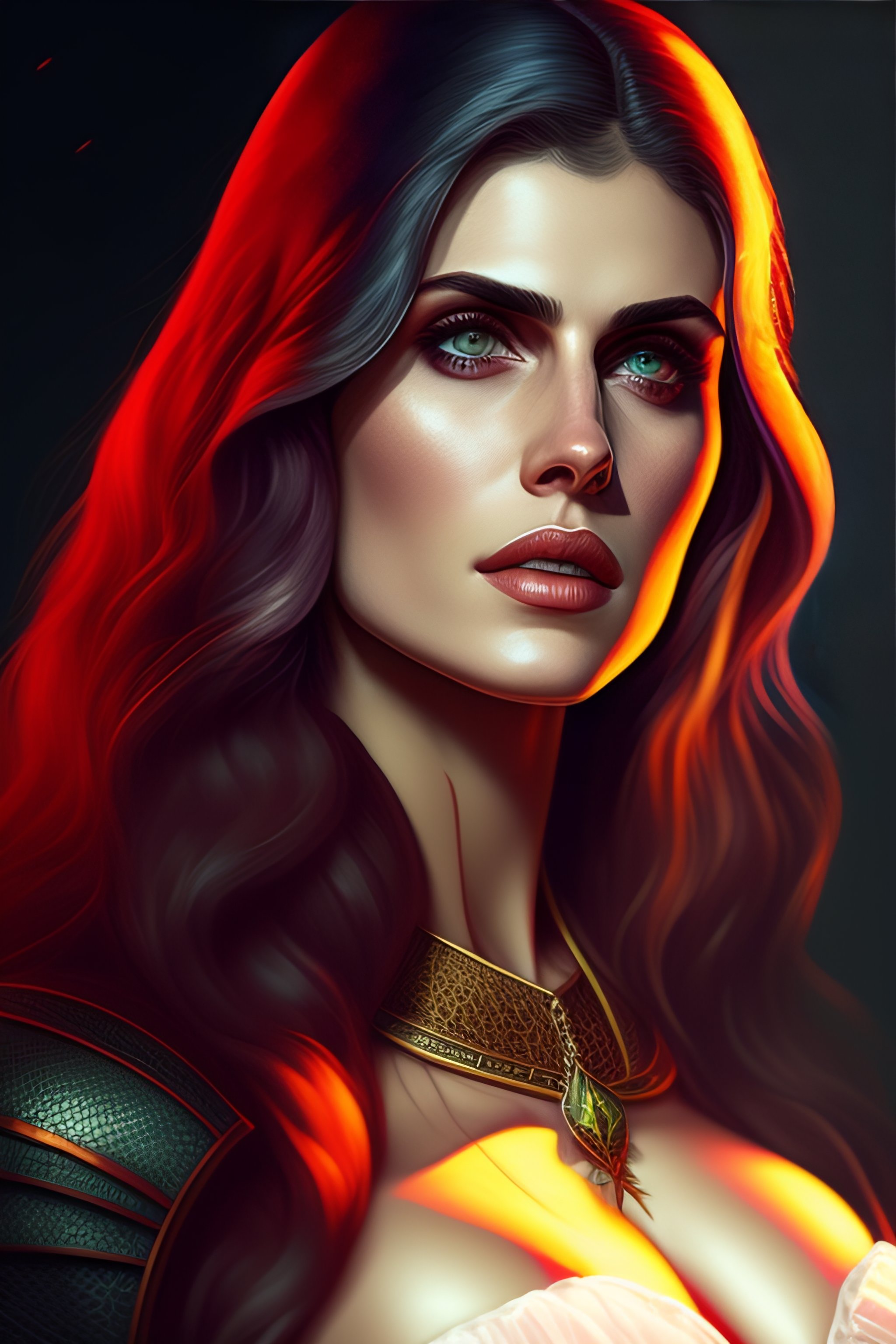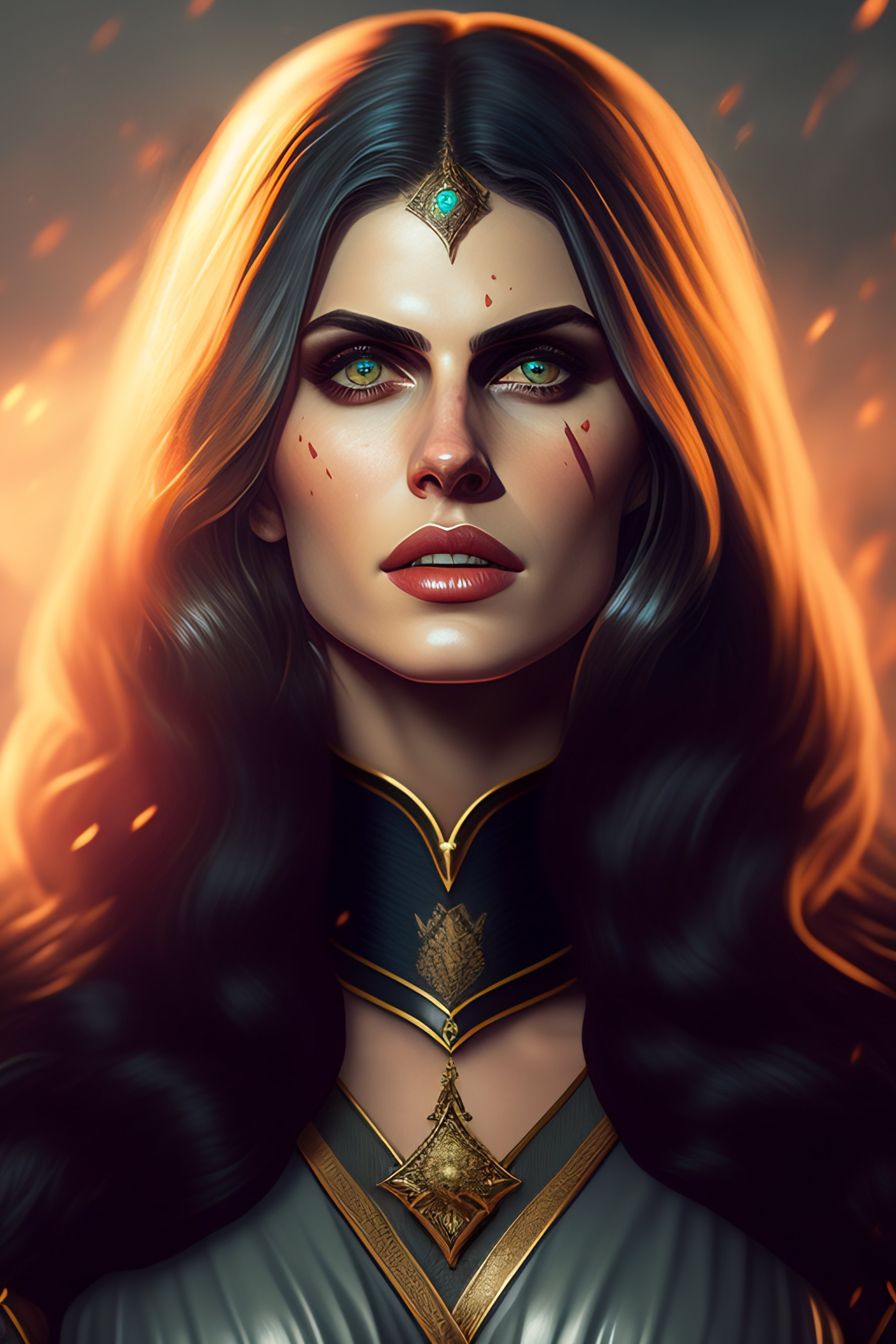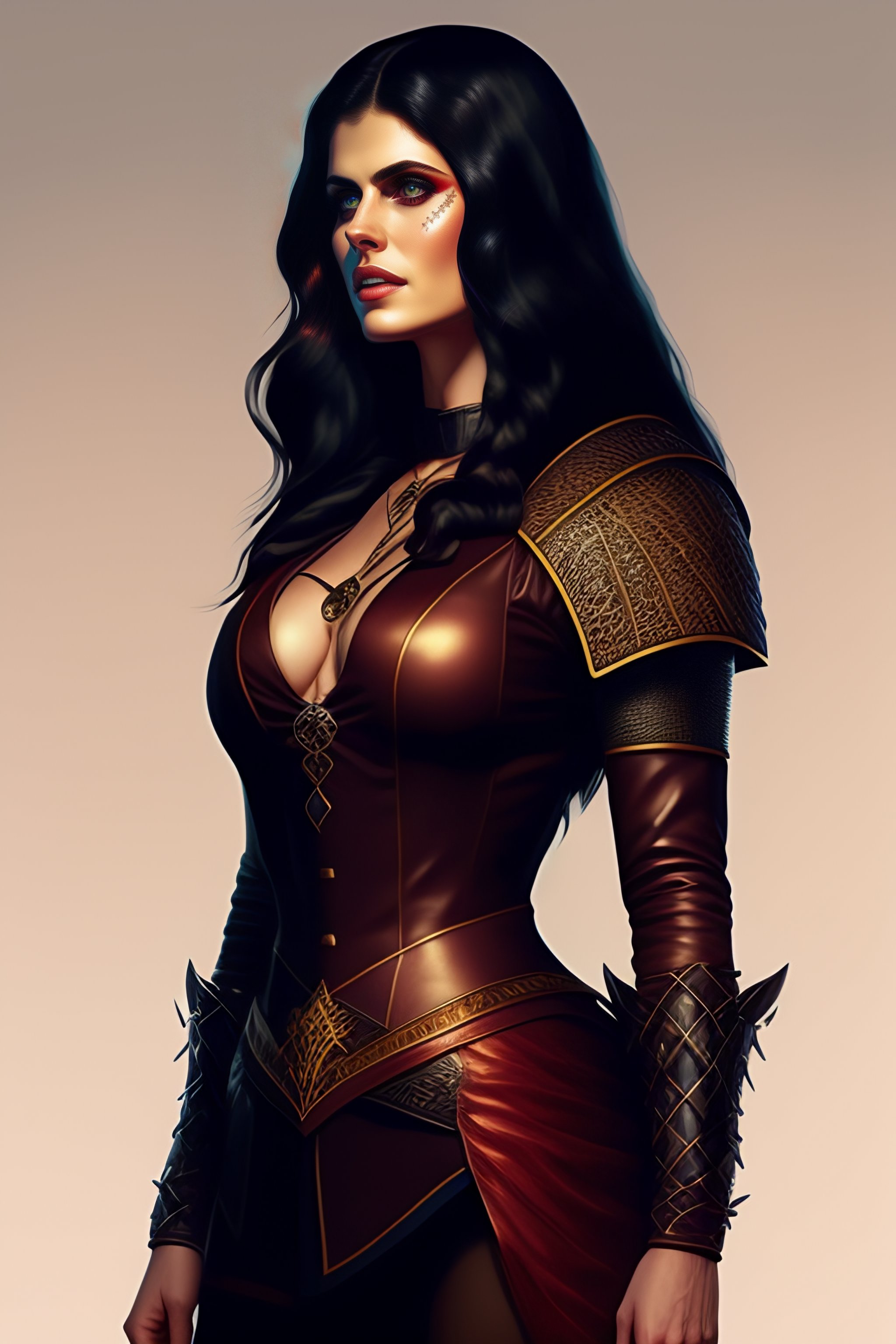 Alexandra daddario as witcher, full body view, big two toned eyes, horror, intricate details, cinematic, epic, realistic, anatomy, tomer hanuka, uplight, artstation, photorealistic, scary