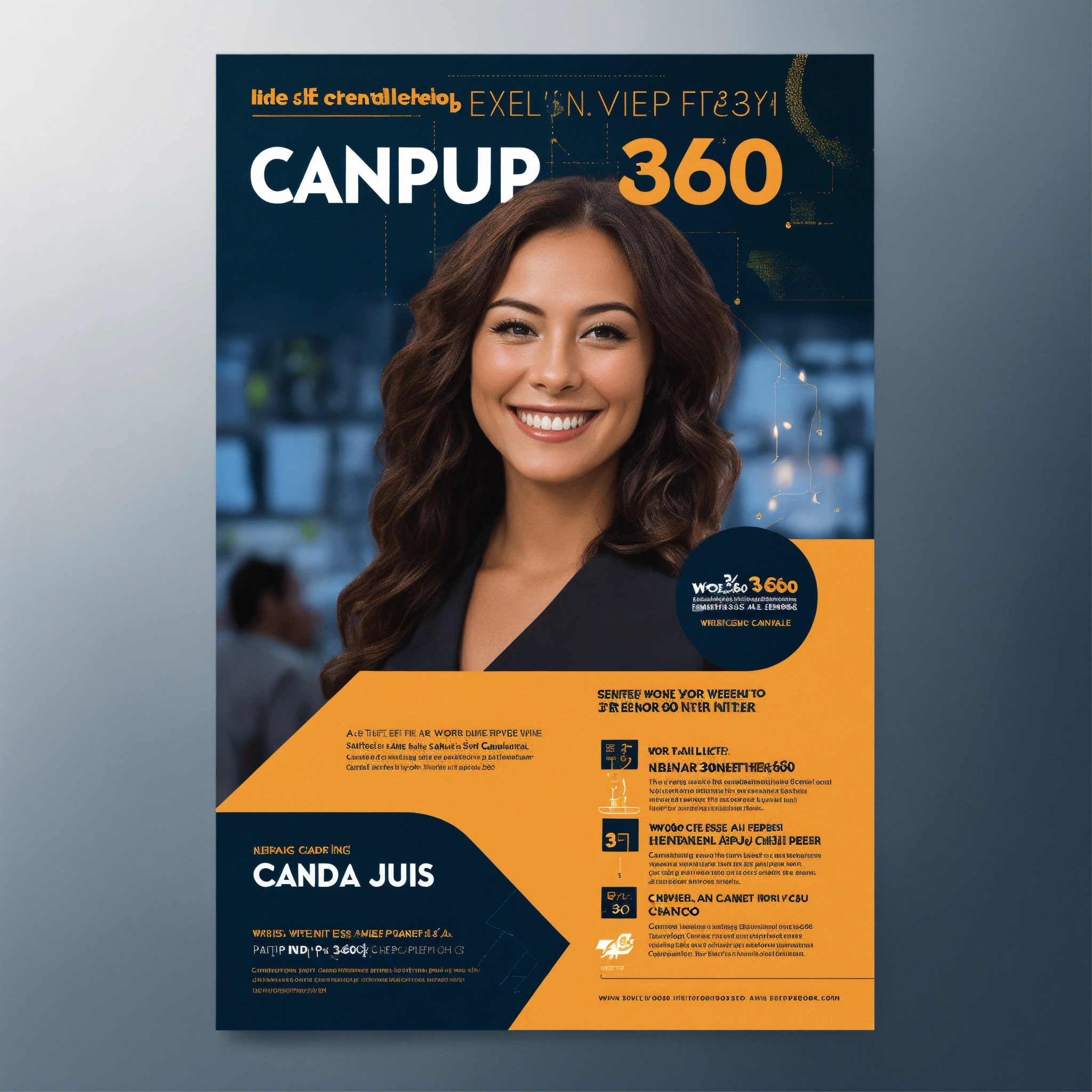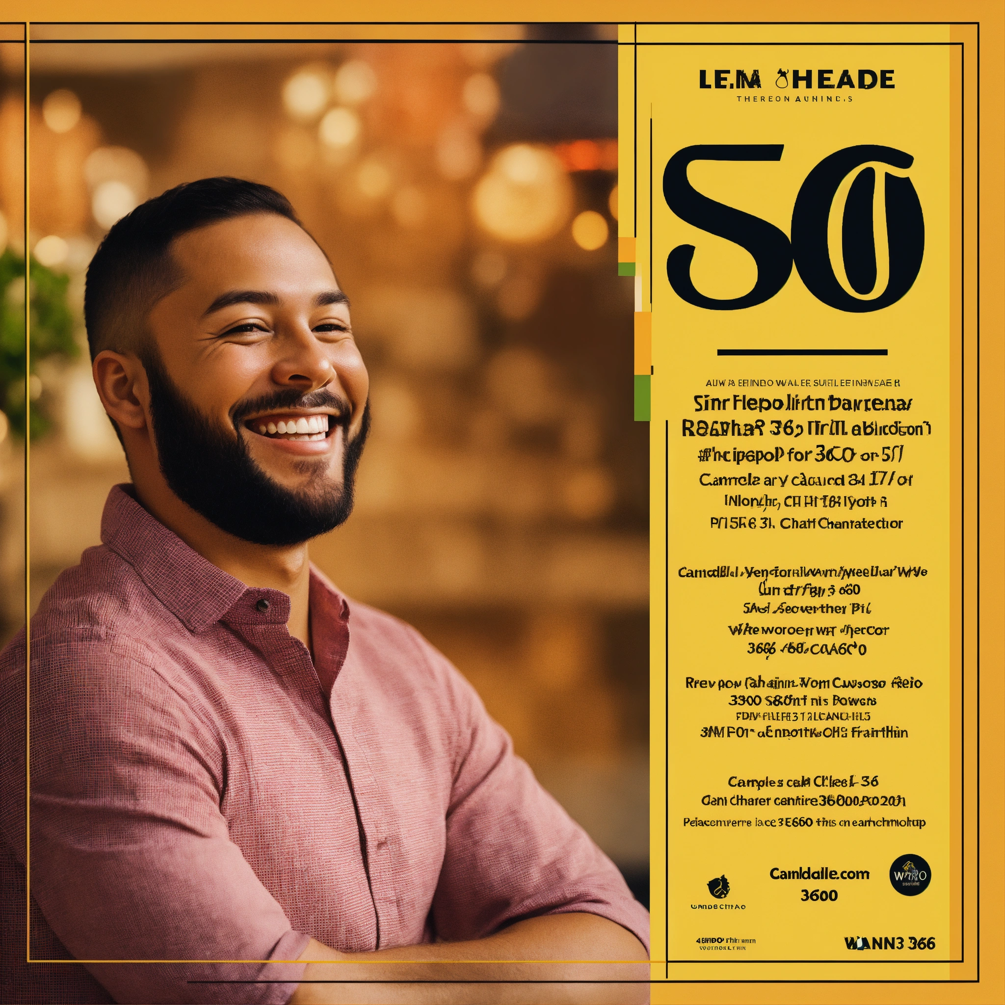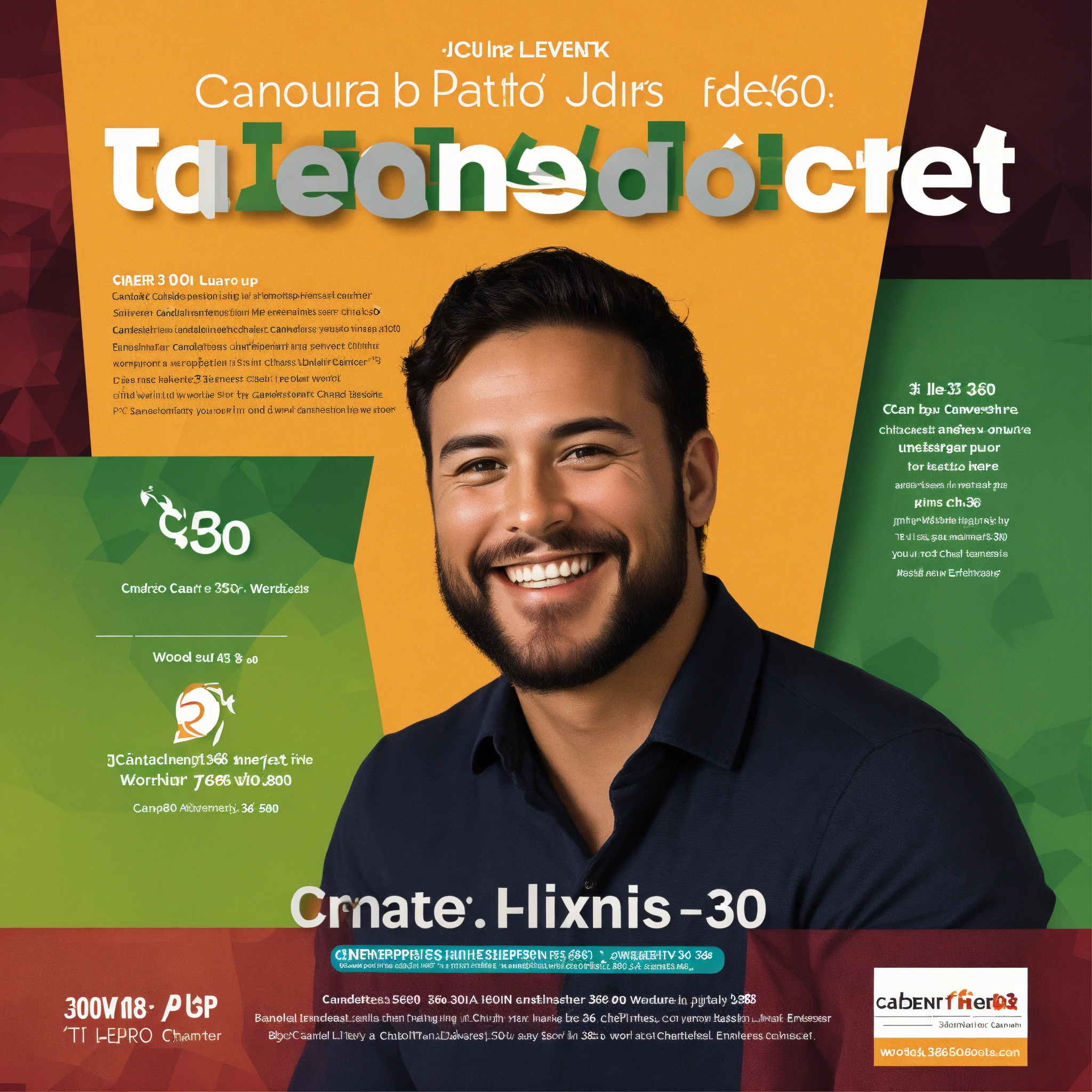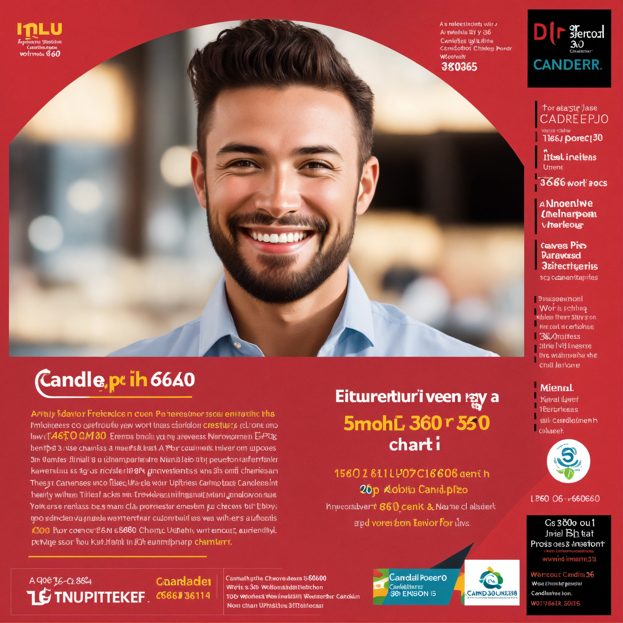 A flyer with an entrepreneur smiling and uptrend candlestick chart; include word "equipo360"