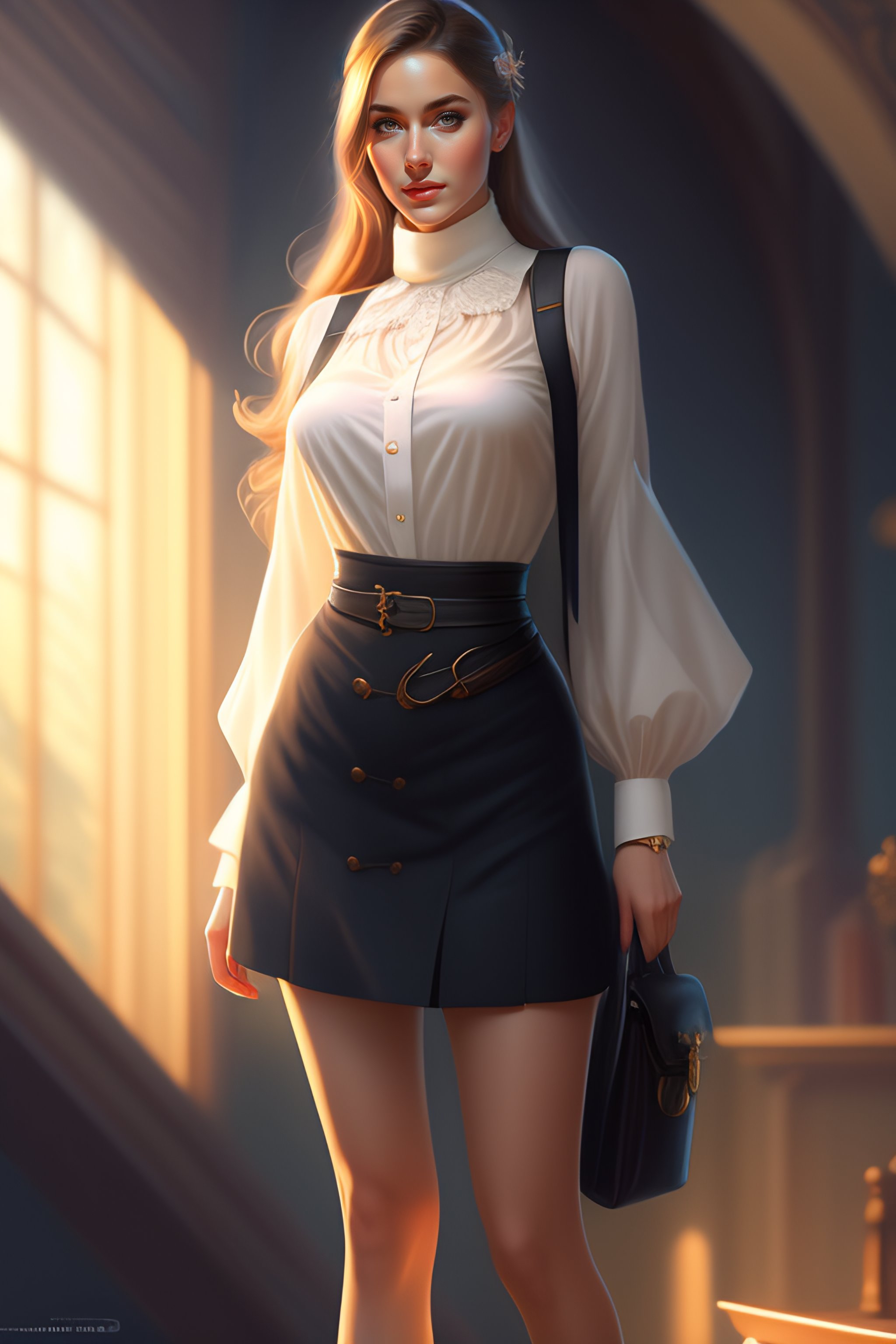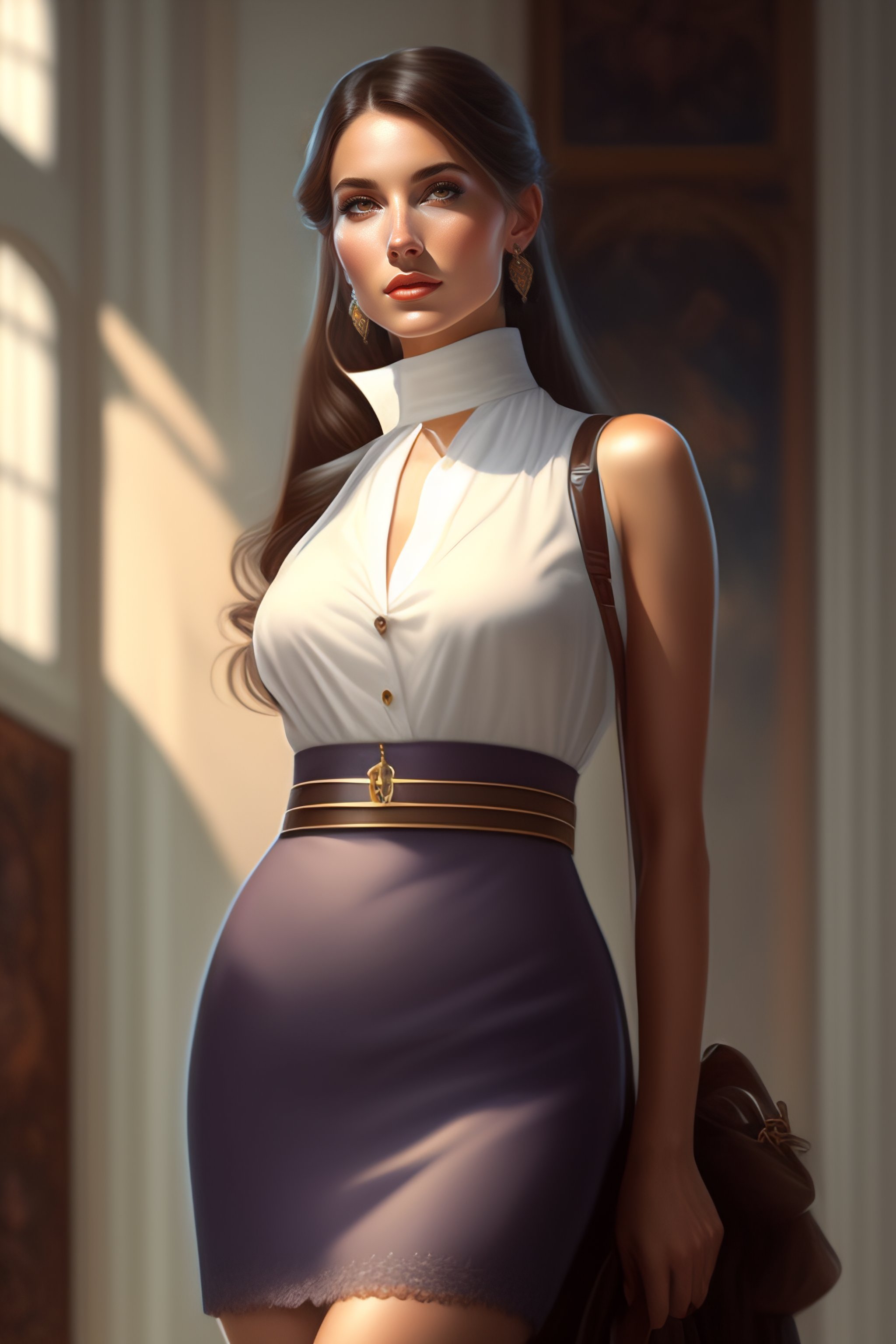 Portrait of a full body of beautiful young female secretary, d & d, sleeveless turtleneck, pencil miniskirt, stockings, fantasy, flat lighting, intricate, highly detailed, digital painting, artstation, concept art, smooth, sharp focus, illustration, art by simon bisley and greg rutkowski and alphonse mucha, natural tpose