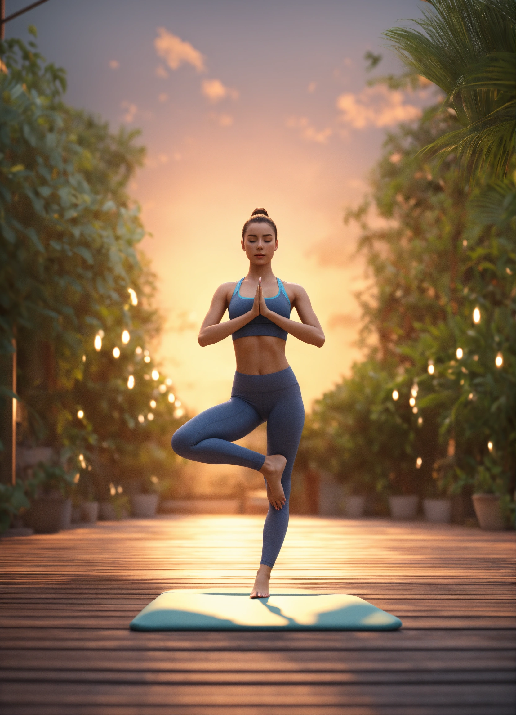 Very high detailed, ultra realistic, 3d illustration, cinema 4d, very beautiful girl with perfect body doing yoga poses