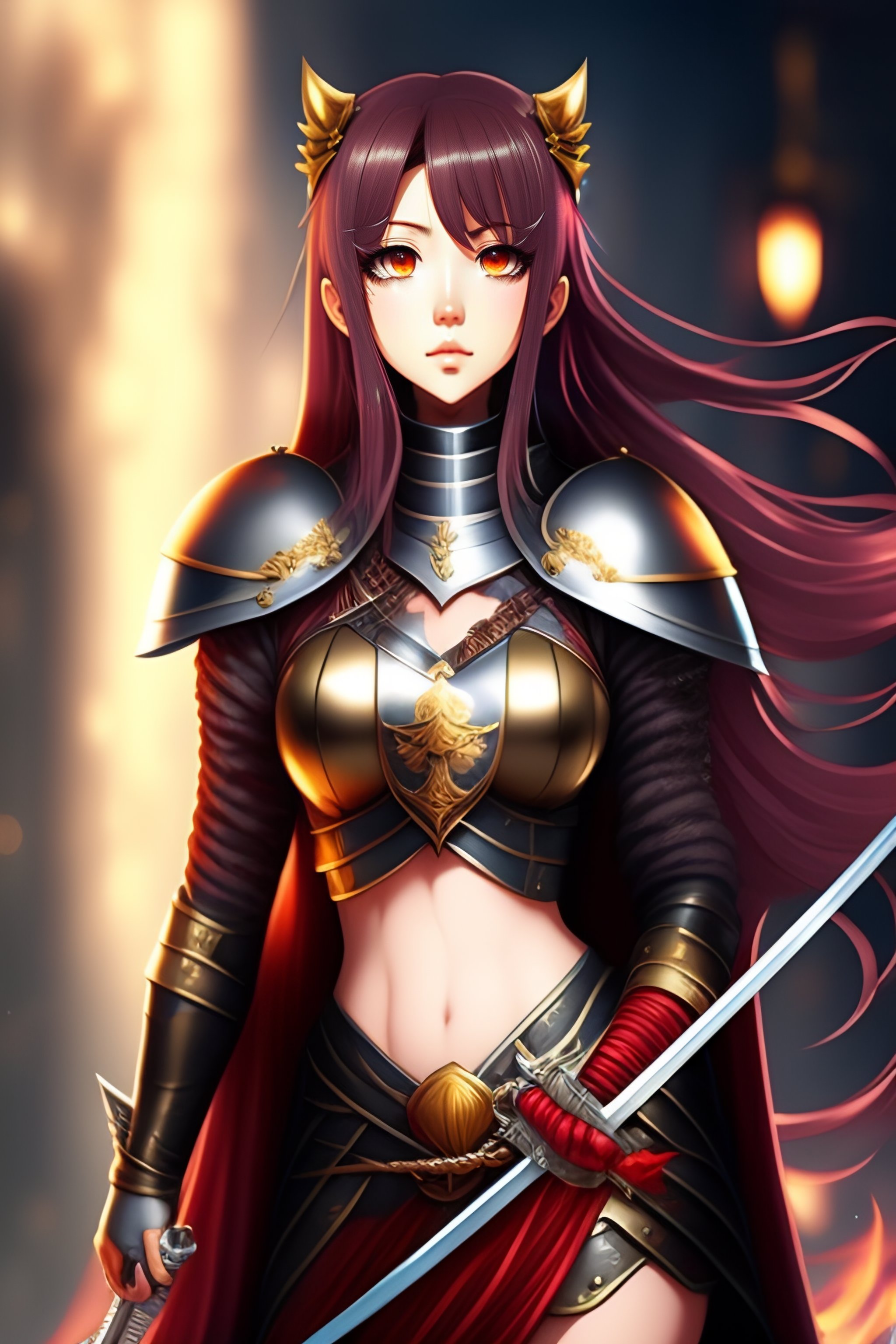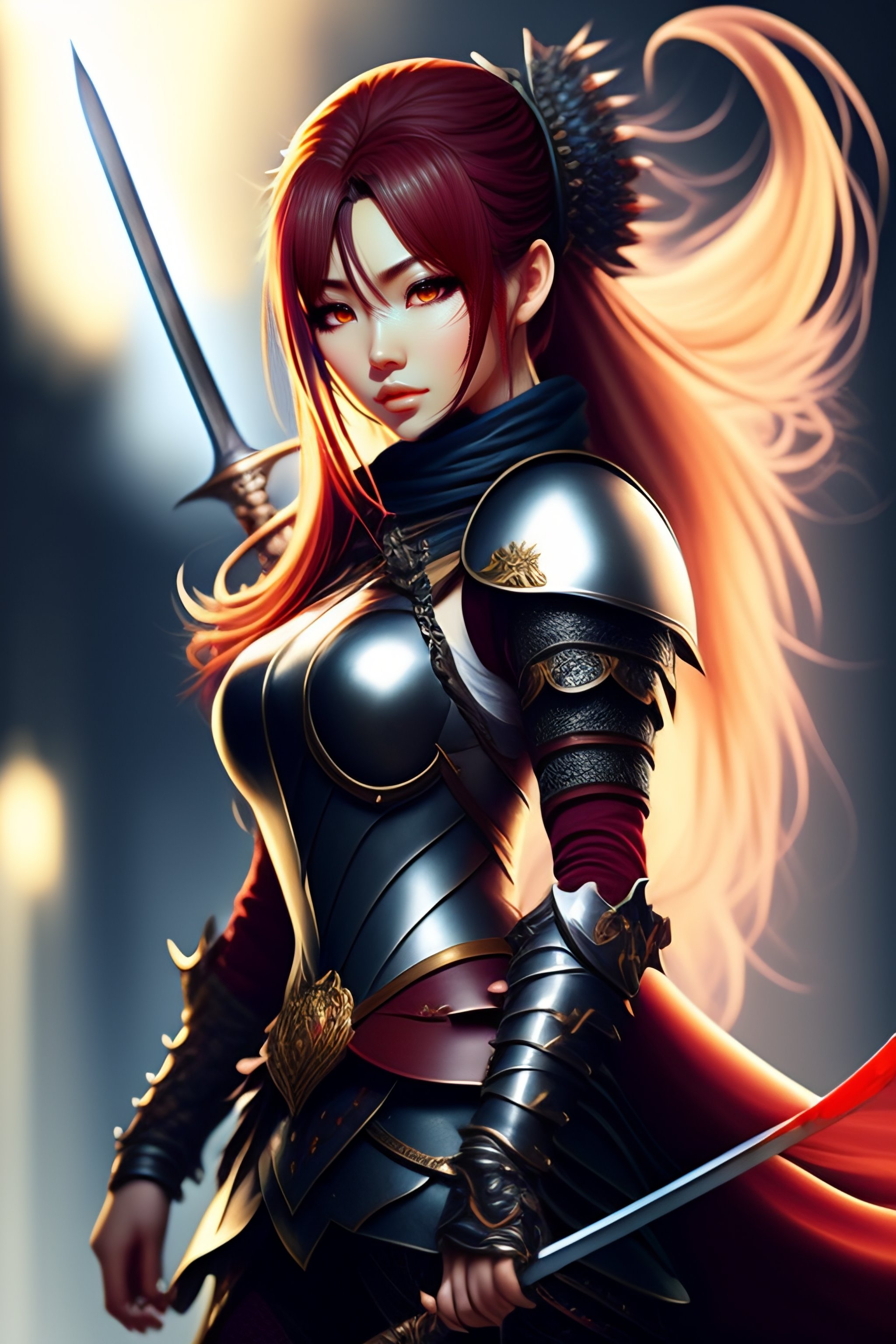 Anime female knight full body holding sword
