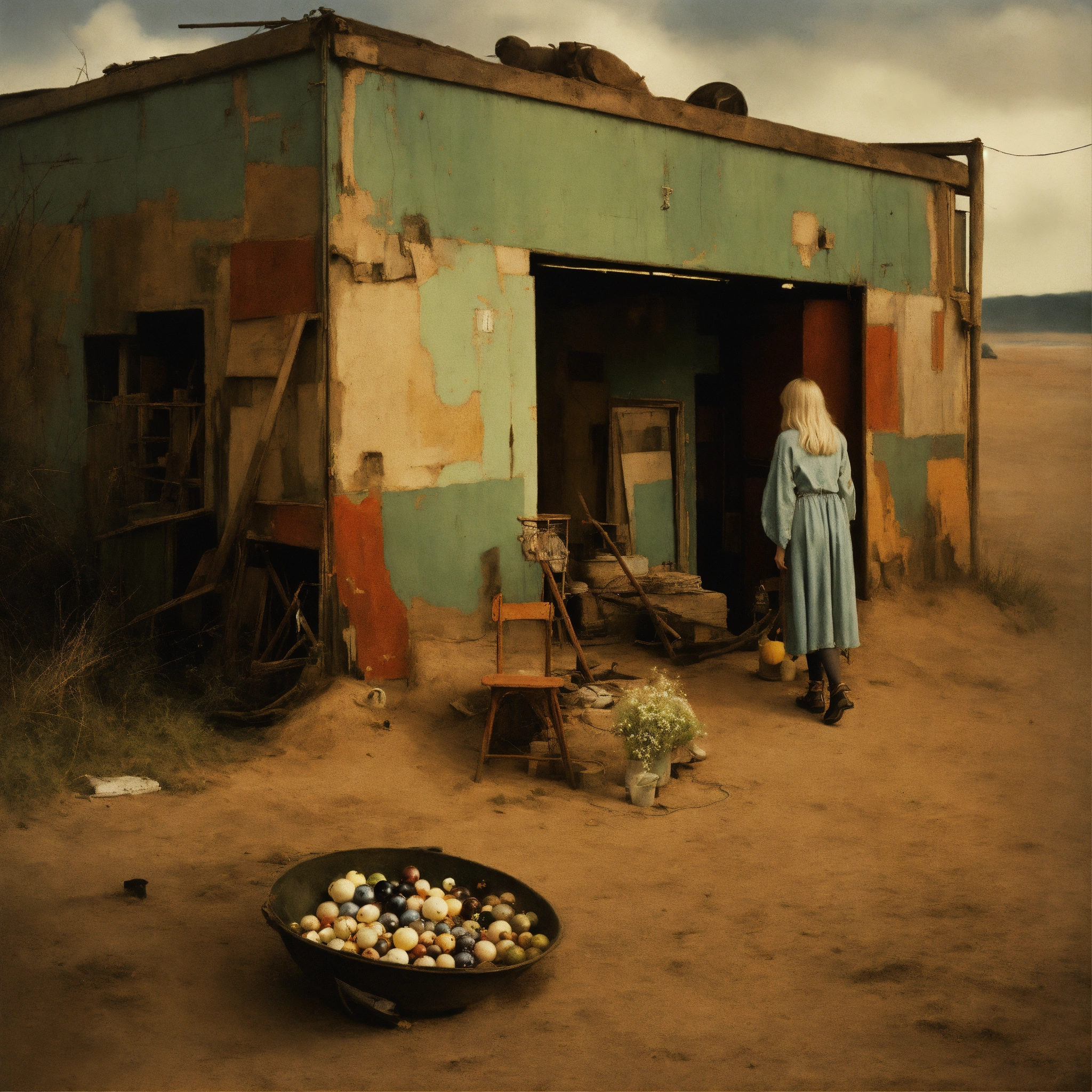 Landscape in style dorothea lange, annie leibovitz, richard avedon, henri cartier-bresson, edward weston, elliott erwitt, woman blonde in the style of adrian ghenie, esao andrews, jenny saville, edward hopper, takato yamamoto, 1950 retro future art cubist designs borders lines decorations space machine, muted colors inspired by baptiste monge, photography style