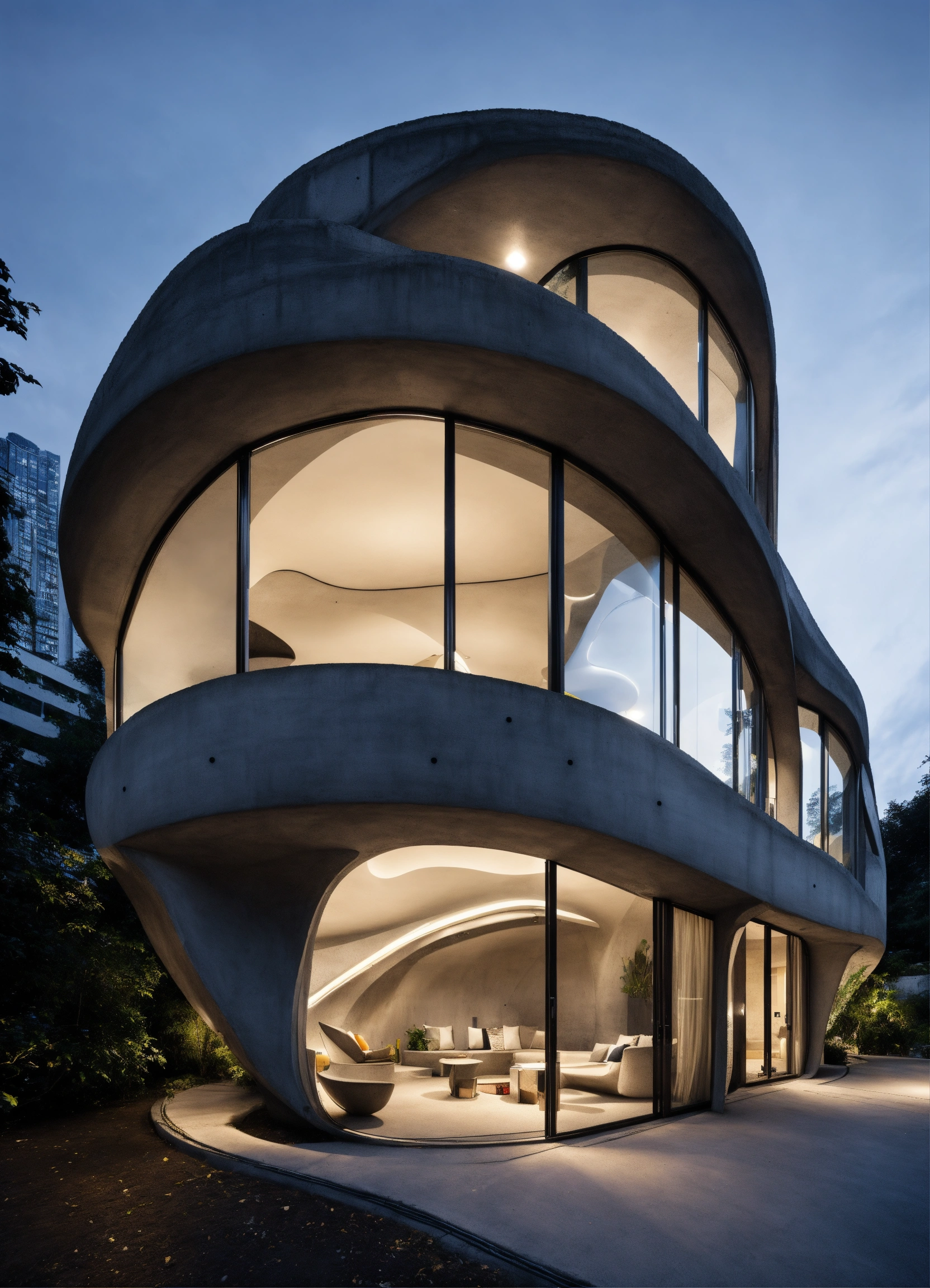 Zaha hadid art deco concrete house in the city