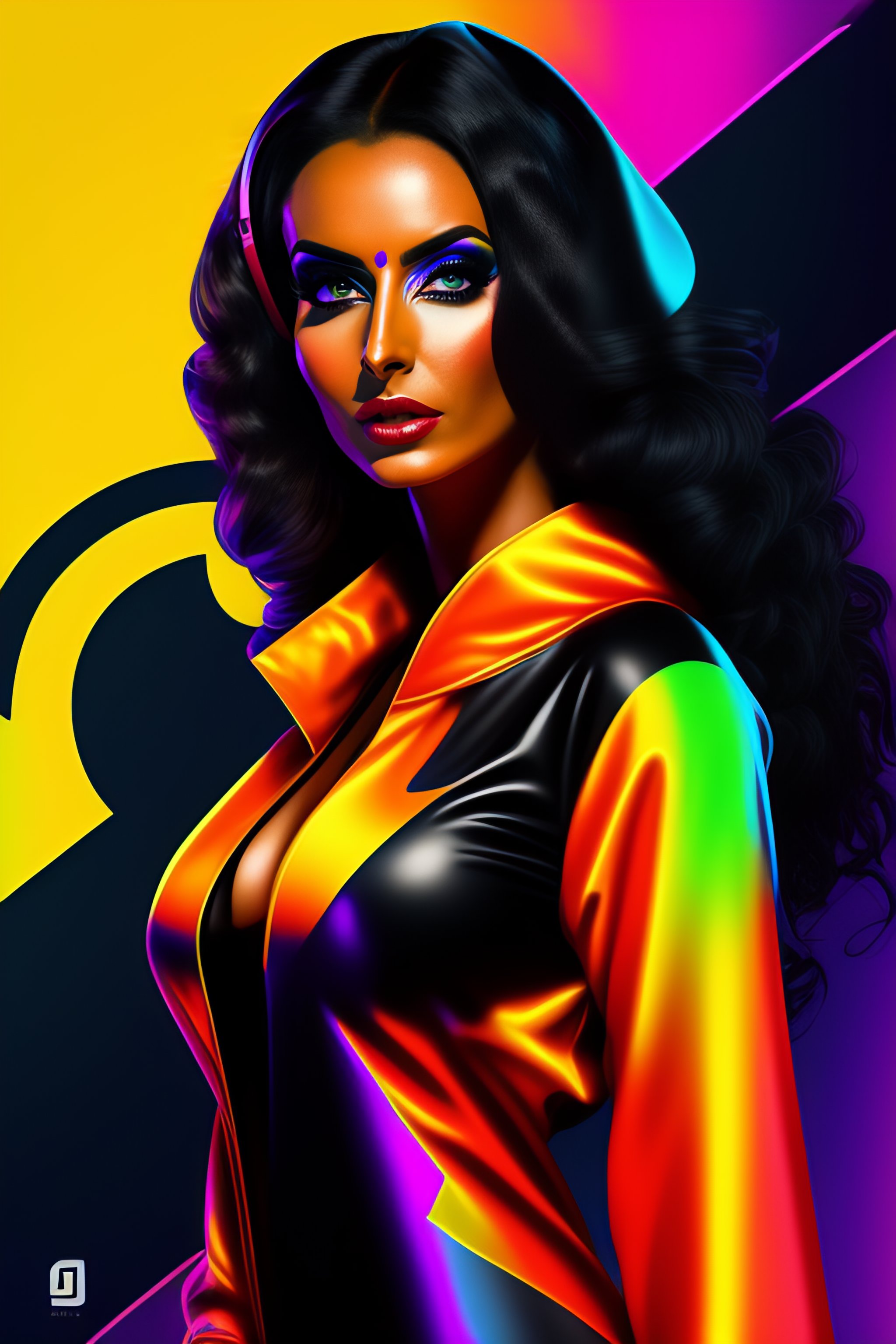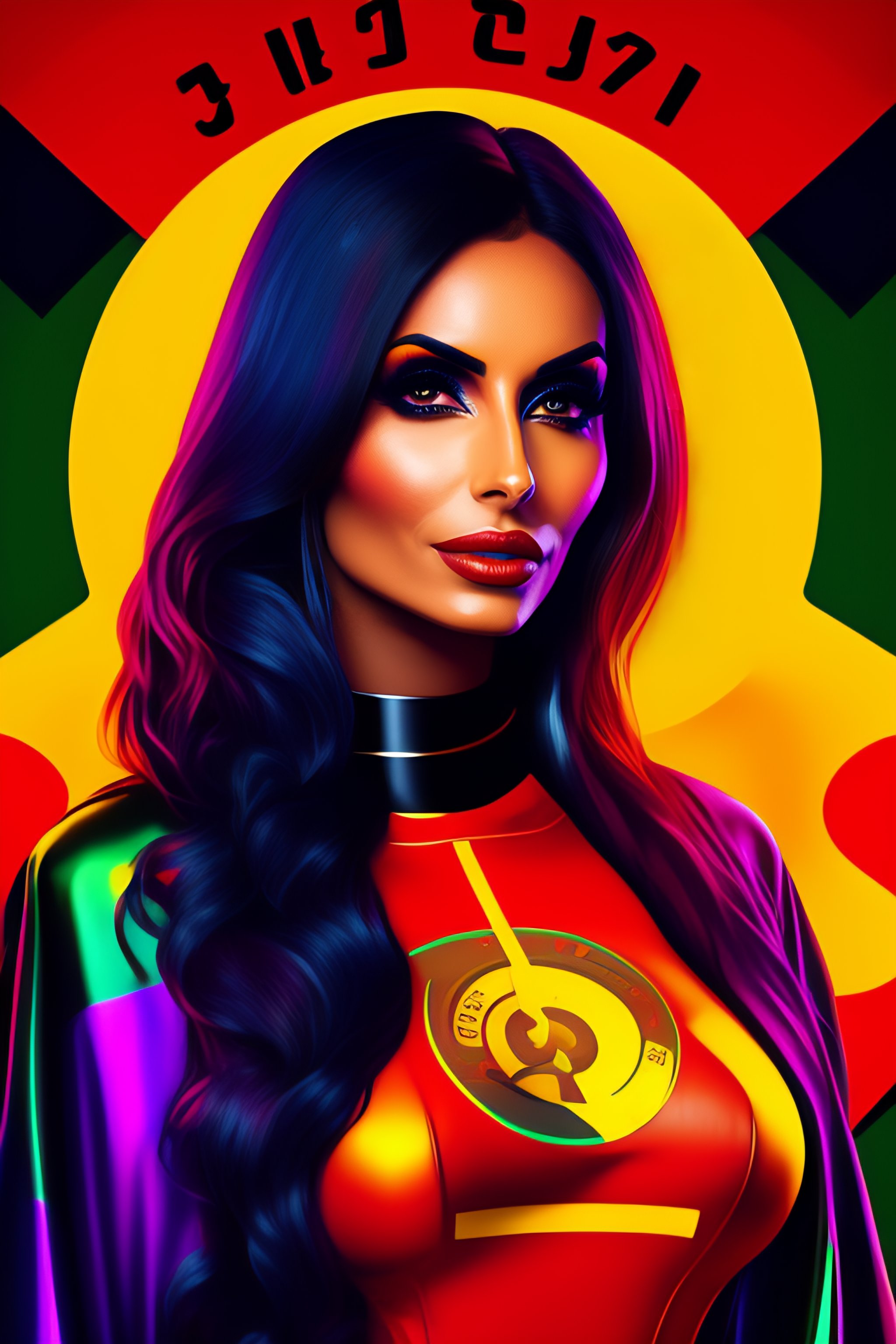 Anissa kate as an anthropomorphic beautiful female borderlands 3 psycho portrait holding a binoculars wearing colourful robe, vector, graphic novel, grunge, horror tshirt design