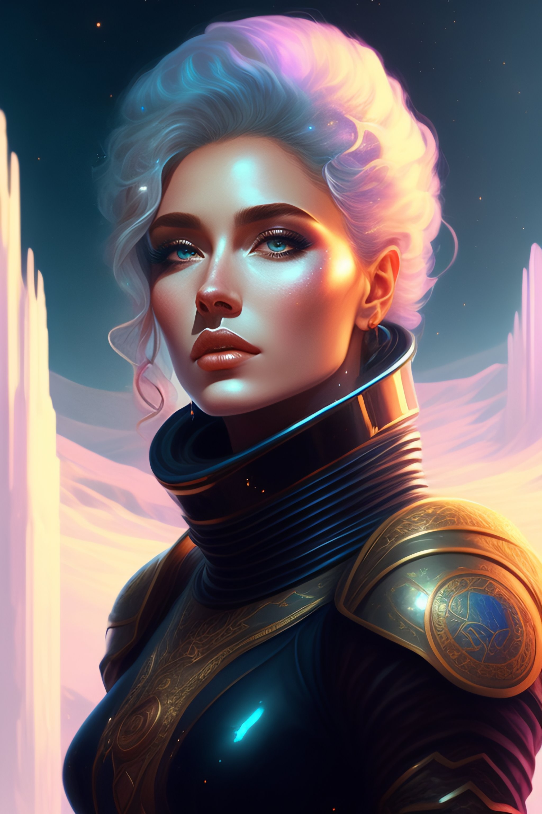Portrait dark fantasy cosmonaut of ancient god, in ruined ancient cosmic base, sci - fi and fantasy, intricate and very very beautiful and elegant, highly detailed, digital painting, artstation, concept art, smooth and sharp focus, illustration, art by ilya kuvshinov
