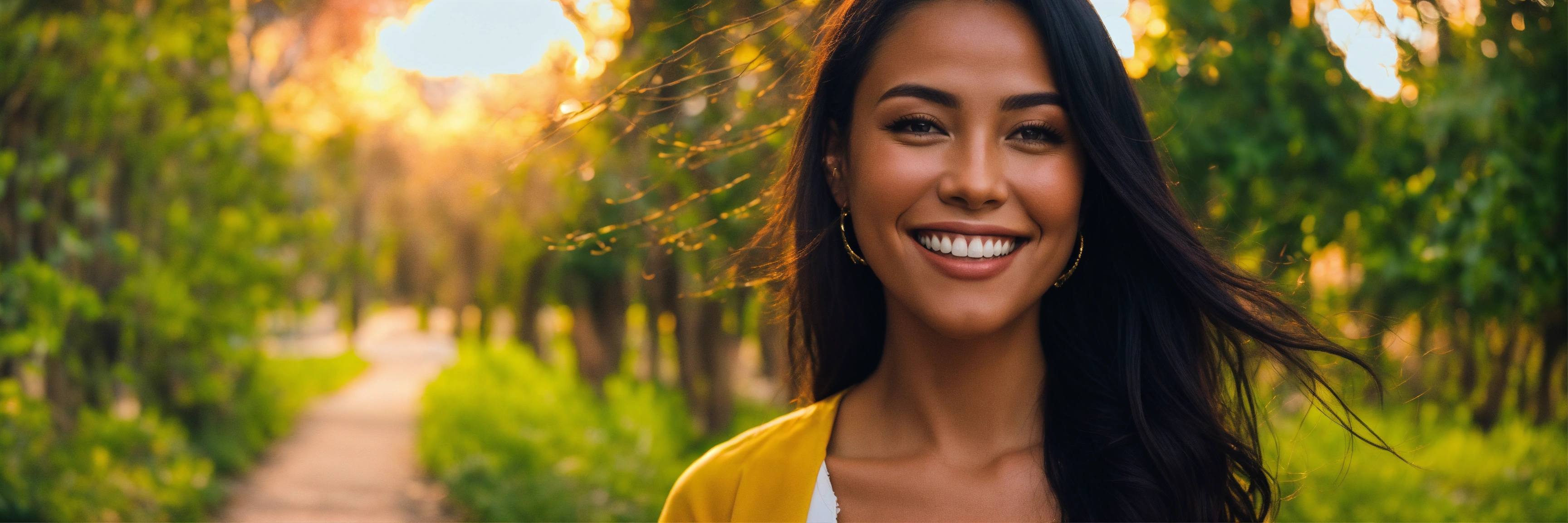 Image prompt of a woman with a radiant smile. this chapter discusses the importance of recognizing your personal space, emotional boundaries, and individual boundaries.