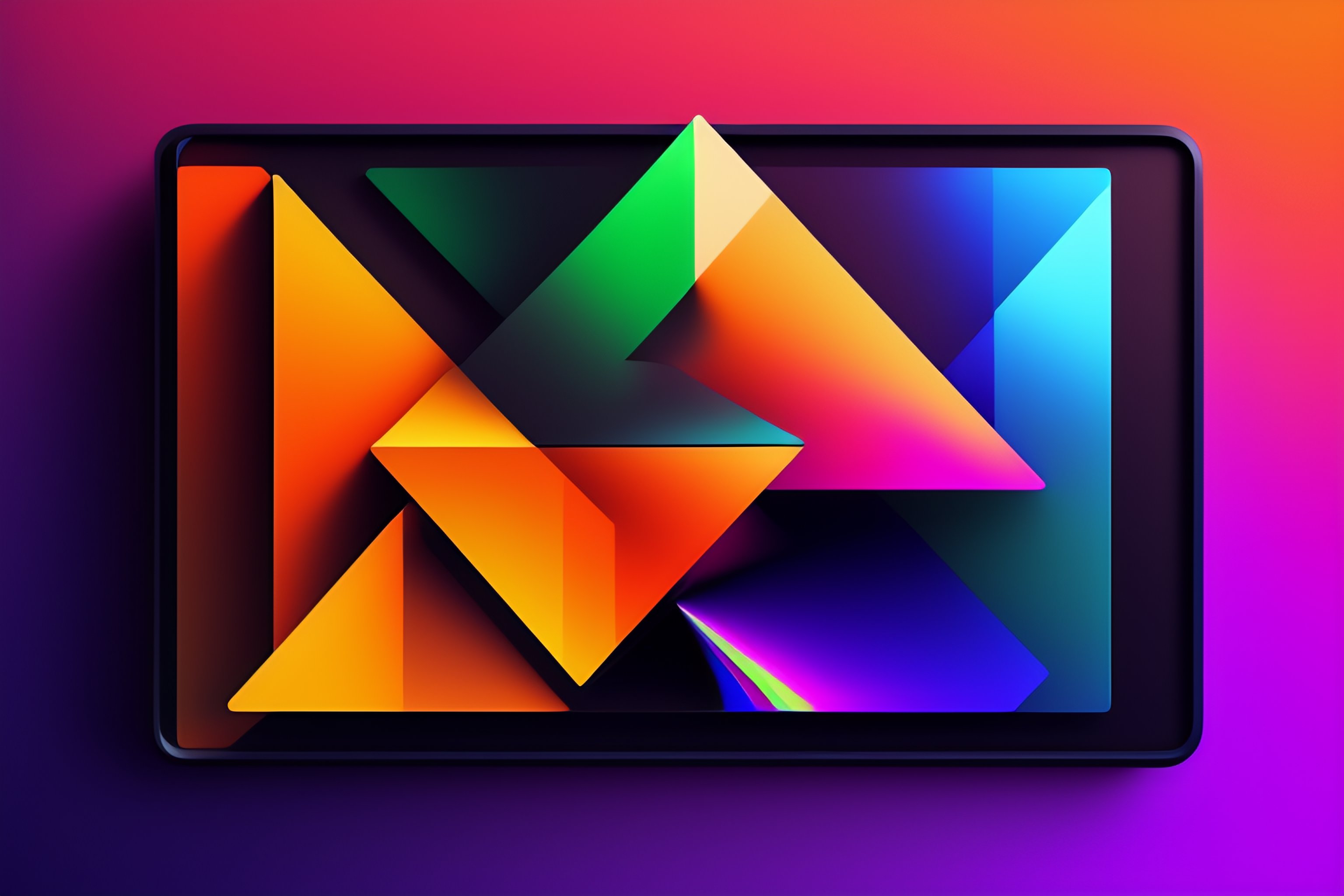 Dark computer desktop background material design rectangles triangles geometric abstract neon vector colored degraded gradient abstract hdr, uhd, 4k, 8k trending on artstation and deviantart