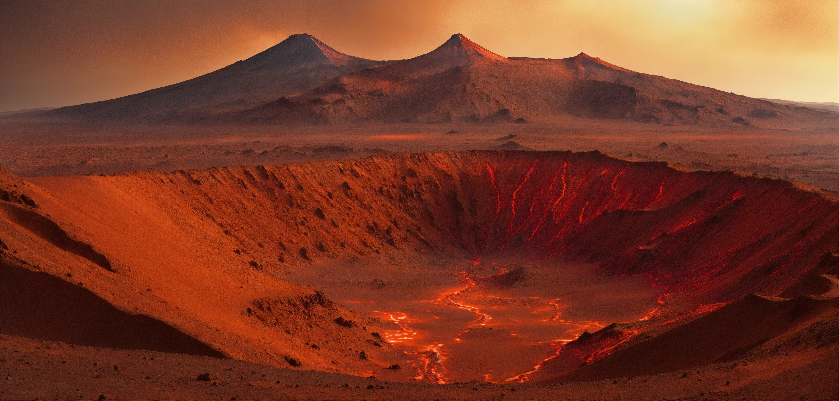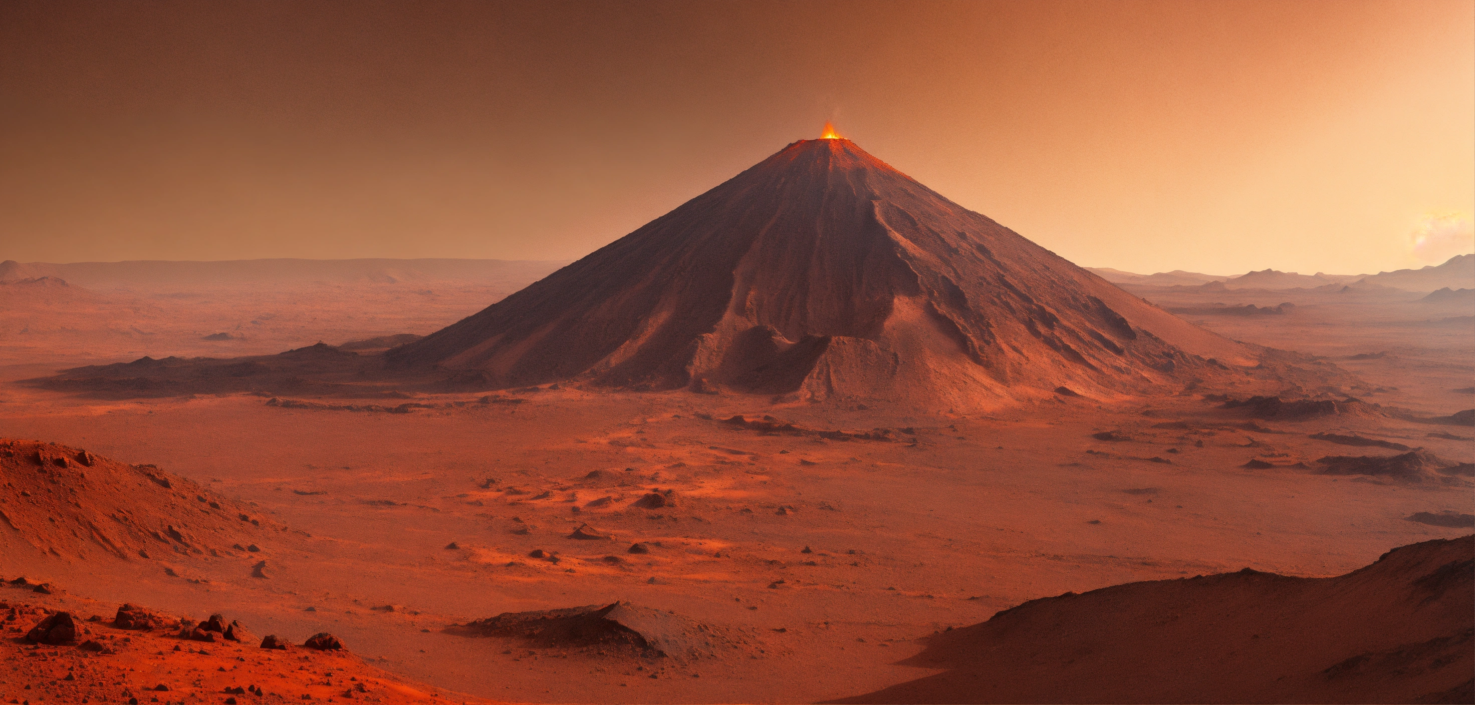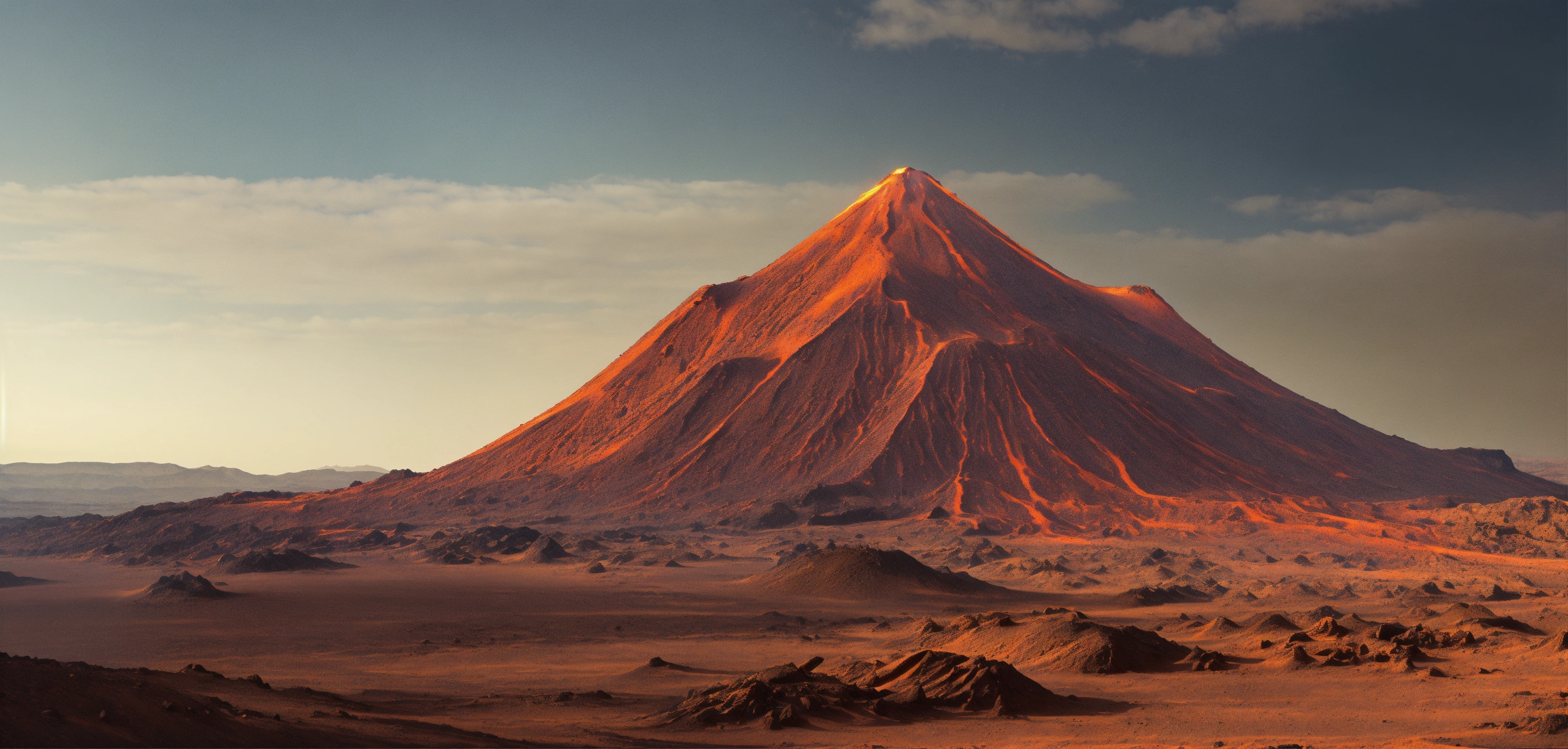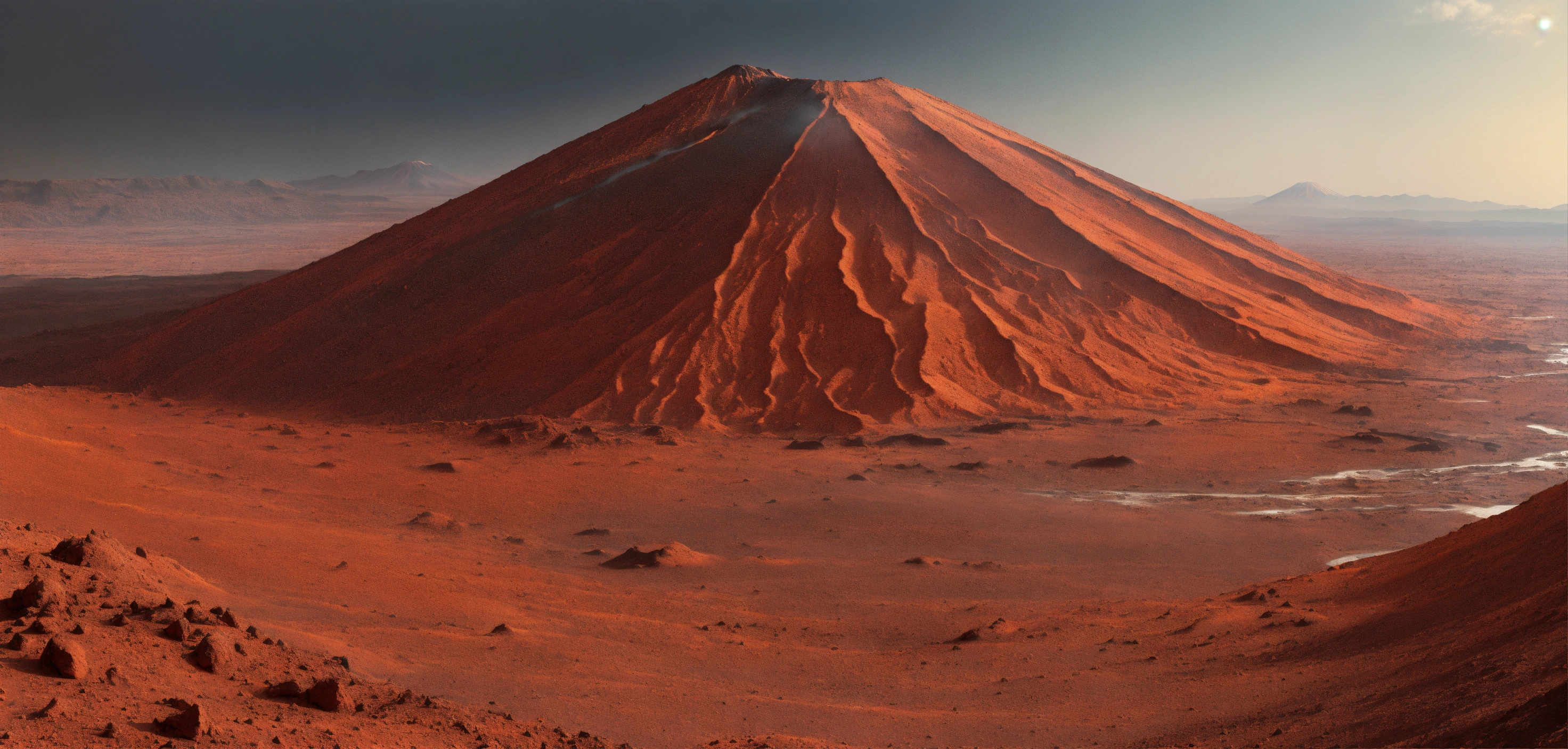 Volcanic mountain on mars full of rivers, renaissance, sculptural installations, minimalist sculptures.