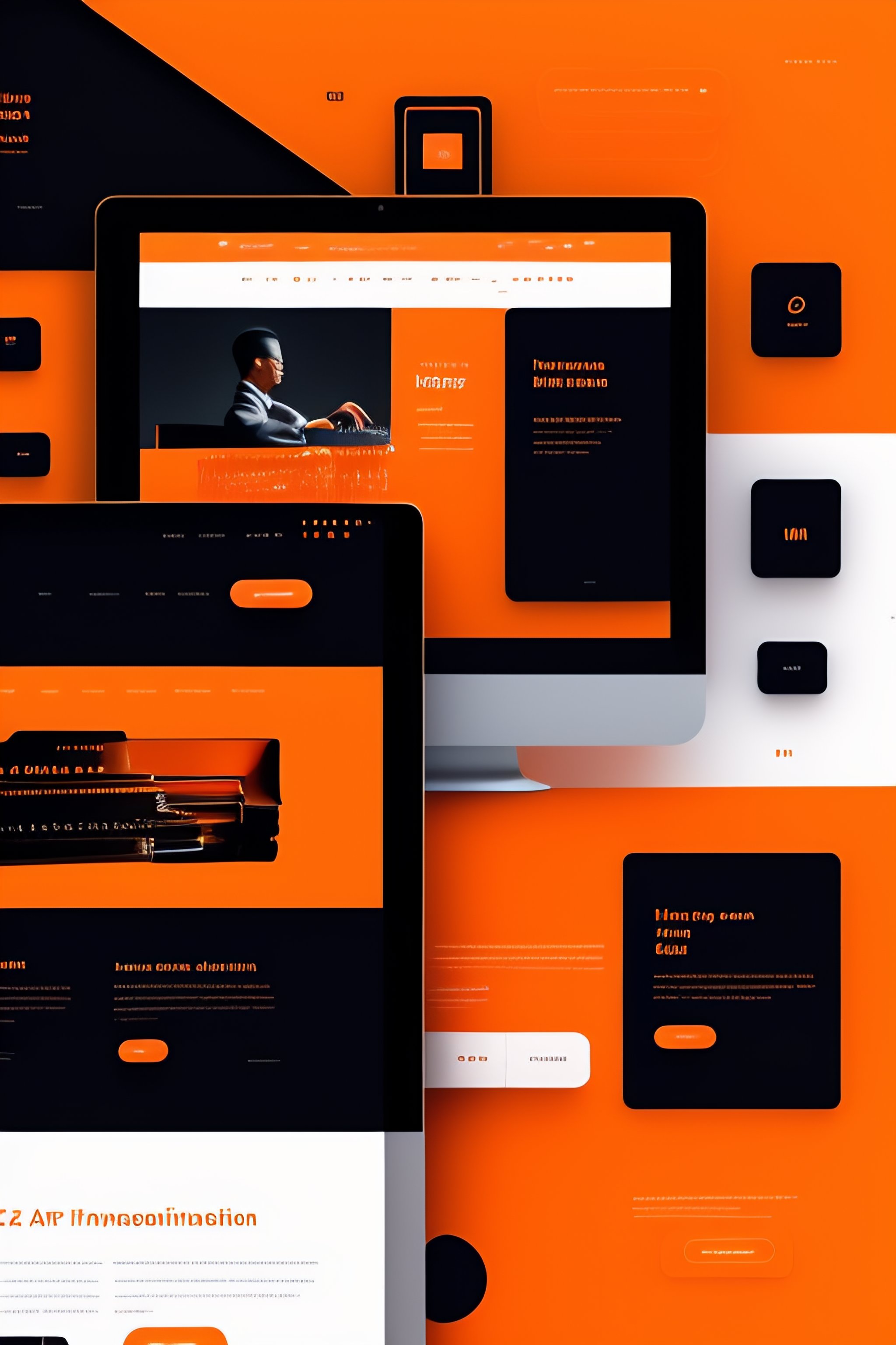Landing page for piano lessons, ui, ux, web design, white primary background, orange is the accents, black is the complementary color