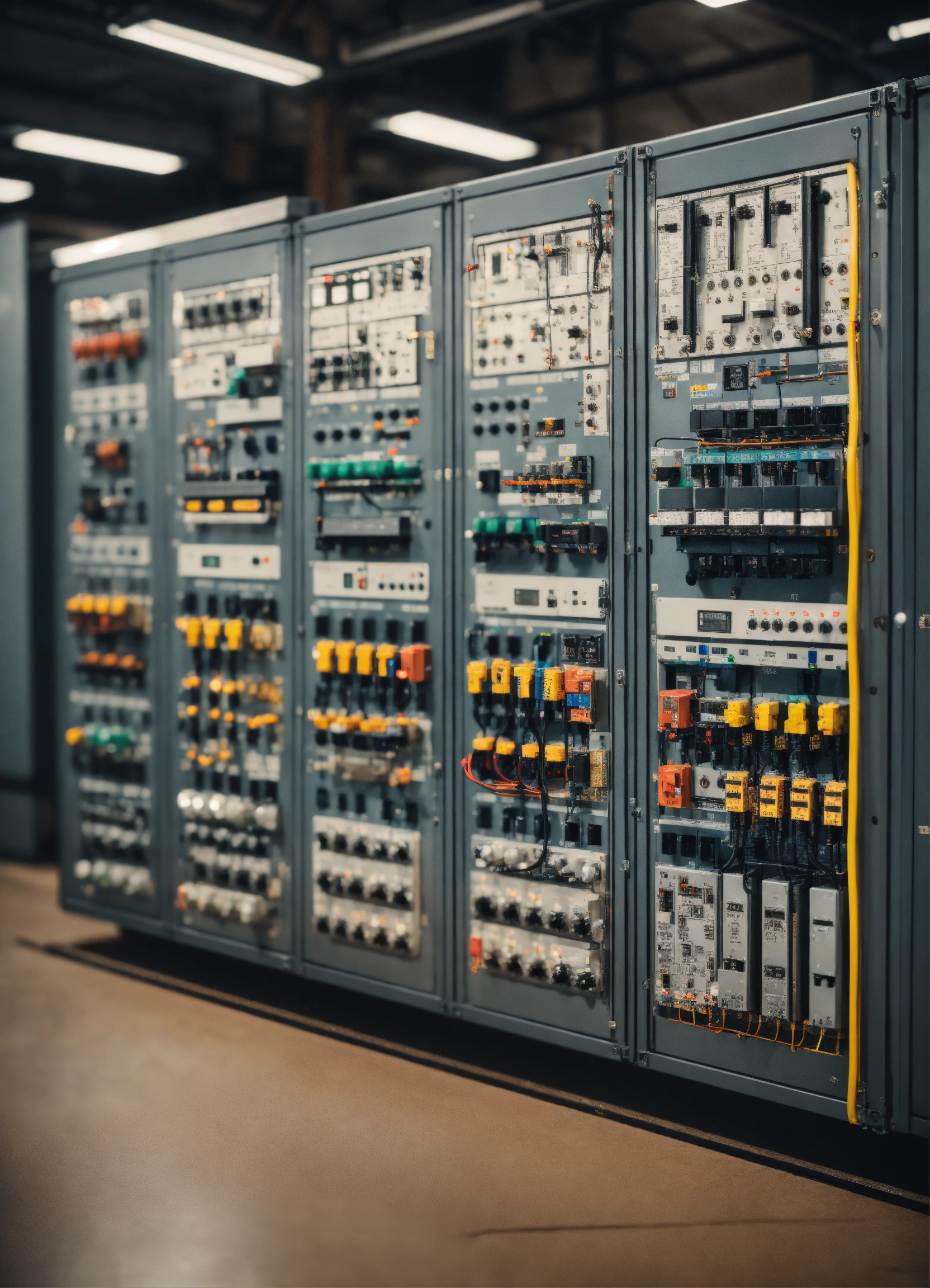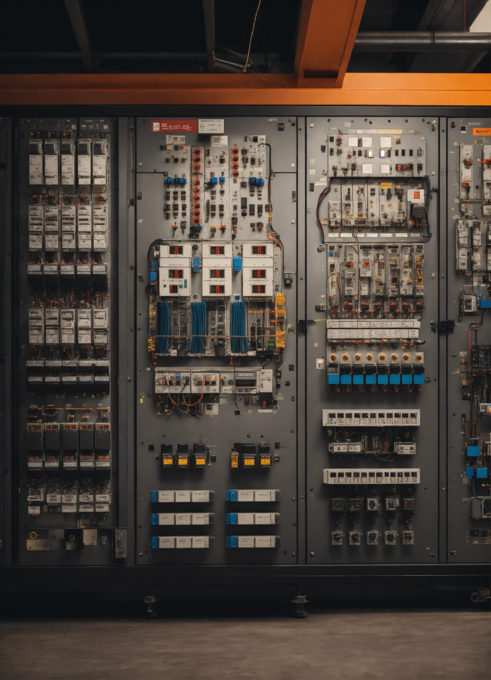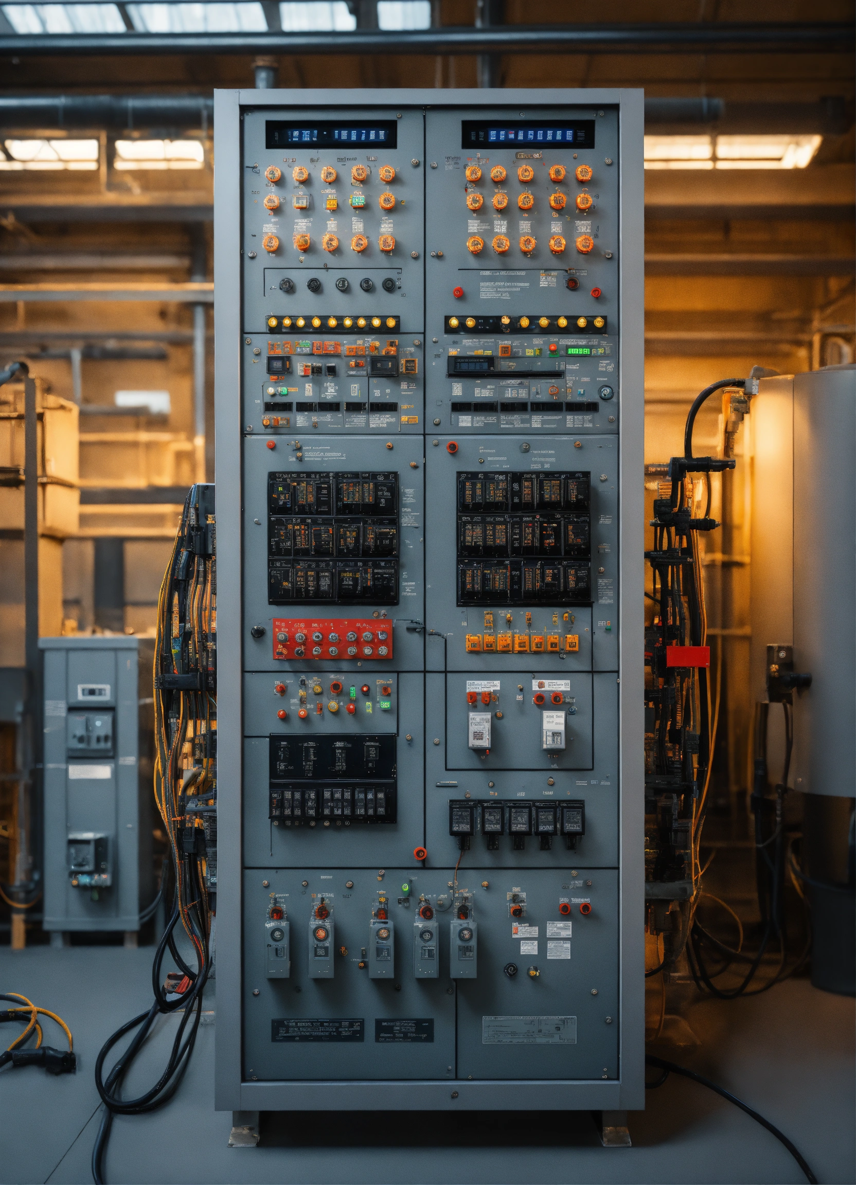 Industrial electrical control panel, best quality, full body portrait, real picture, intricate details, depth of field, canon eos 5d mark iv, raw photo, 8k uhd, film grain, unreal engine 5, ray tracing