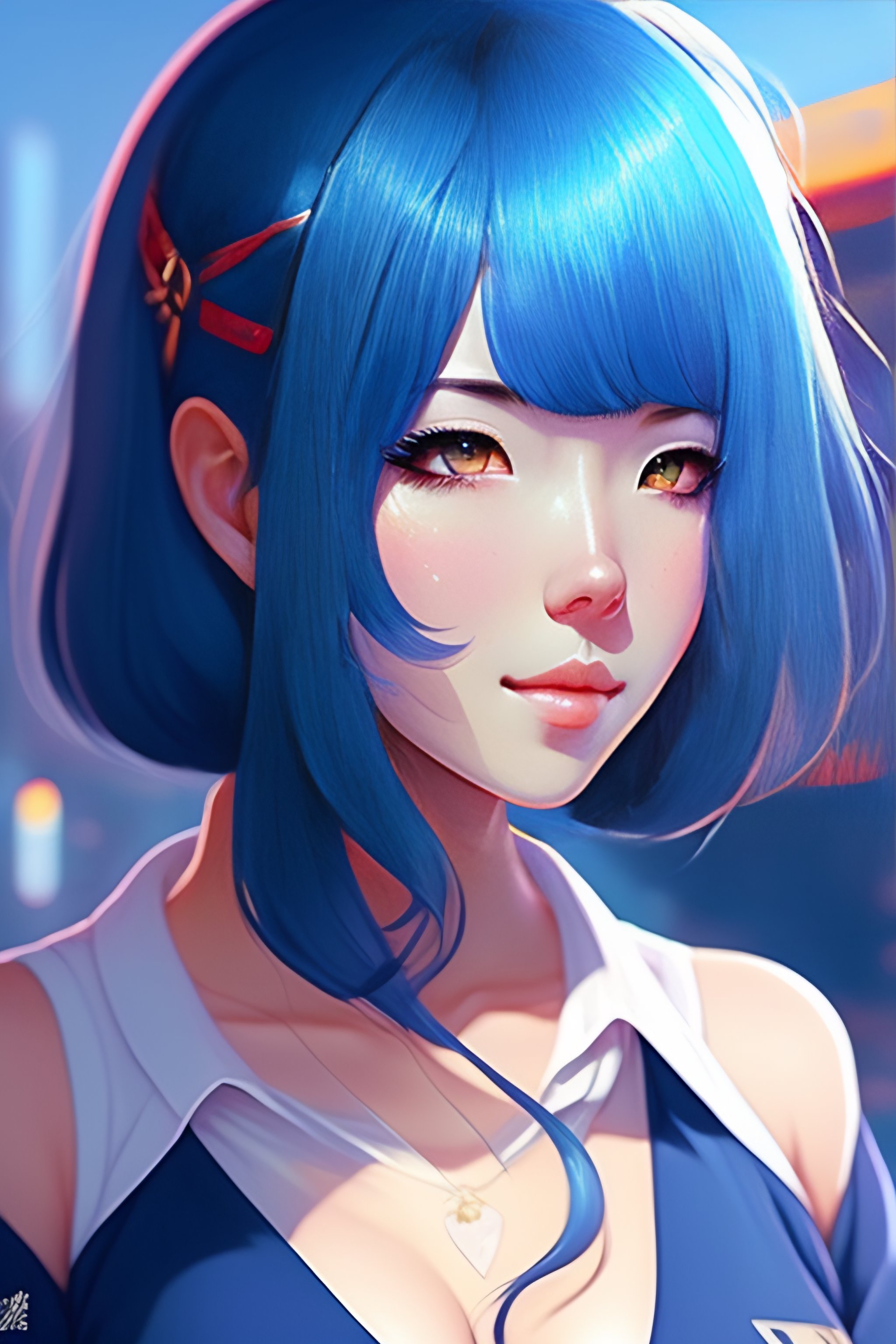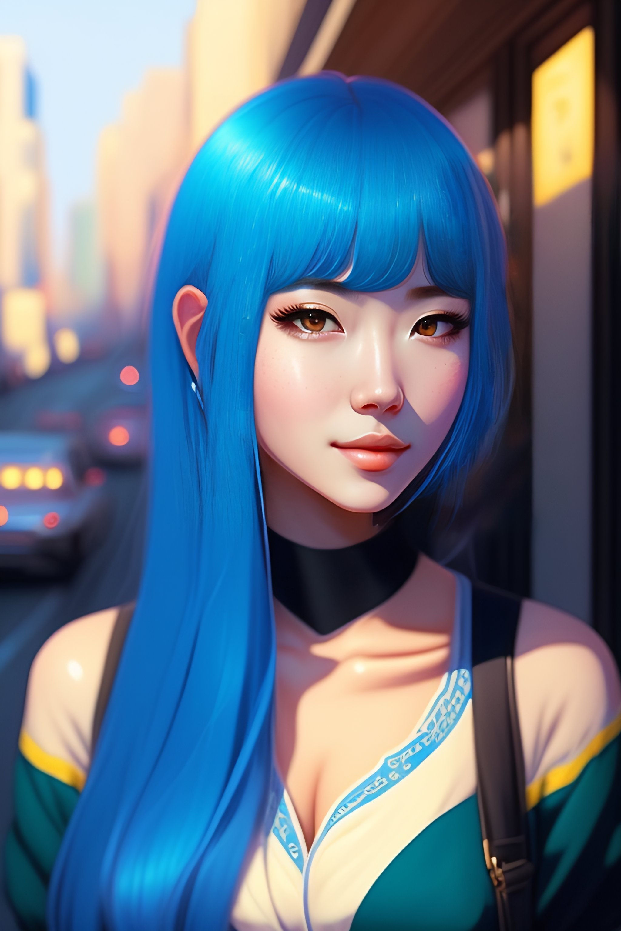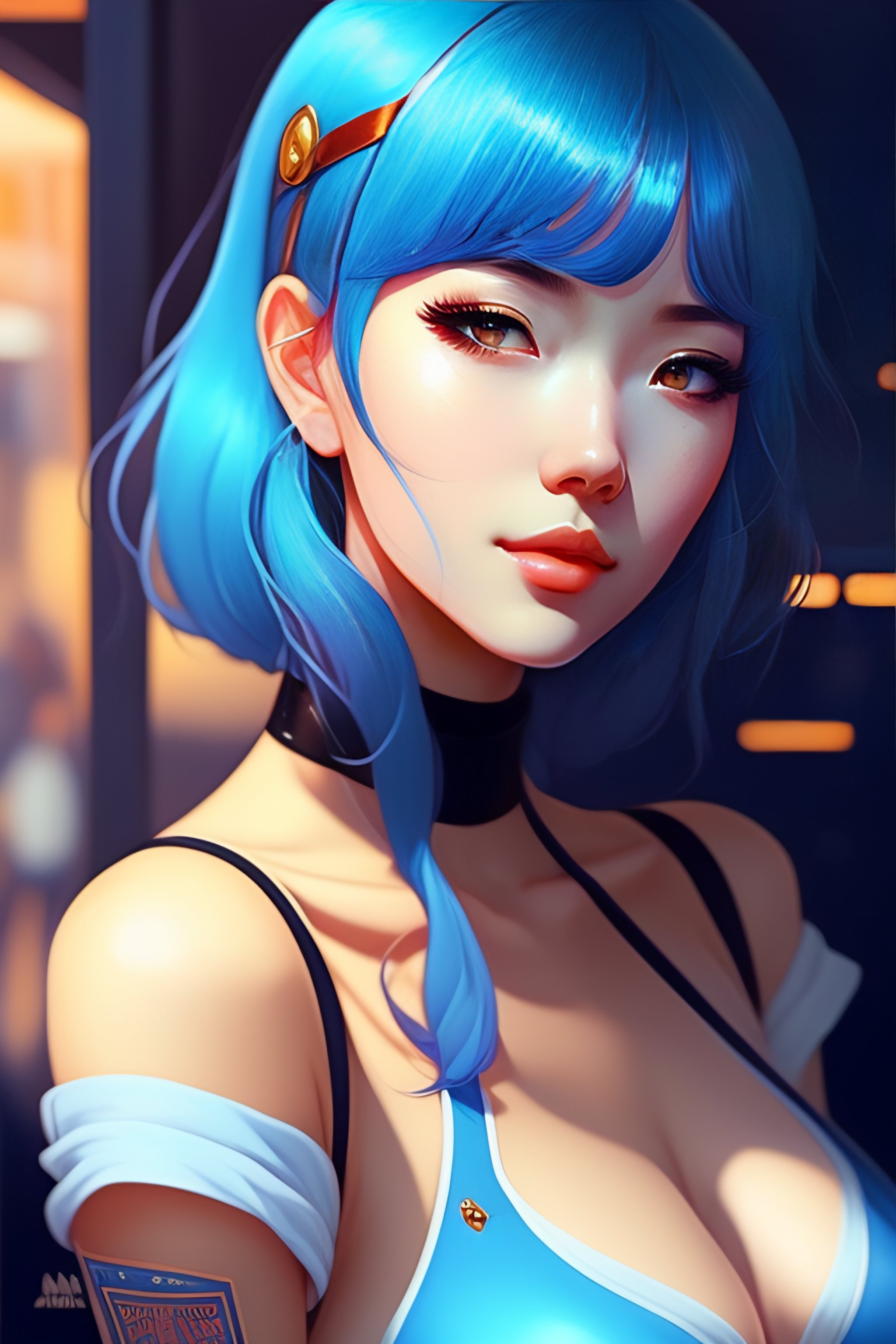 Cute woman with blue hair | | very very anime!!!, fine - face, symmetry face, jisoo, audrey plaza, fine details. anime. realistic shaded lighting poster by ilya kuvshinov katsuhiro otomo, trending on pixiv, magali villeneuve, artgerm, jeremy lipkin and michael garmash and rob rey