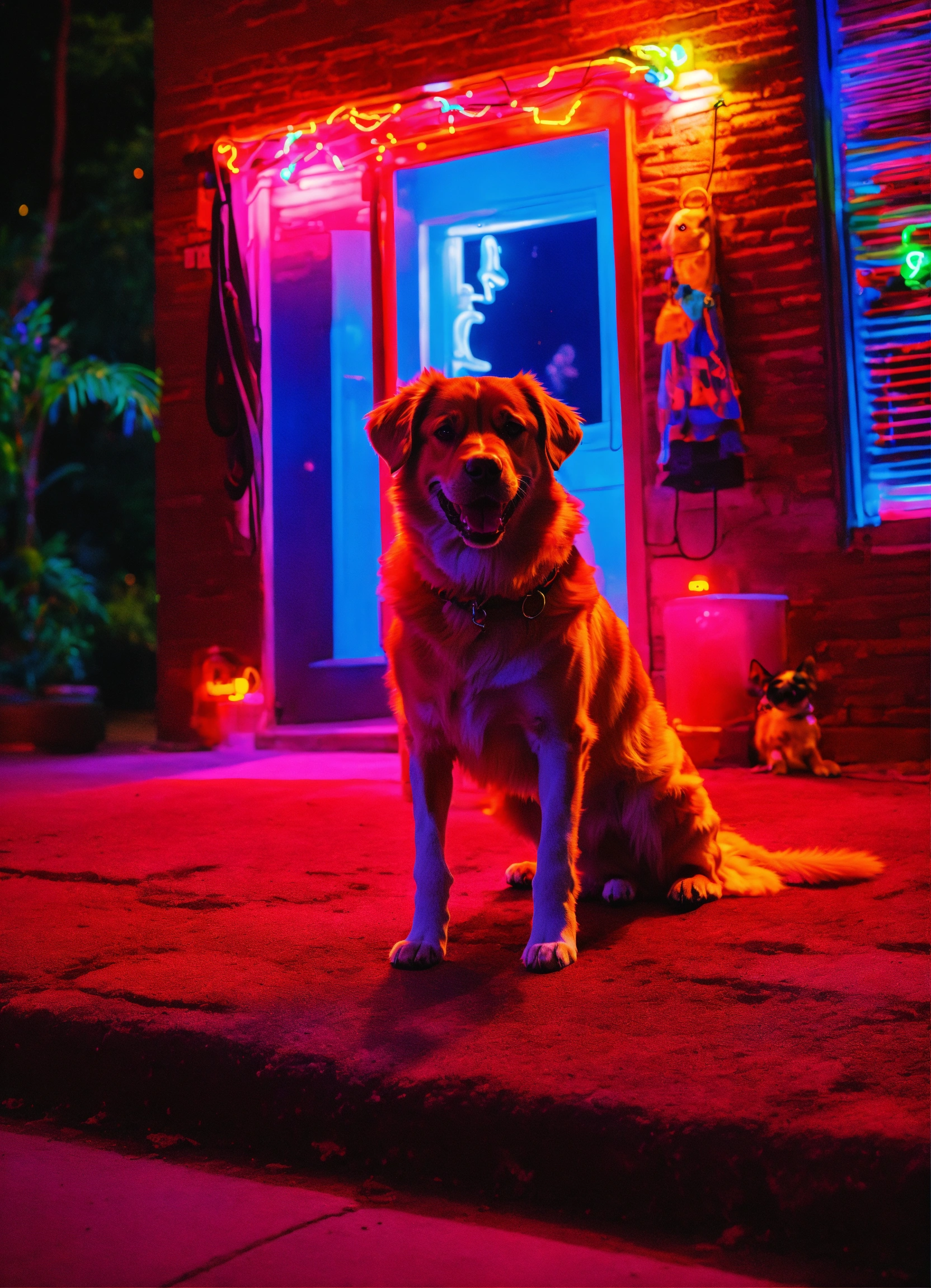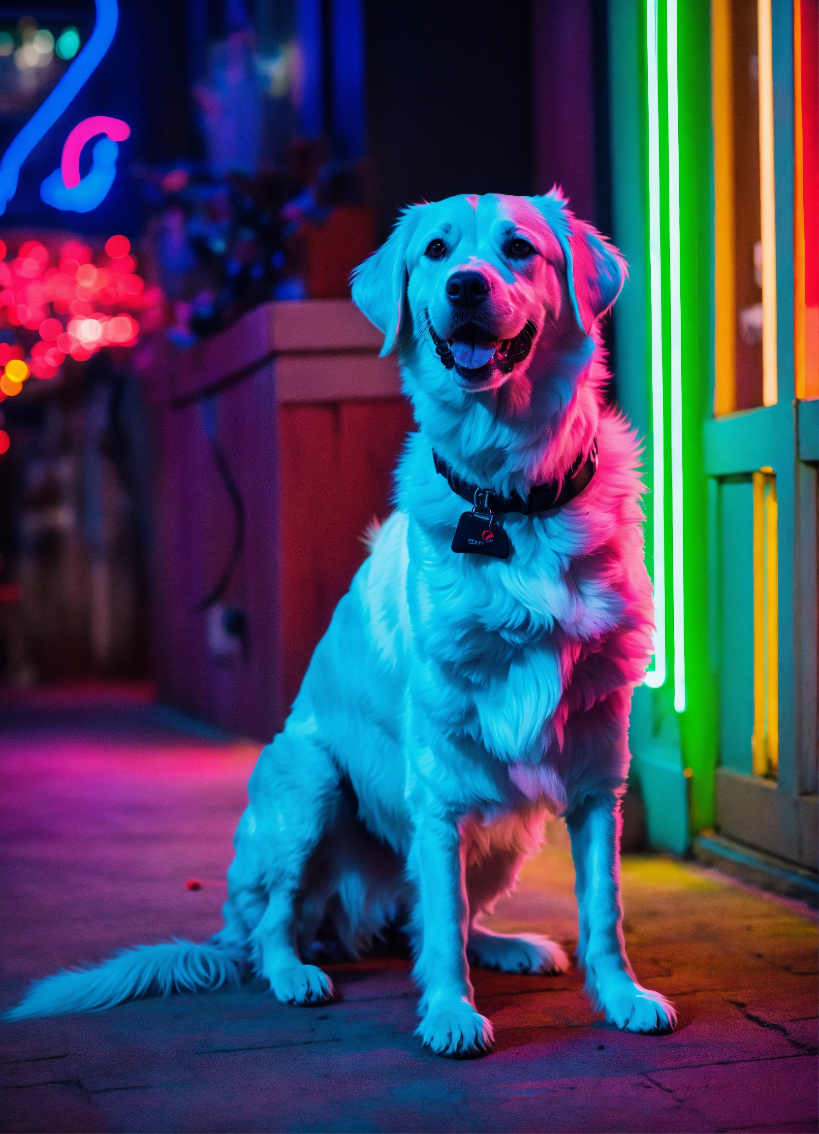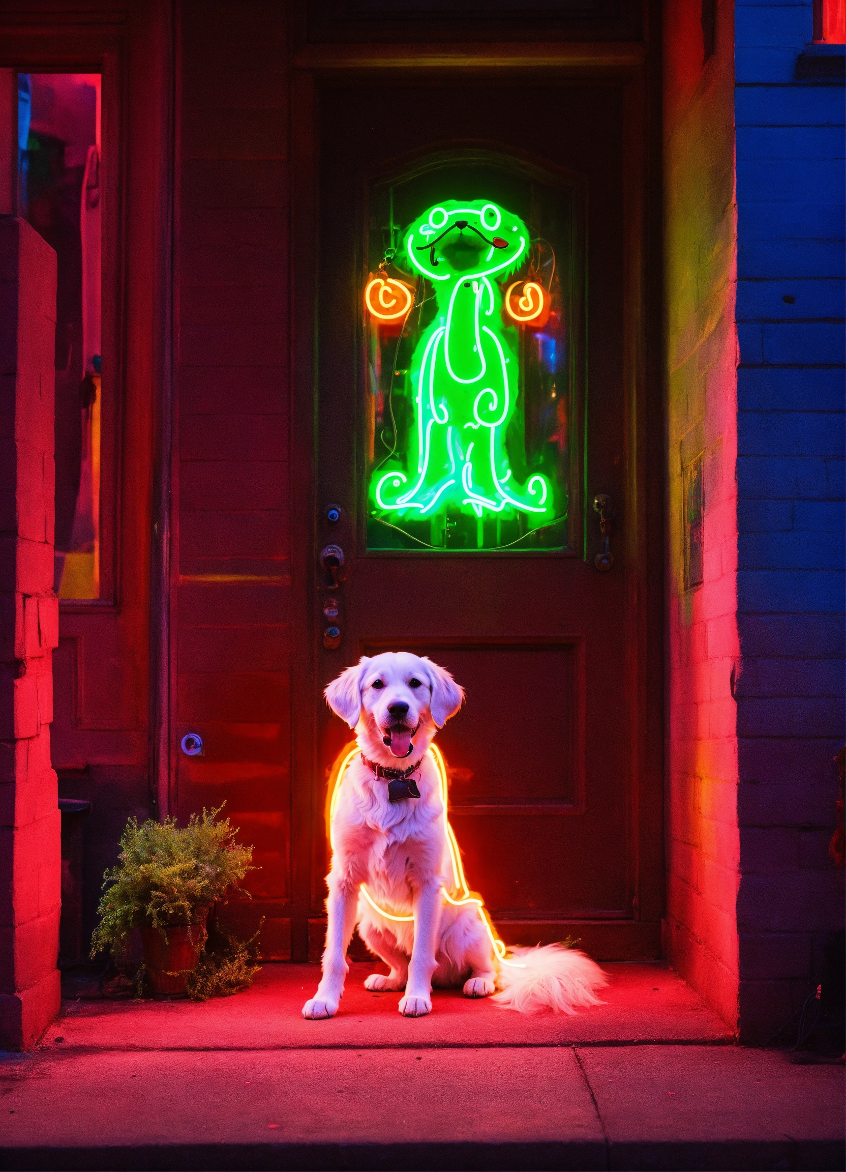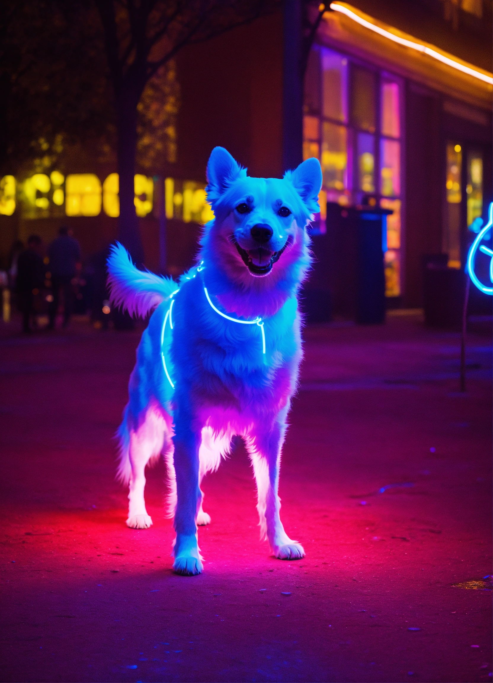 Neon dog with a happy ghost