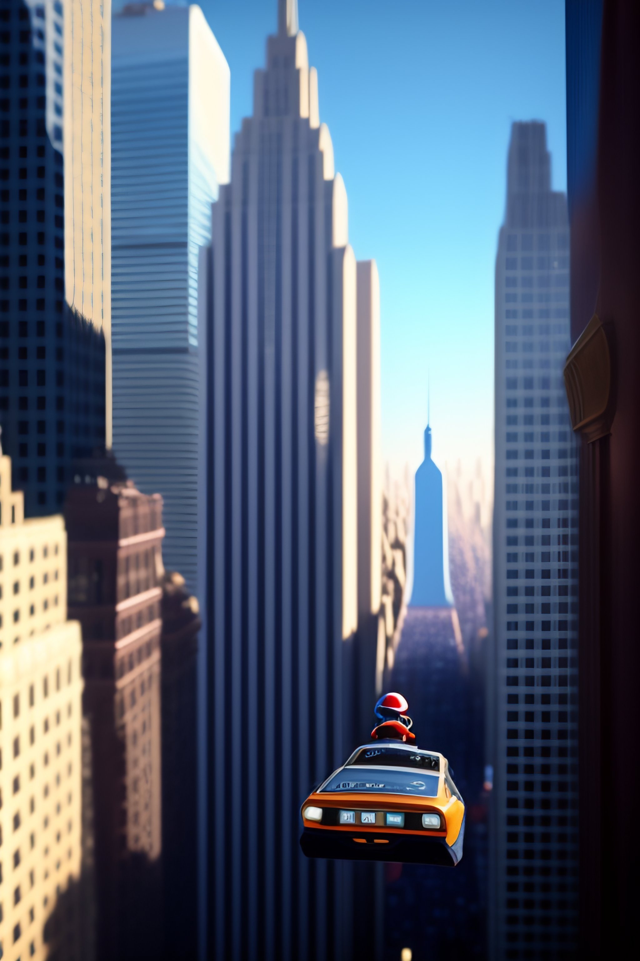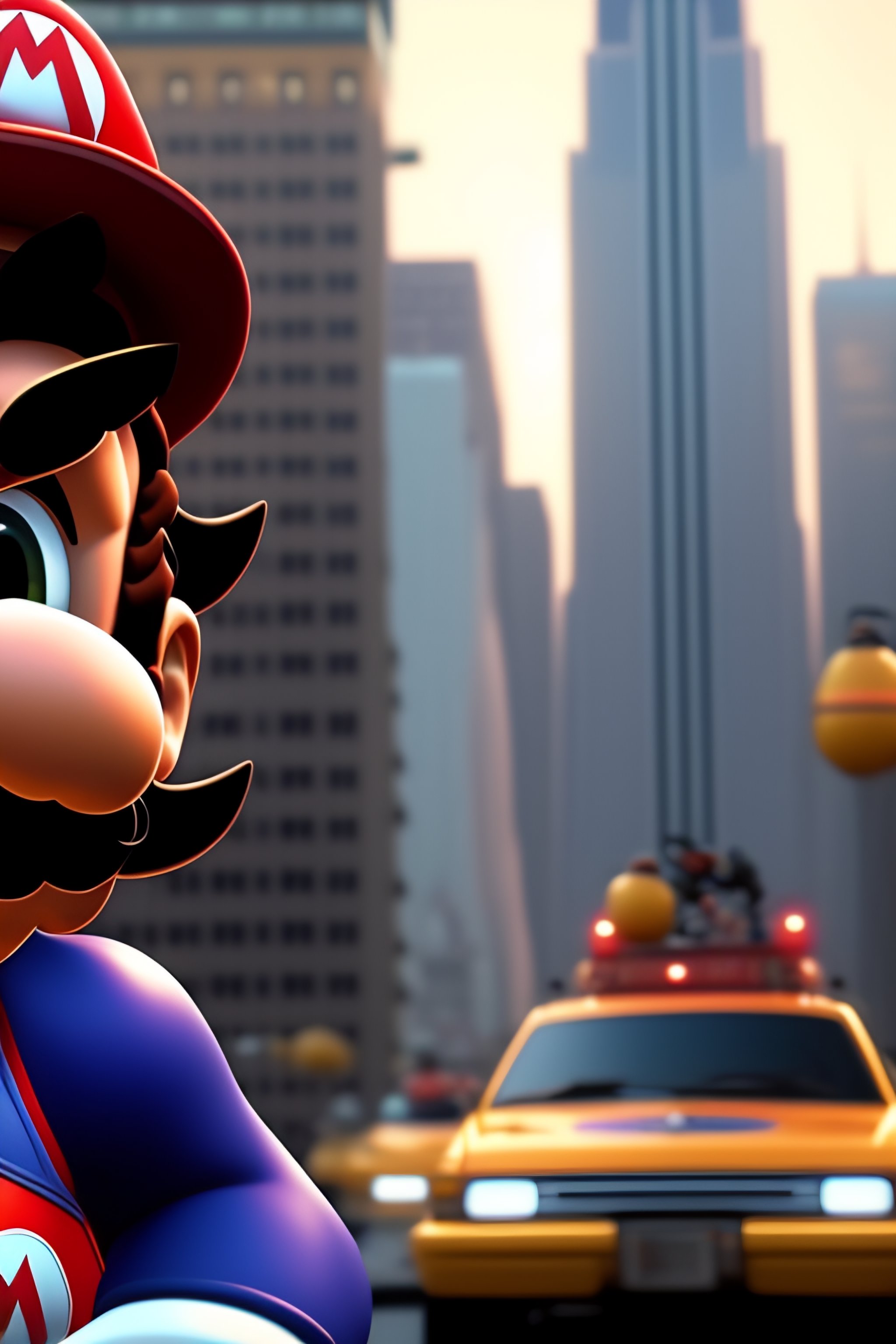 A cinematic scene of mario falling off a skyscraper in new york