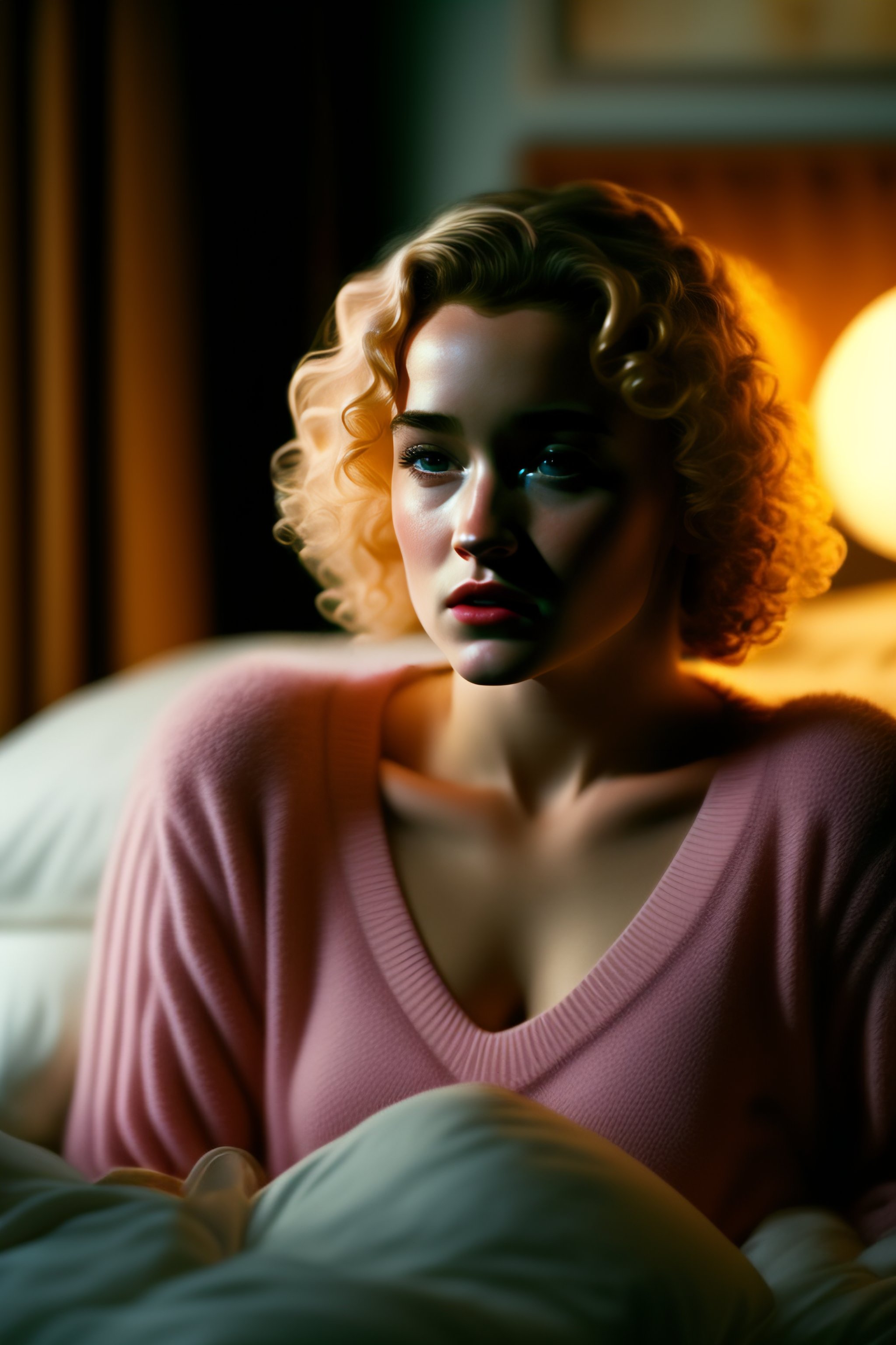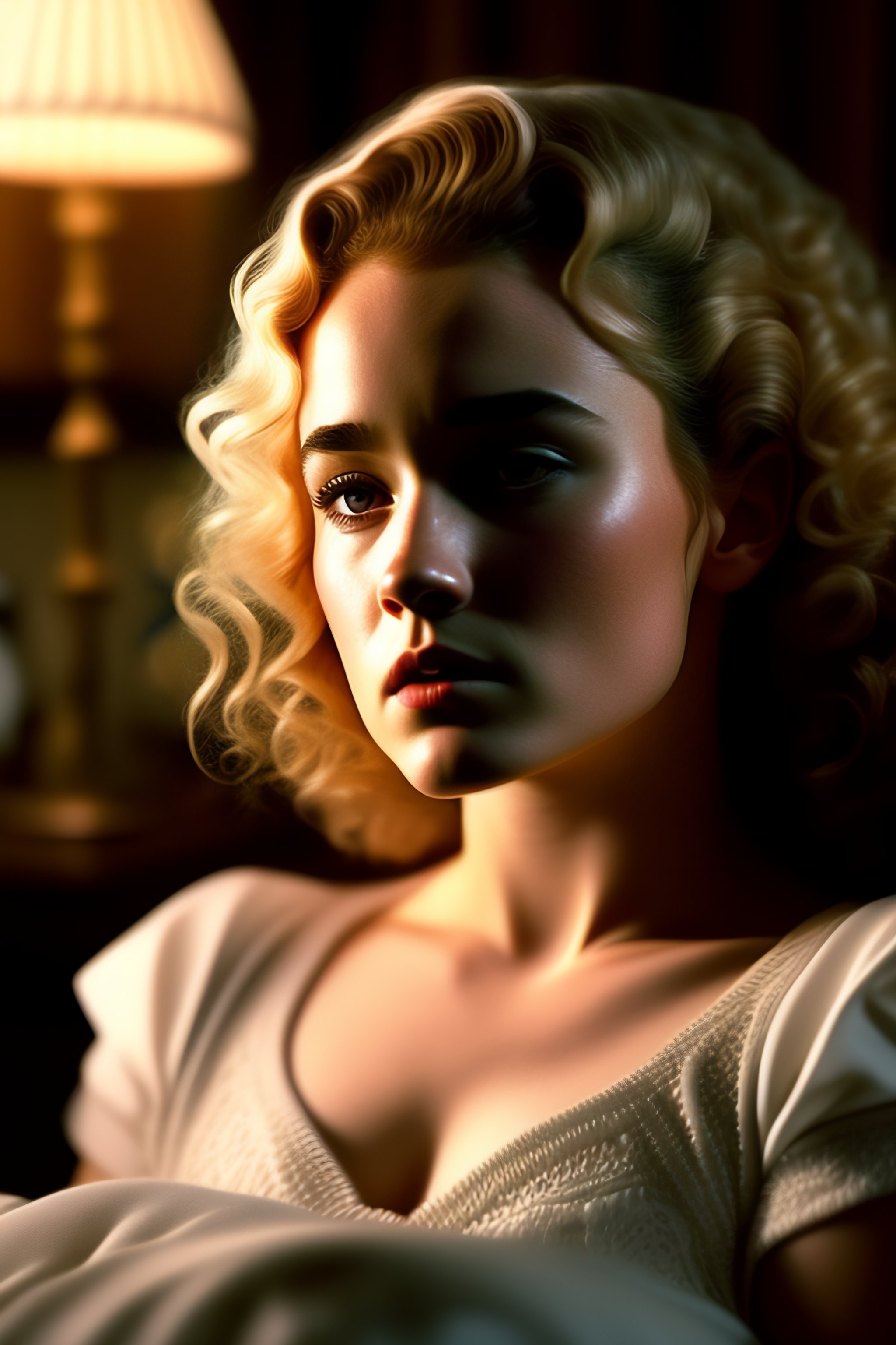 Amazing beautiful julia garner with mouth wide open in the bedroom room, film still from the movie directed by denis villeneuve, wide lens, realistic, high detail