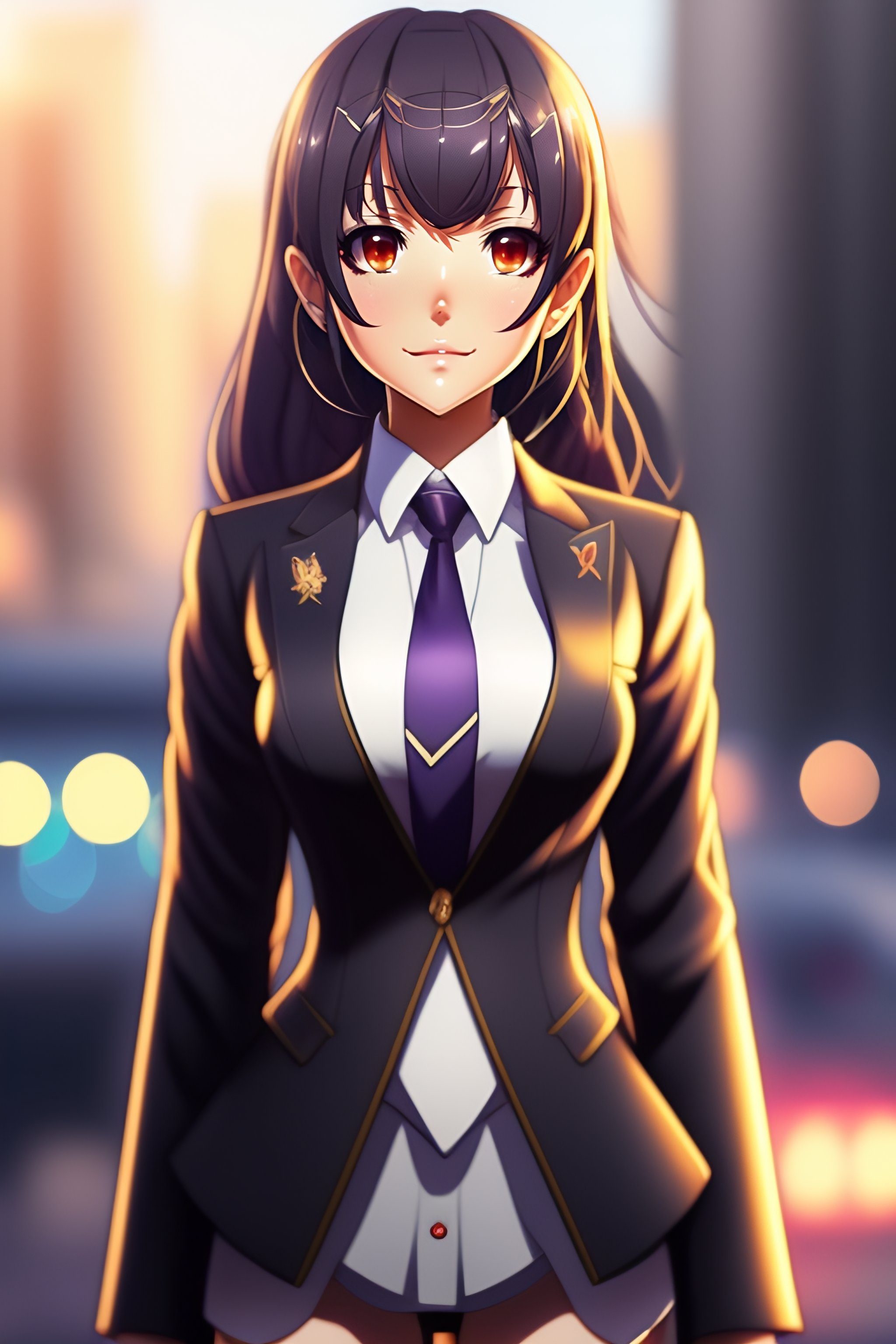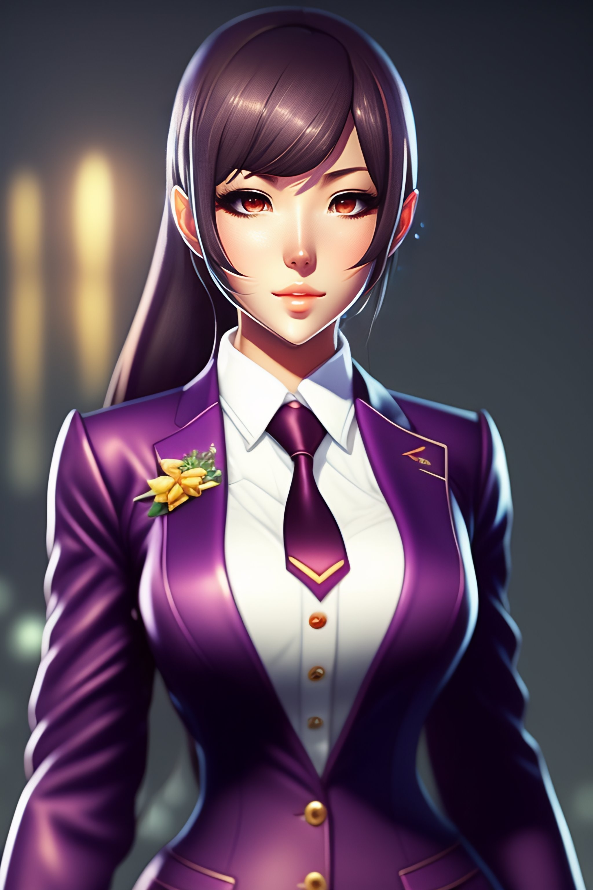 High resolution artwork of anime girl suit and tie
