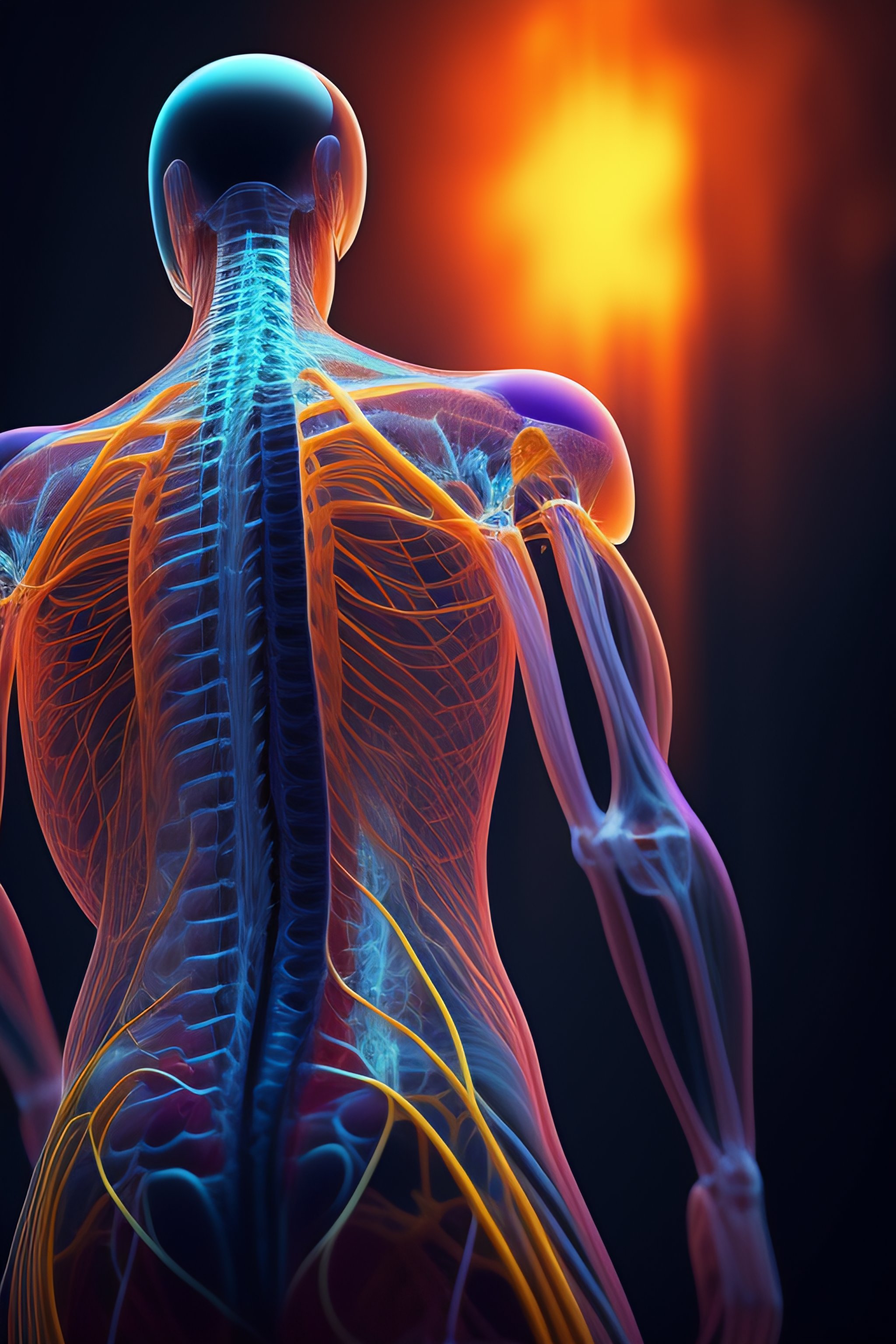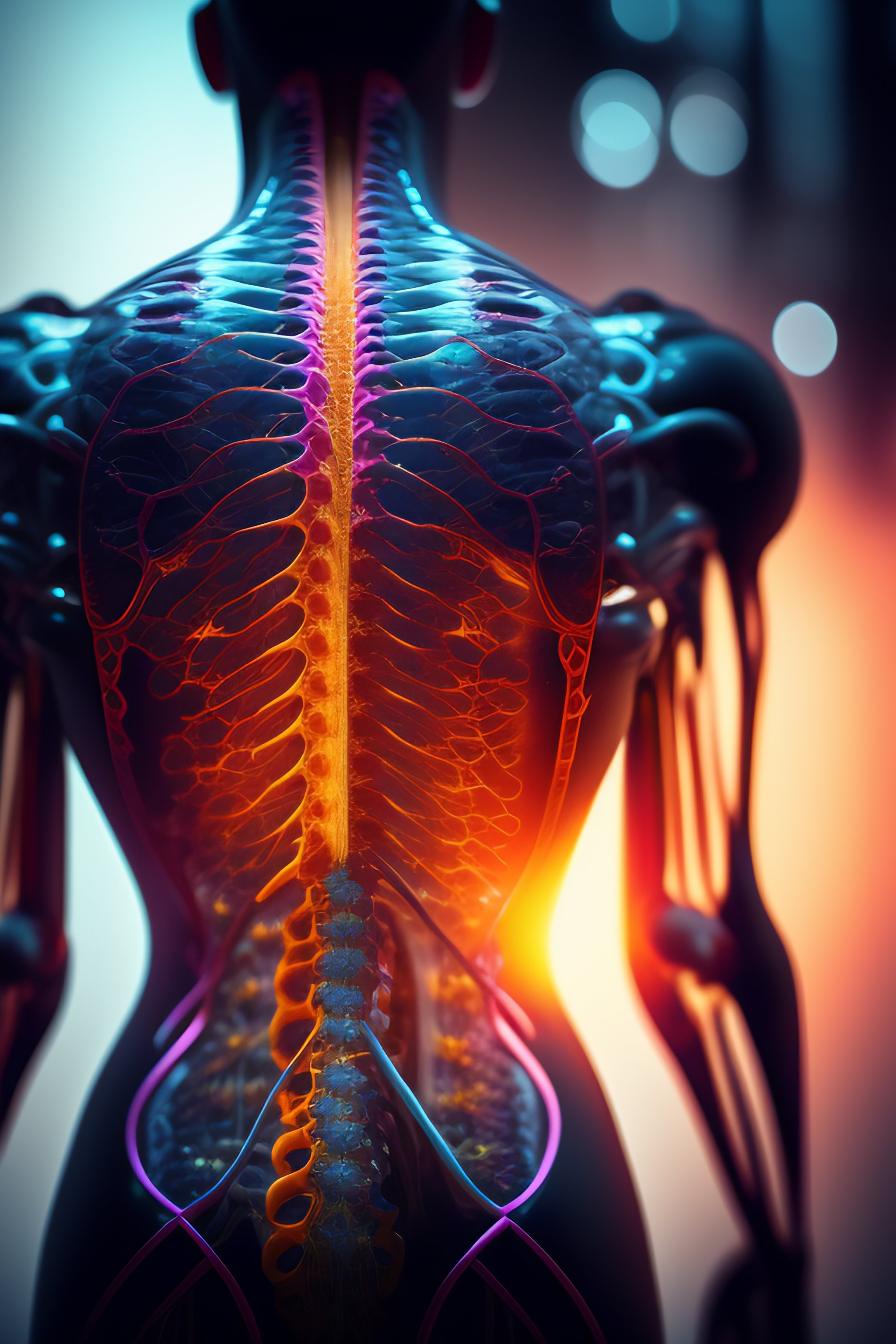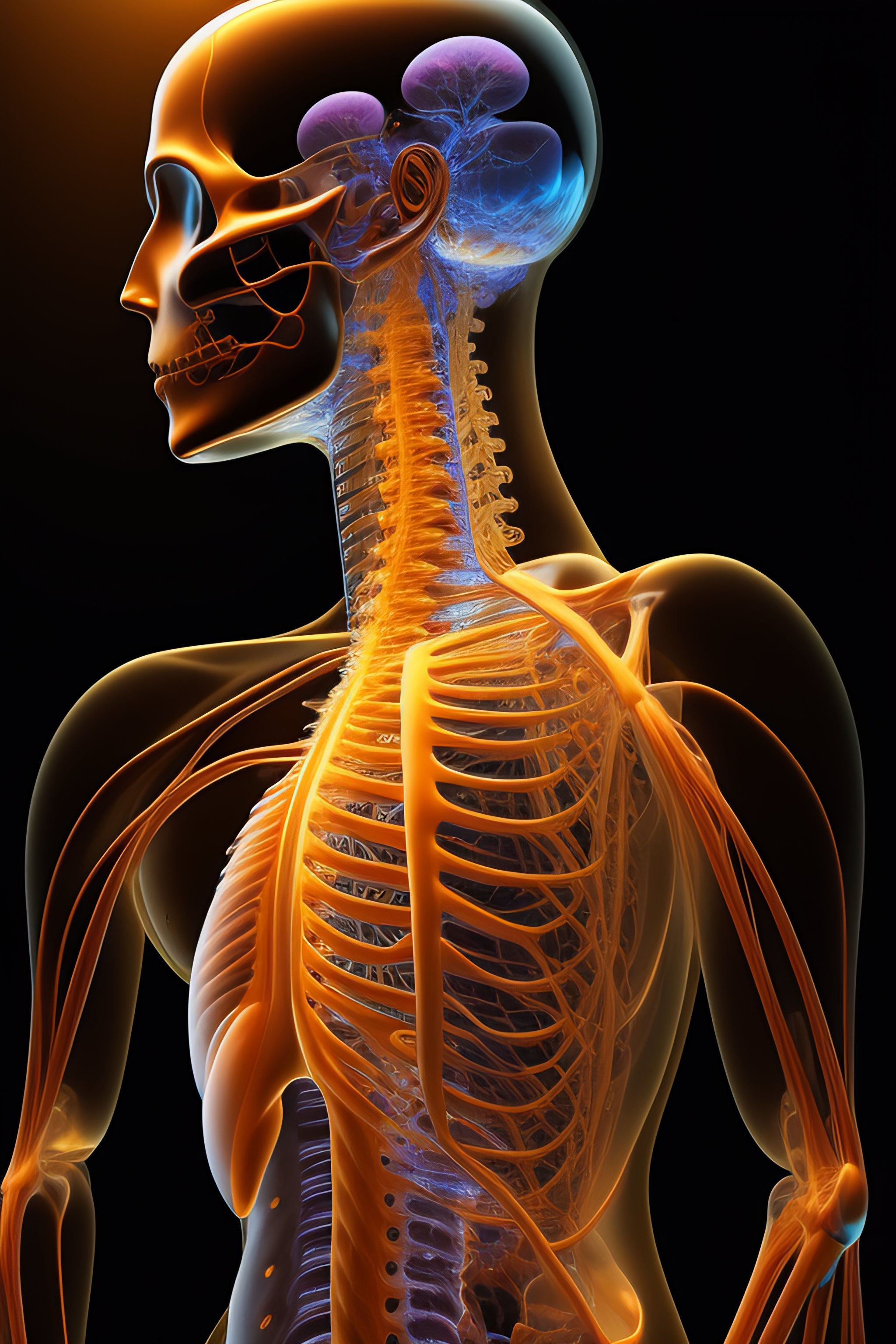 Human nervous system anatomy fused to technology, 4k, high definition, high quality, futuristic, realistic, night