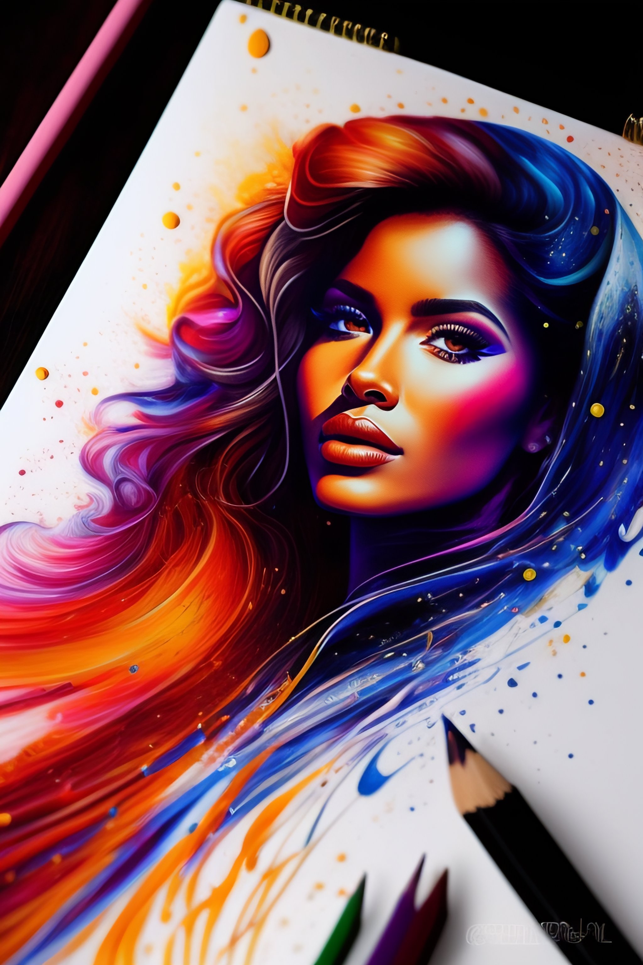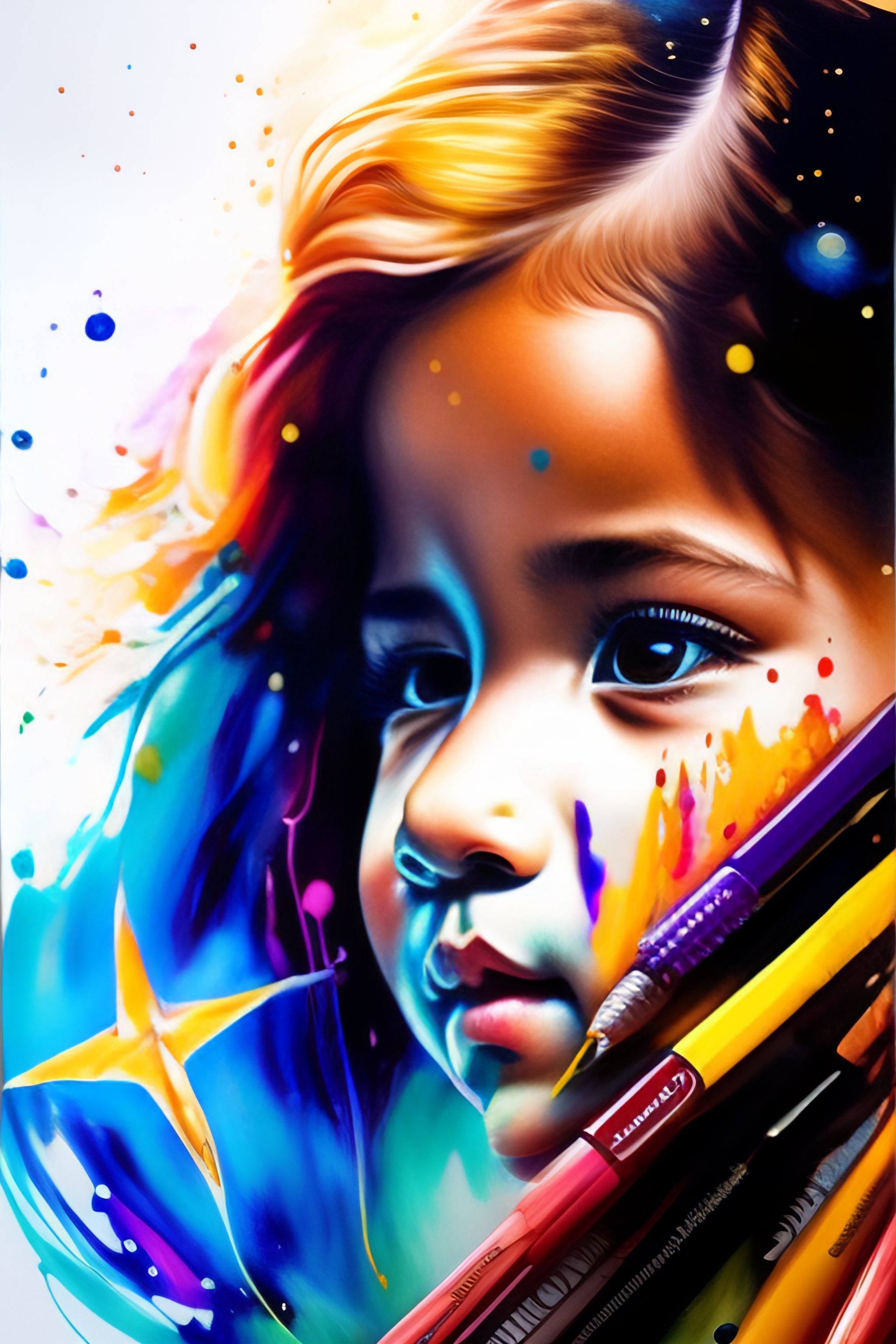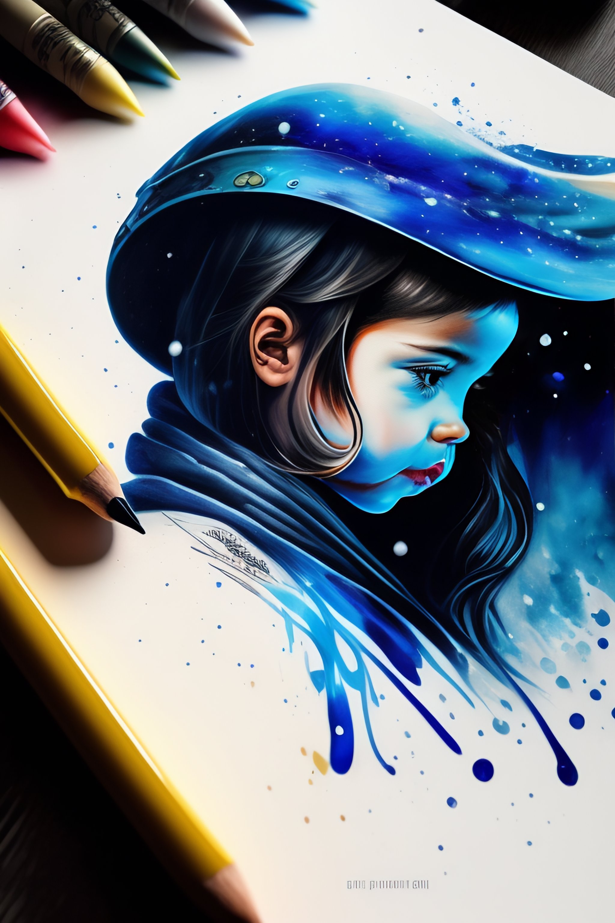 Scribble art with pens and pencils next to the paper and paints splashing on the paper star wars new character