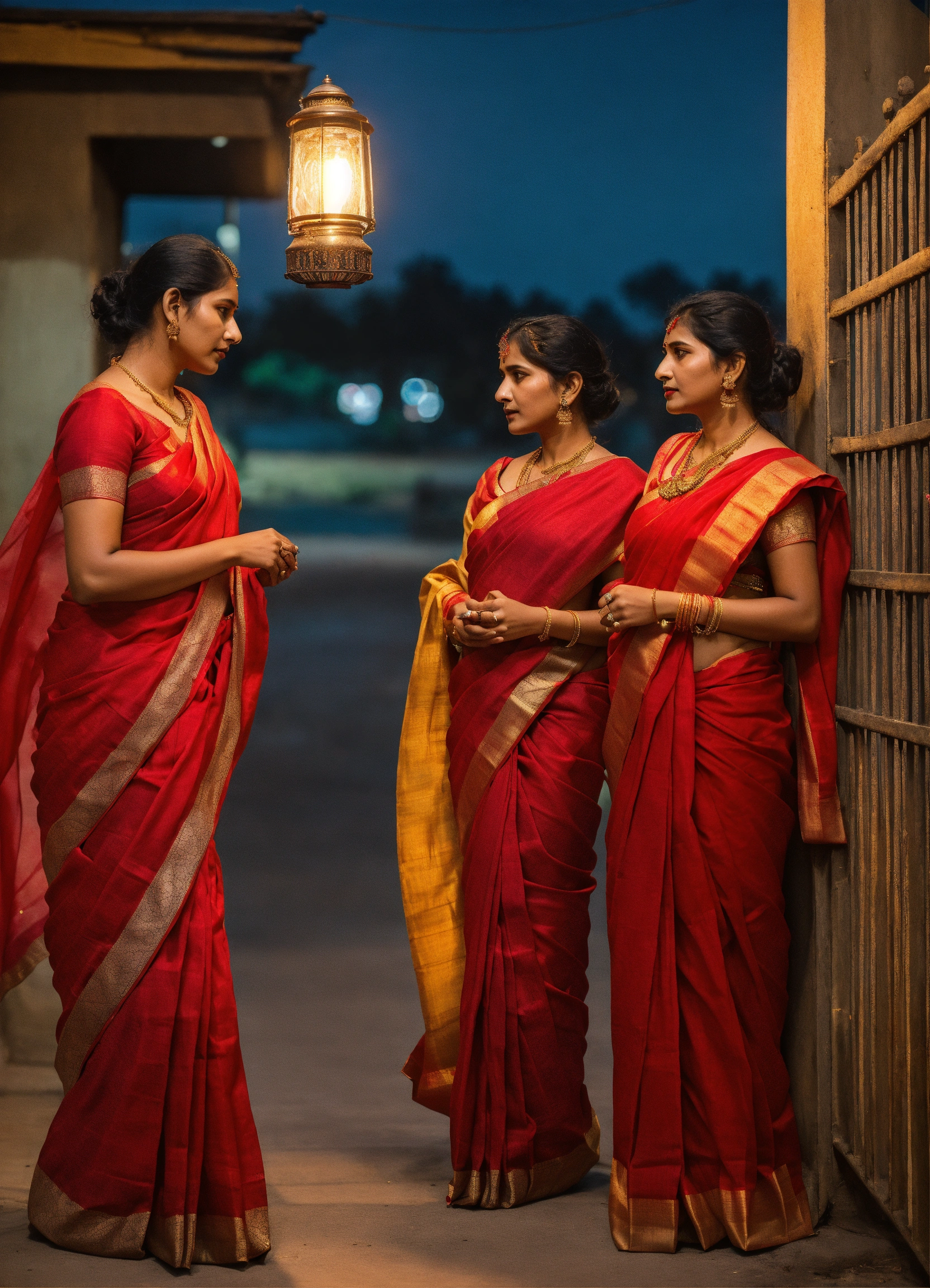 Three woman, dressed in a red cotton silk saree, who was looking impatiently at the gate with a lamp in her hand, asked those nearby.
