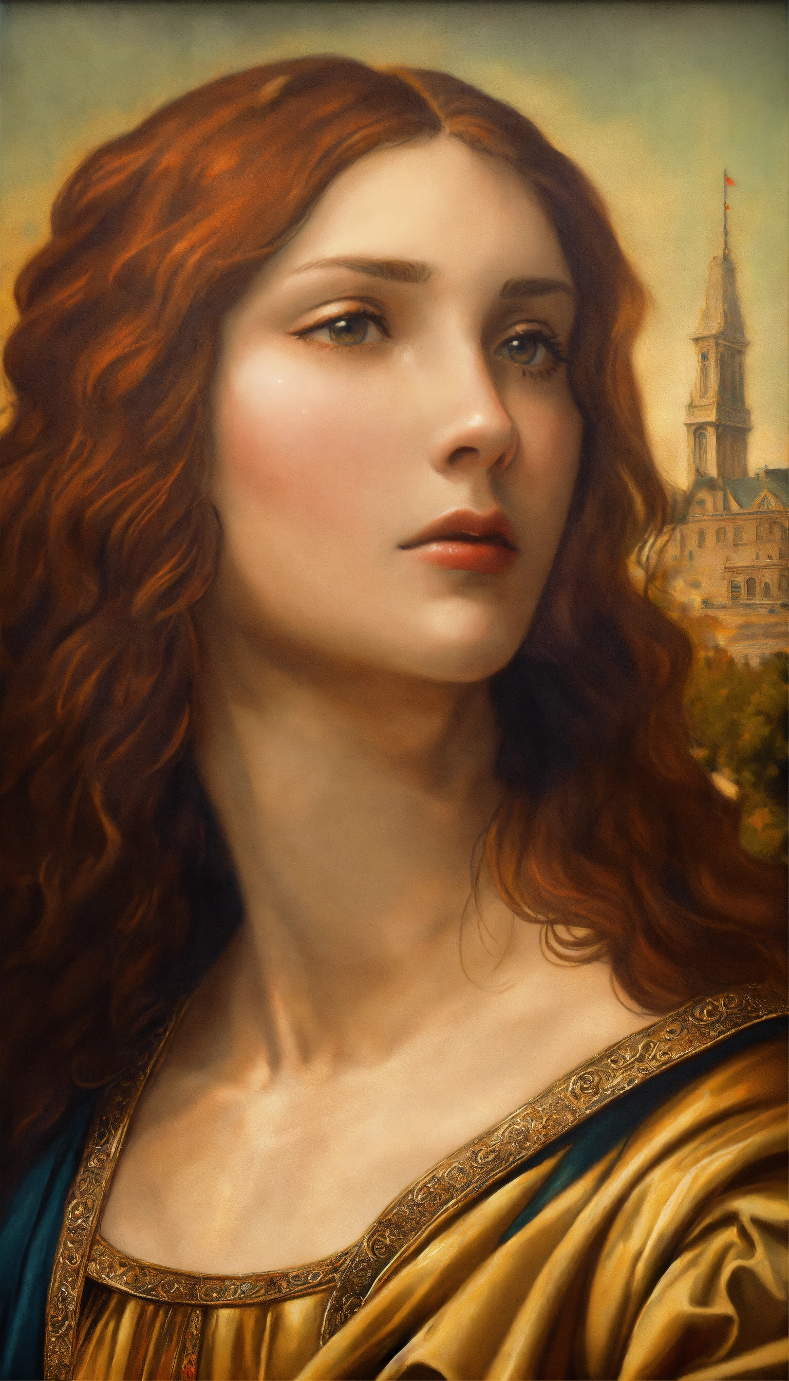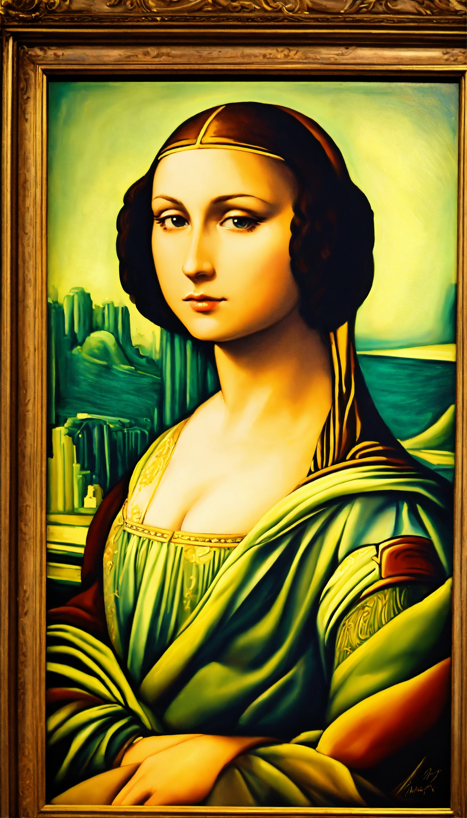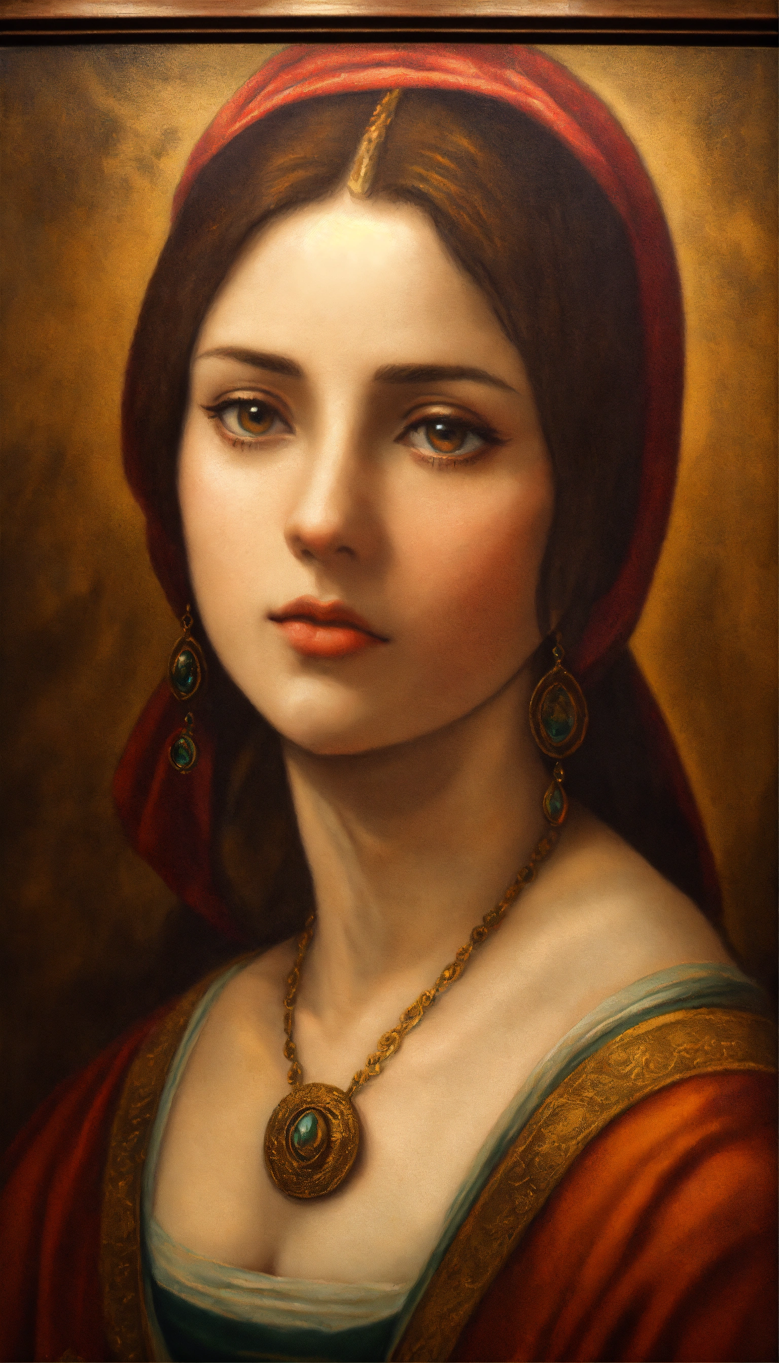 A close up of a painting of a woman, a fine art painting, inspired by mona moore, renaissance, in - frame. photorealistic, pixar and da vinci, hanging in the louvre, in style of mike savad”
