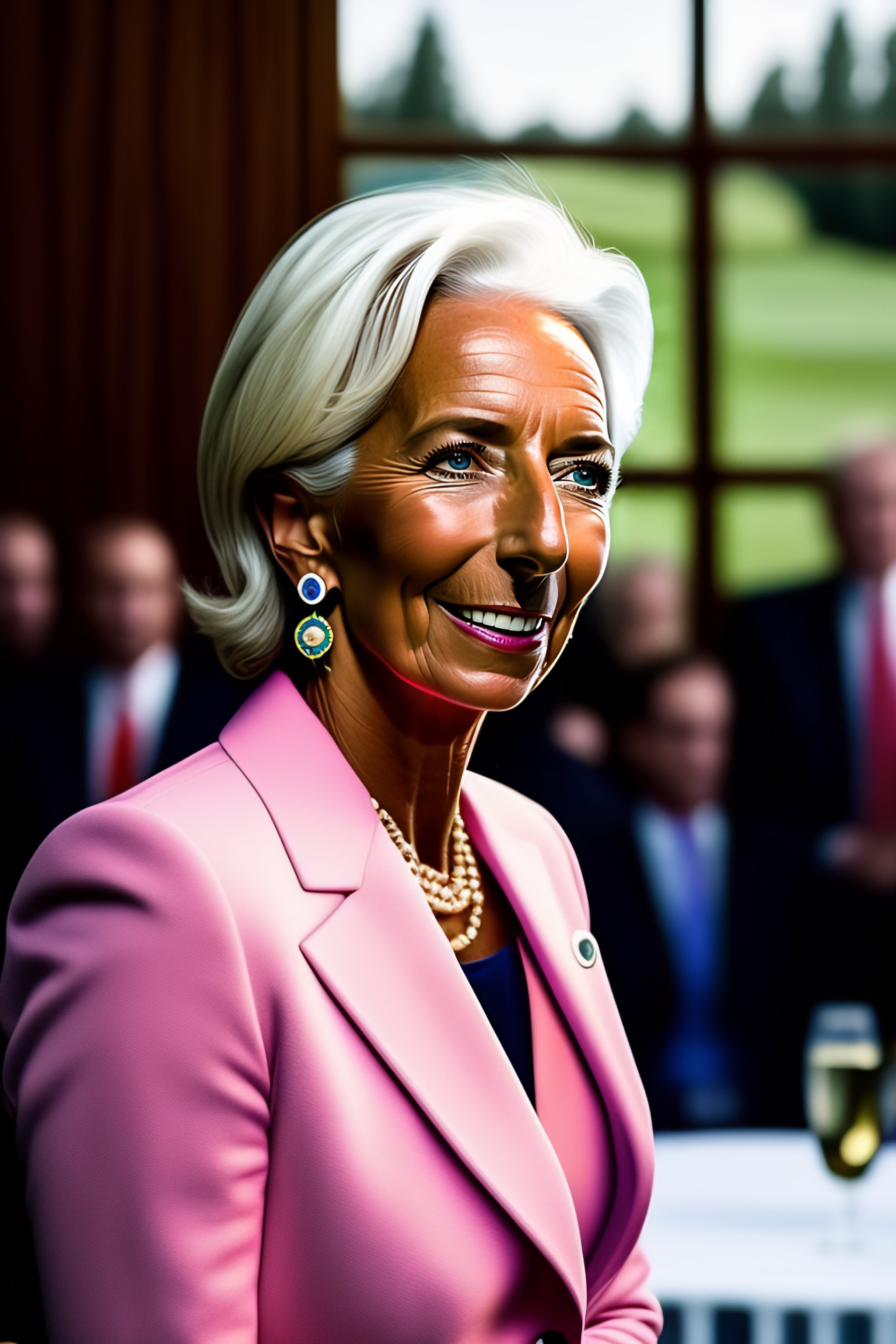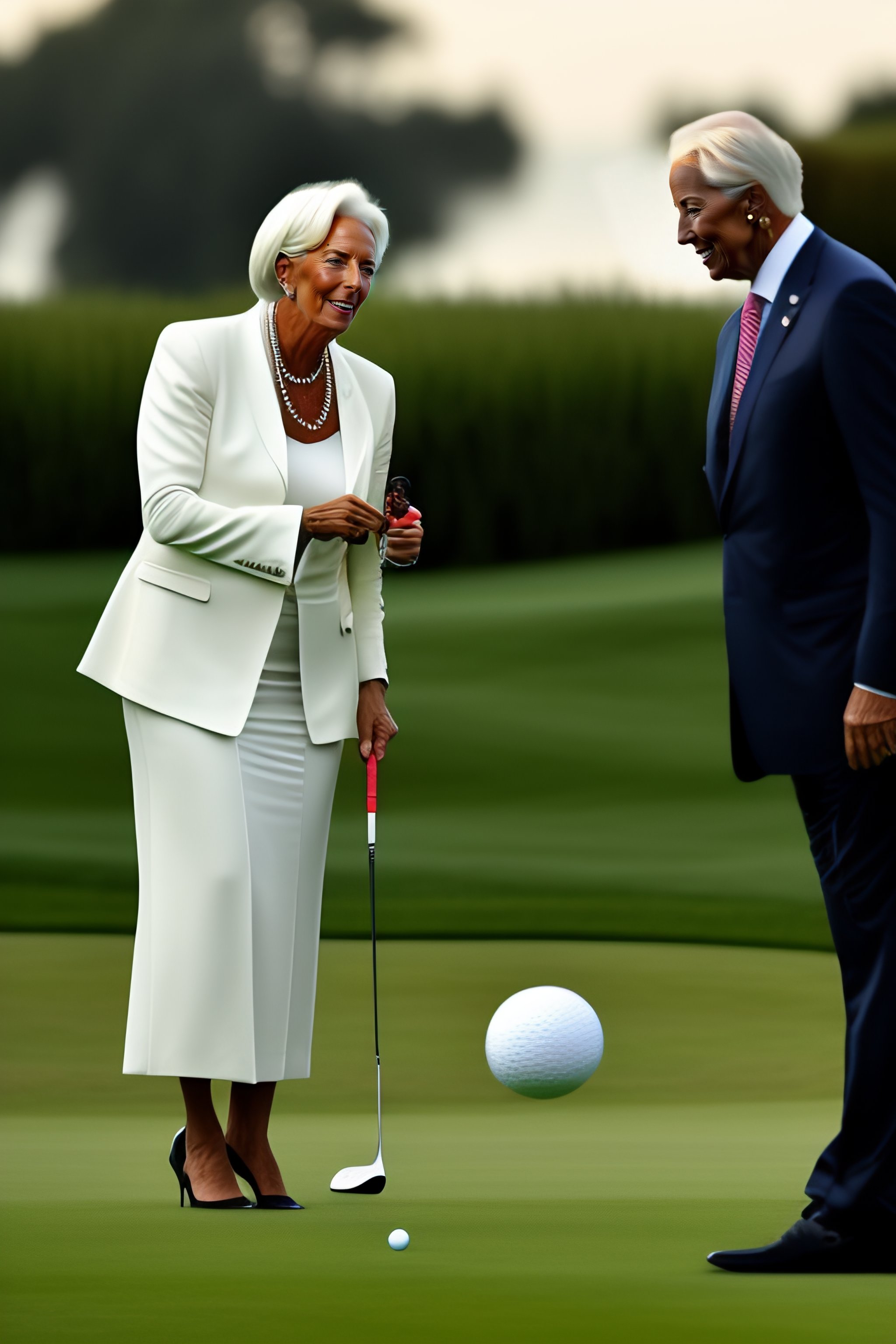 Portrait of christine lagarde having a golf party