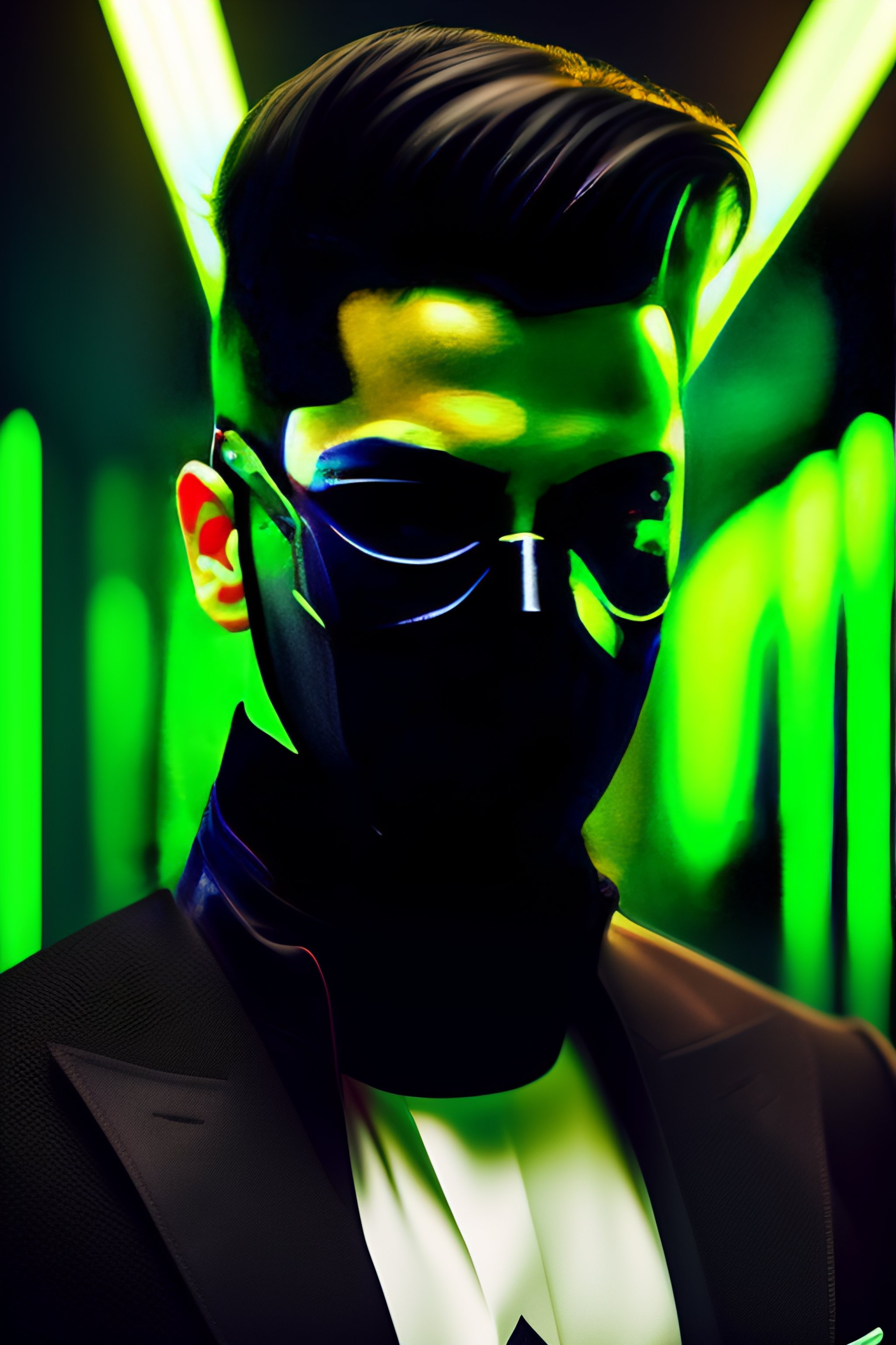 An young man angel wearing dead pool like mask, matrix movie style, synth wave, neo black glasses from movie matrix, hacker codes green from the movie matrix effect, vapor style, valorant style, high details