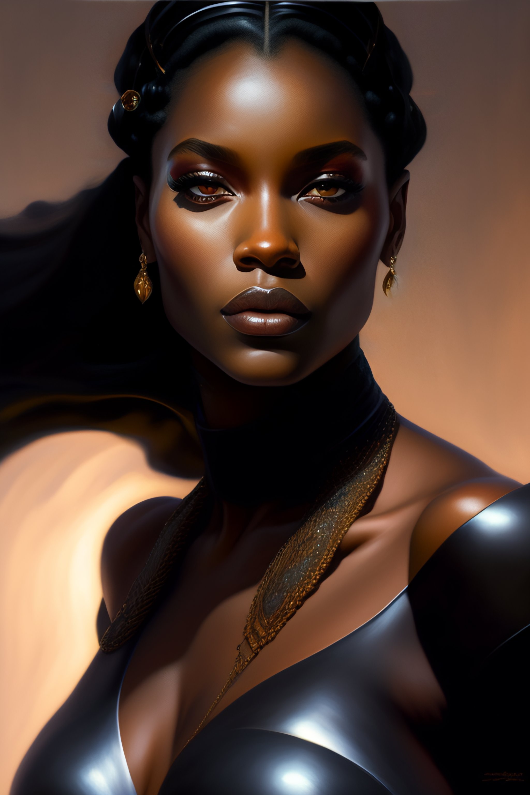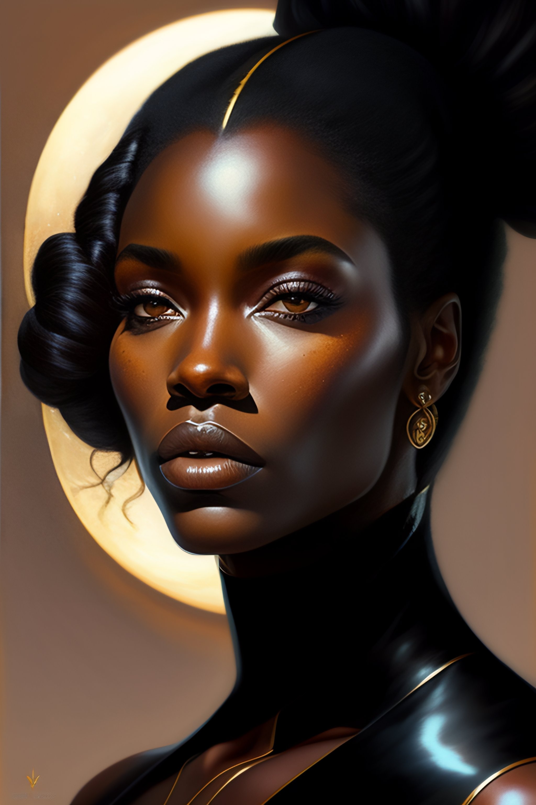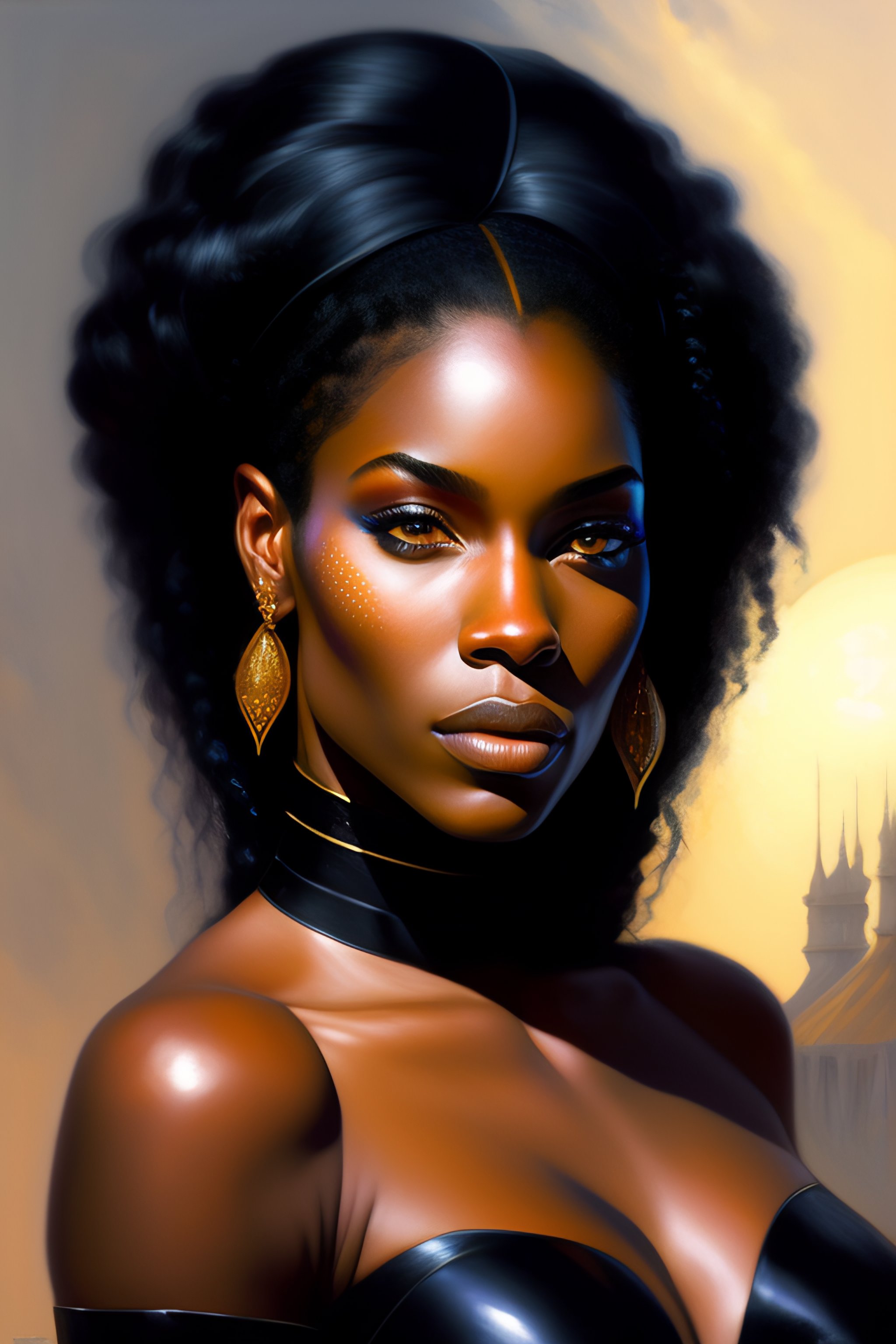 Photorealistic painting of a black female human dragon hybrid, art by donato giancola and greg rutkowski, vintage retro scifi, realistic face, digital art, trending on artstation, symmetry