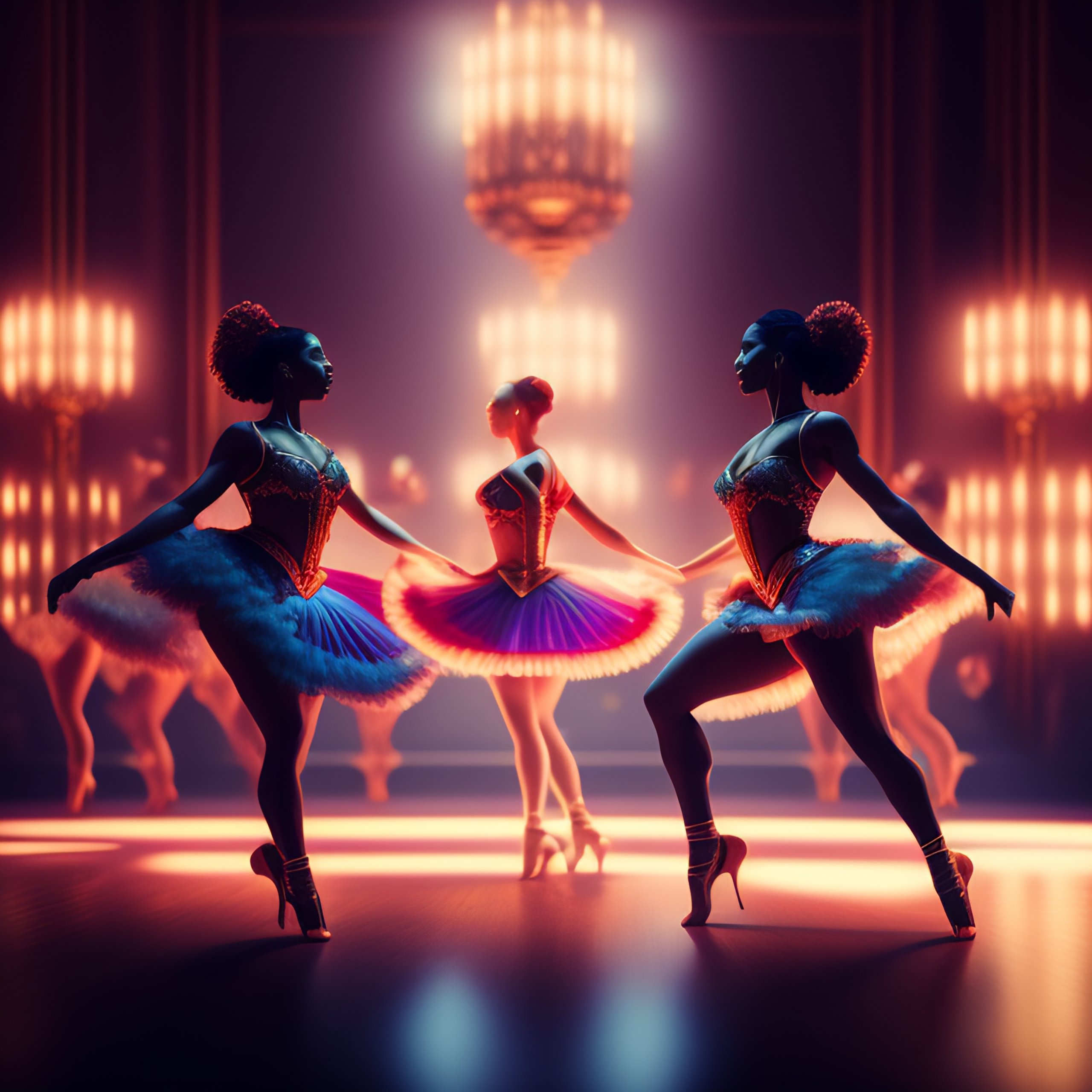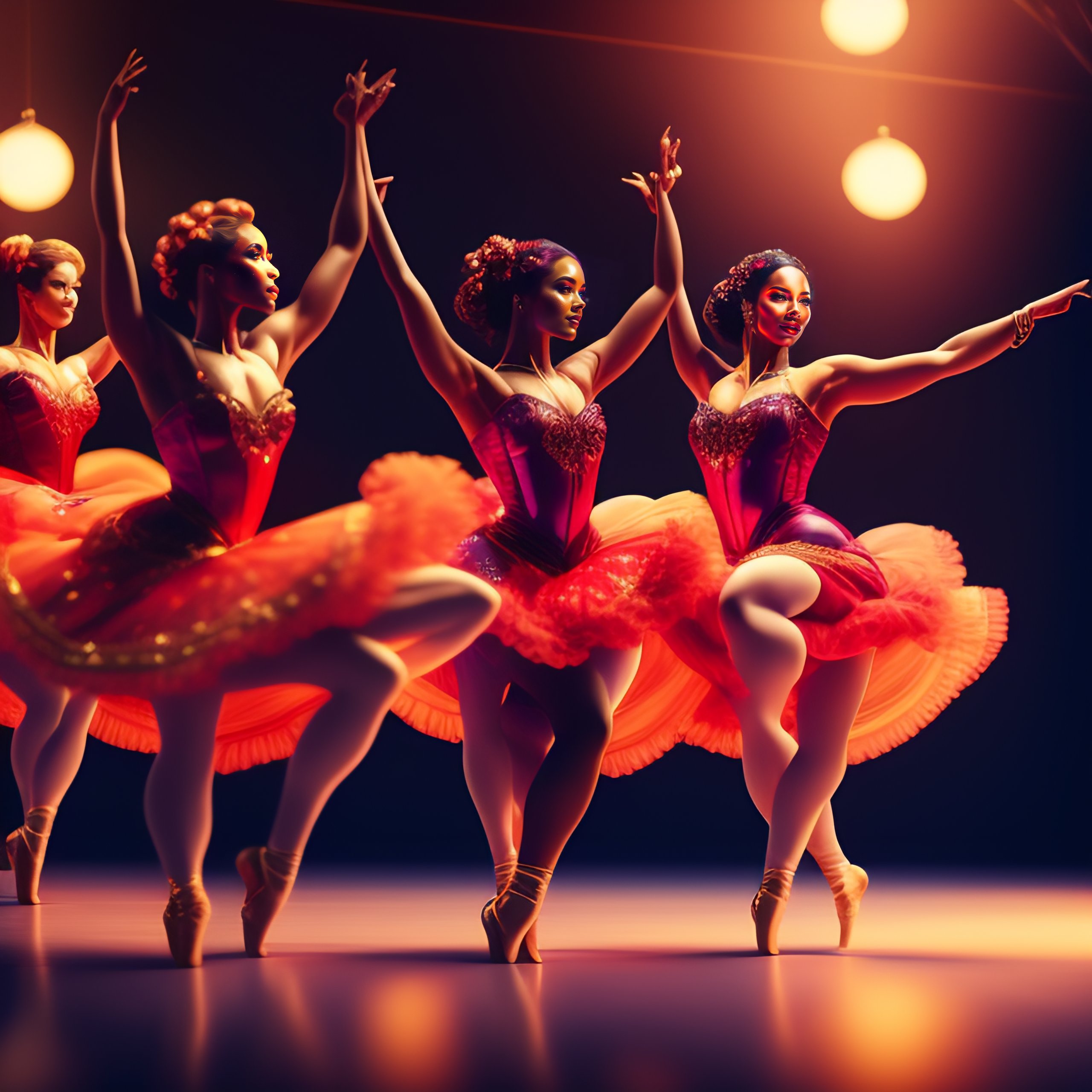 A music album cover portraying a group of dancers in the theatre all facing forward dancing the can-can dance with their feet up, unreal engine, artstation, detailed, digital painting, cinematic, unreal 5, hyperrealistic, octane render