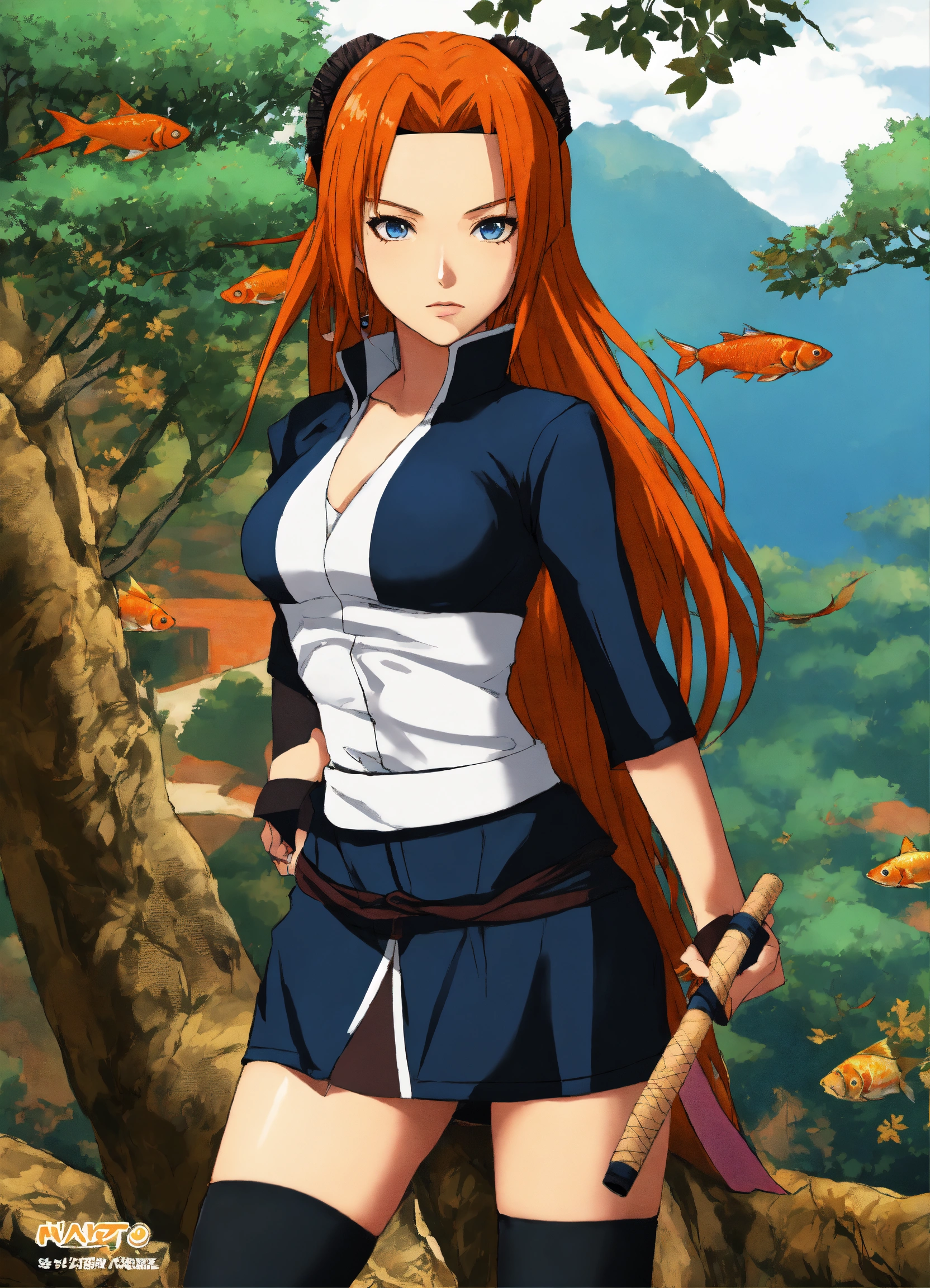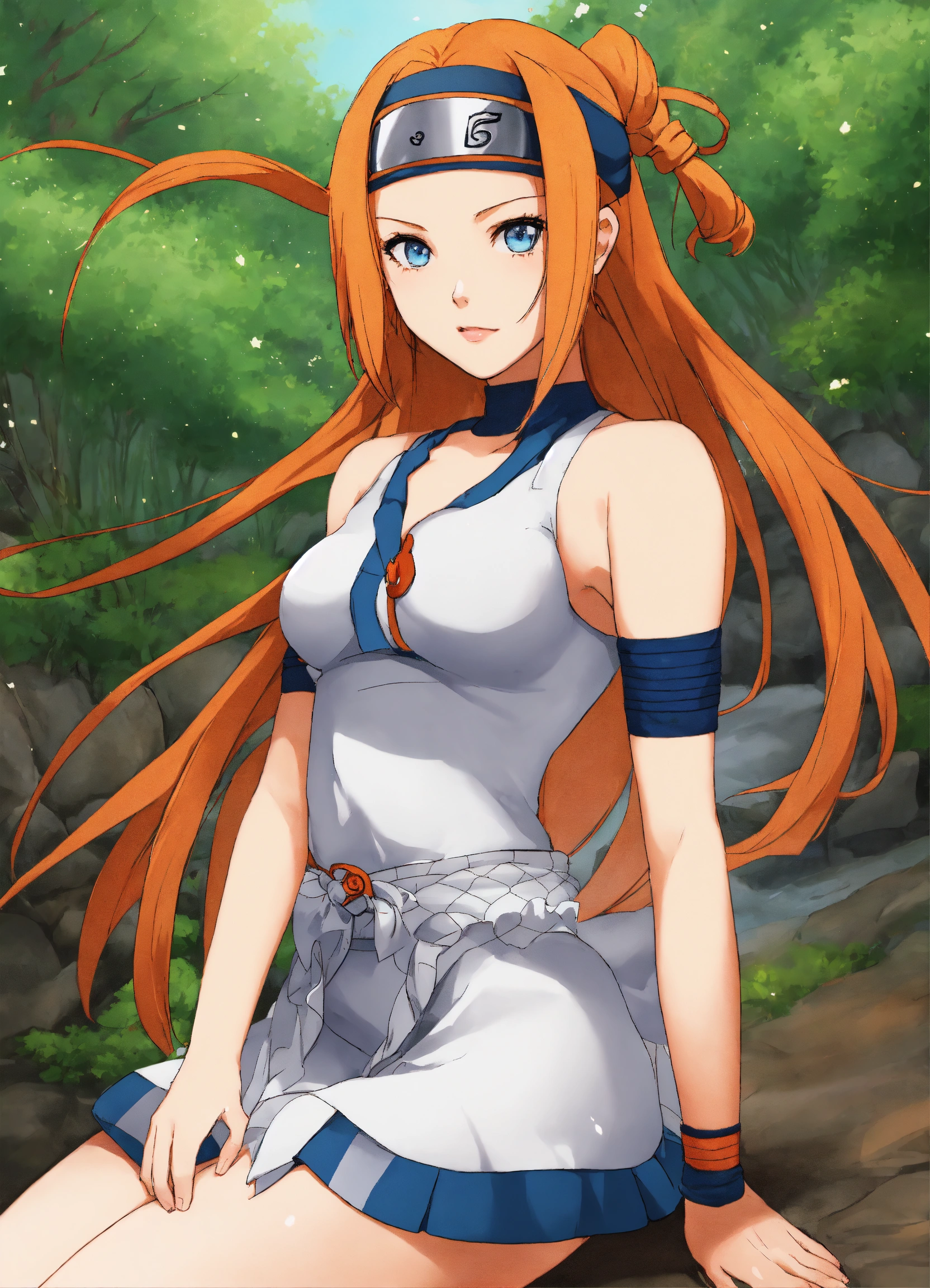 Naruto-style art, masashi kishimoto art, anime, naruto manga, naruto anime, original character, ginger hair, blue eyes, pretty woman, kunoichi, shinobi, konoha, ginger long hair, ginger hair, blue eyes, beautiful girl, beautiful young woman in naruto style art, feminine, fishnets, village hidden in the leaves headband, short dress, fishnets, kunoichi attire, feminine kunoichi attire, naruto headband, fishnets tights on legs, flattering kunoichi fishnets with white short dress, long hair down and flowing, full body, full fishnets on her legs, full fishnet tights, wearing full fishnet tights on her legs, full fishnet tights on legs