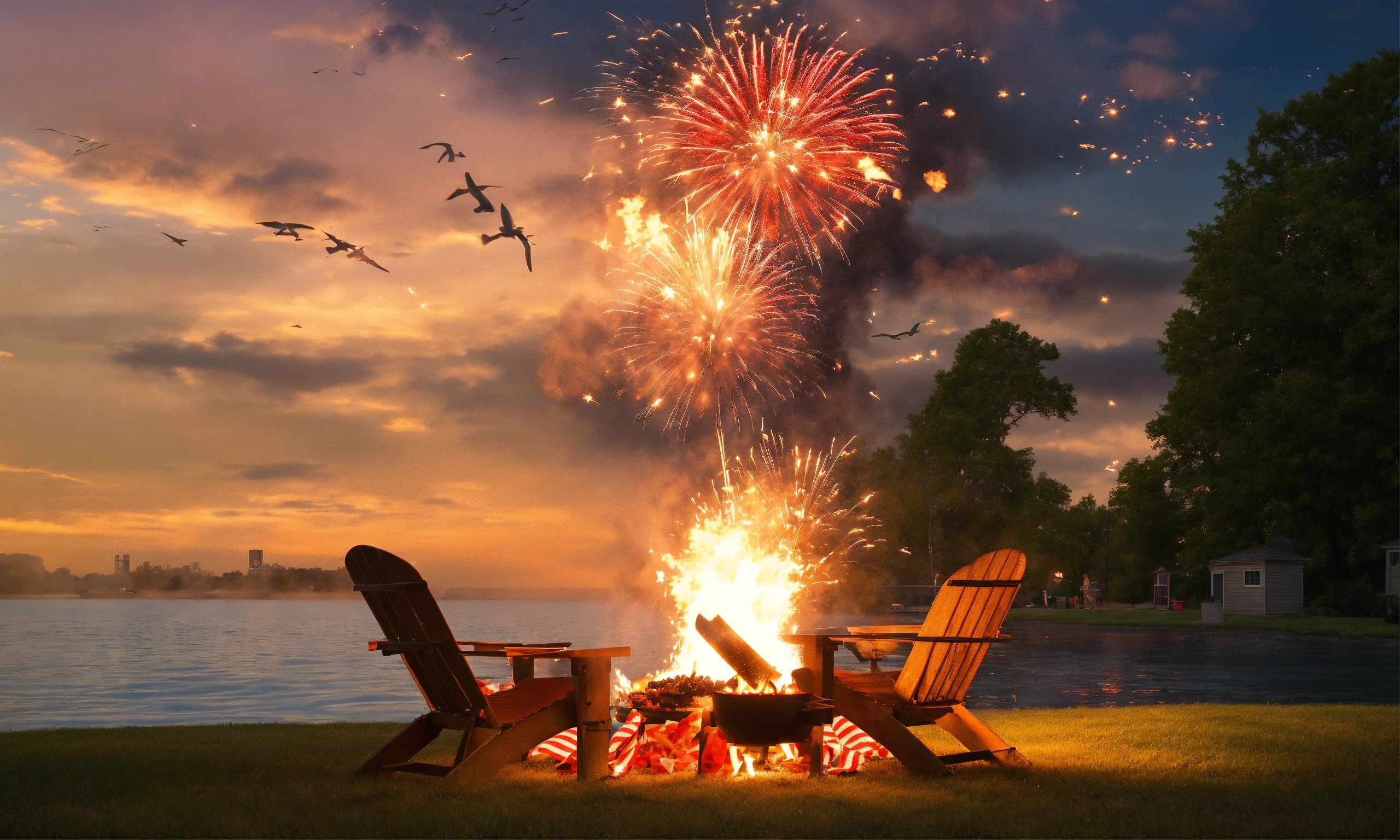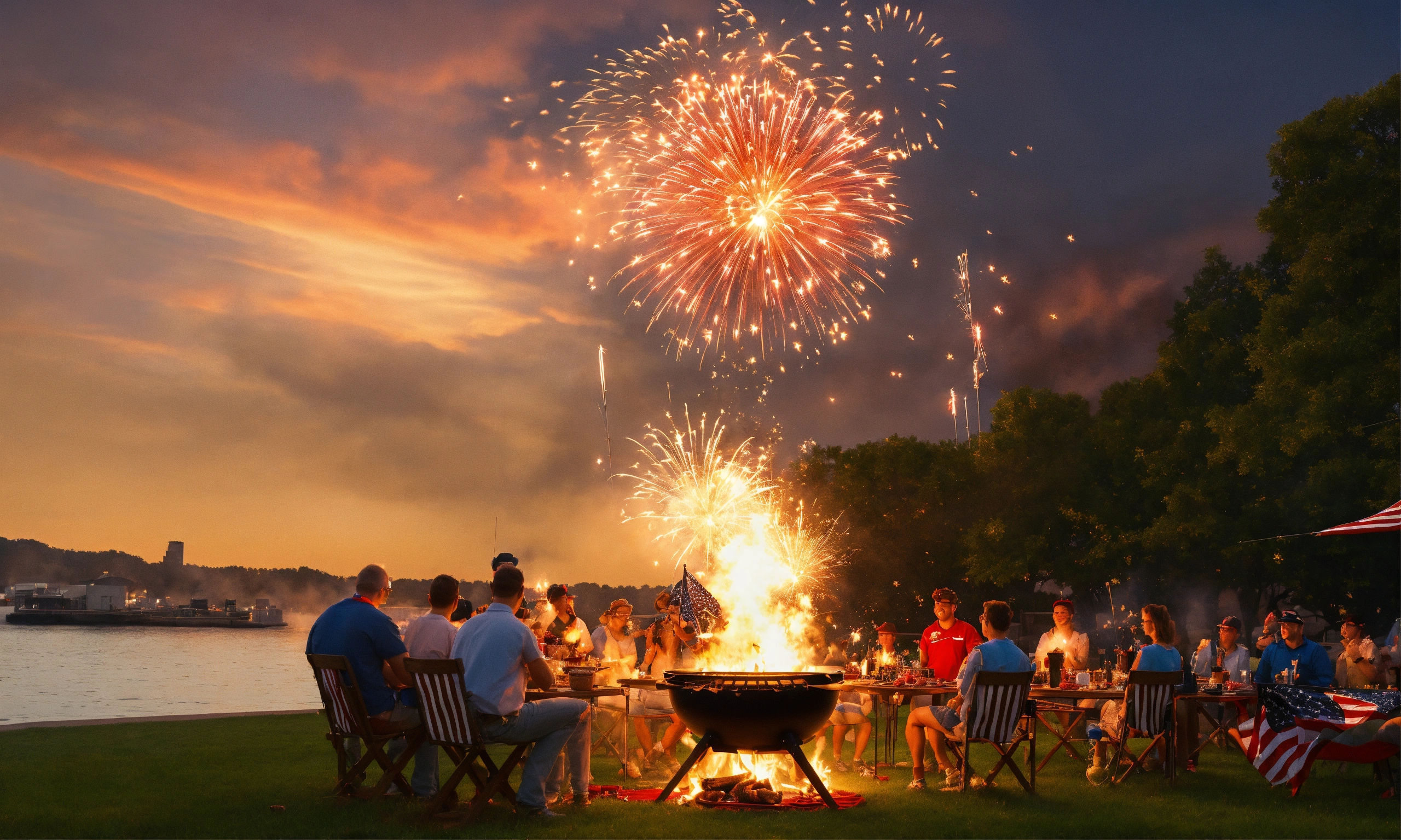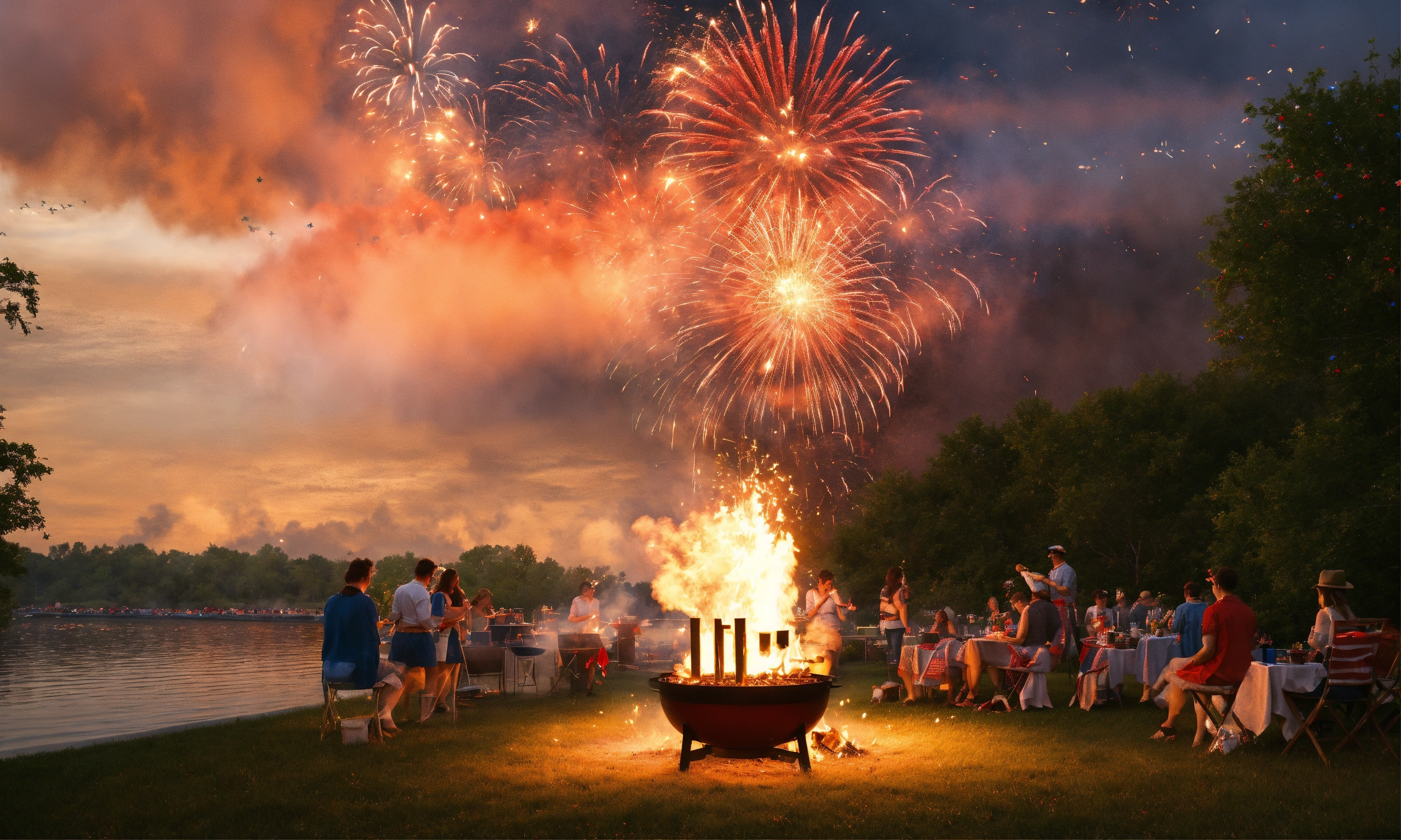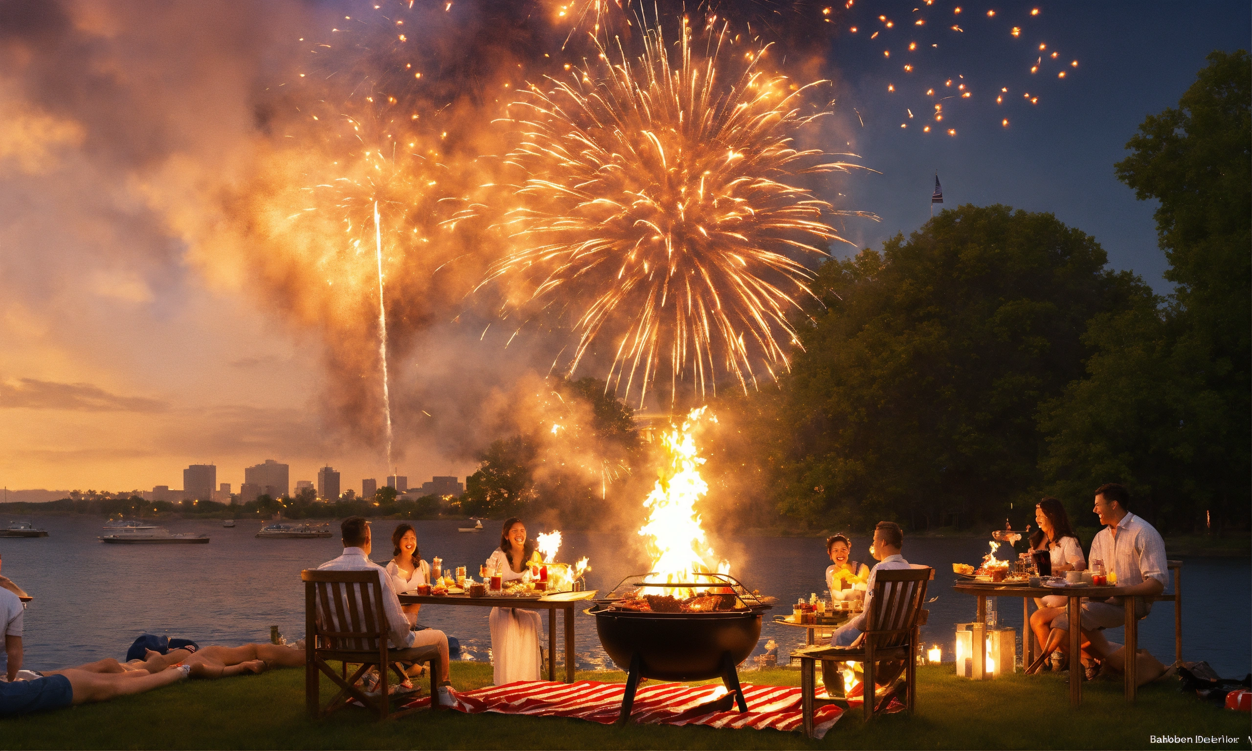 Create a realistic image that describes celebrating independence day in the usa, the image must include a barbeque