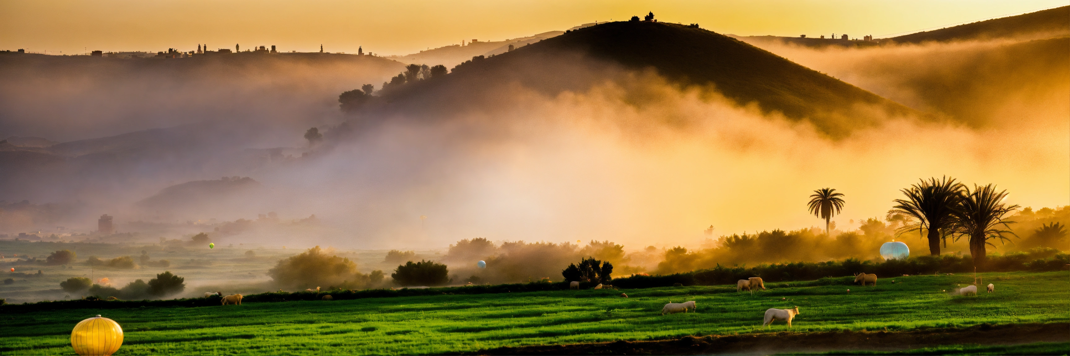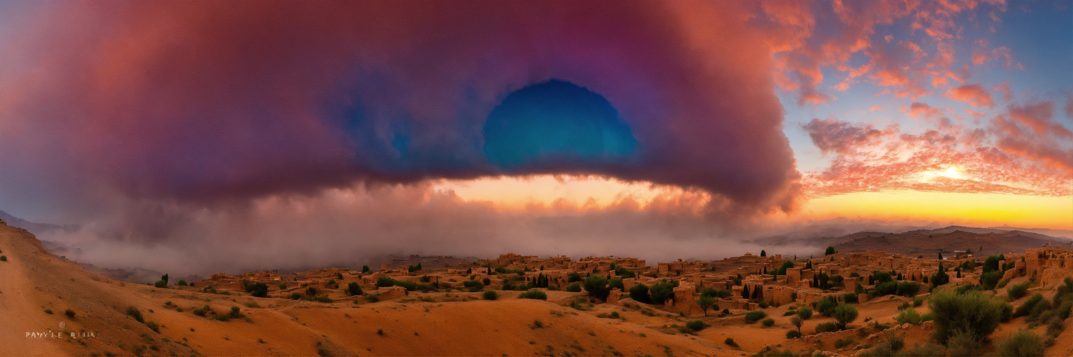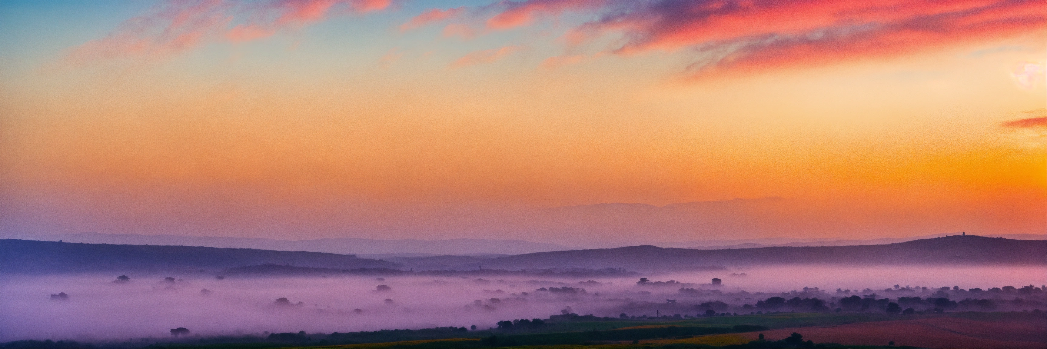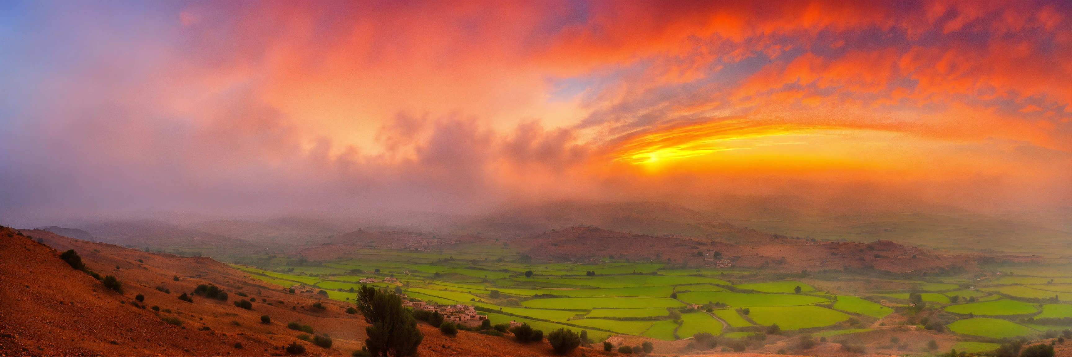 de la brume et de belles couleurs avec au loin un paysage pays algérie imaginaire